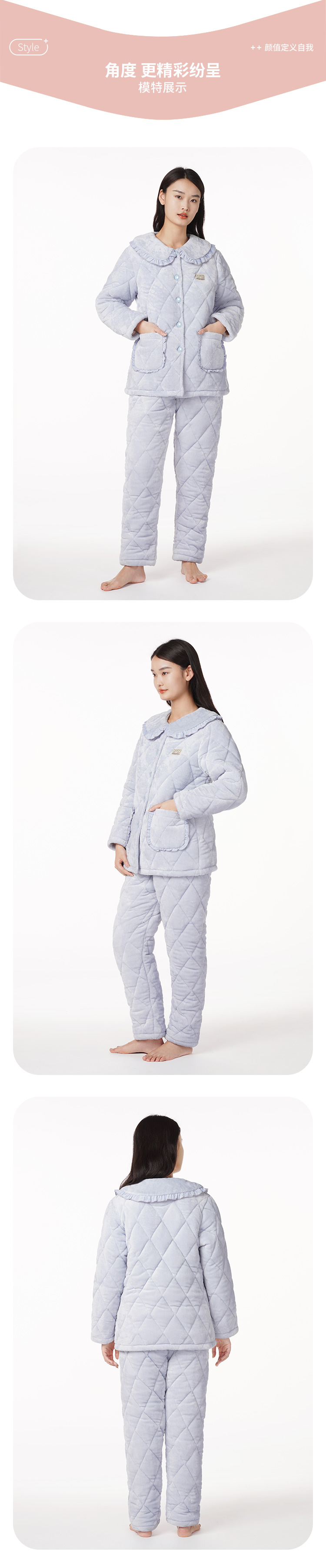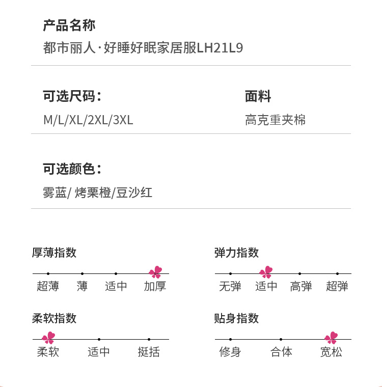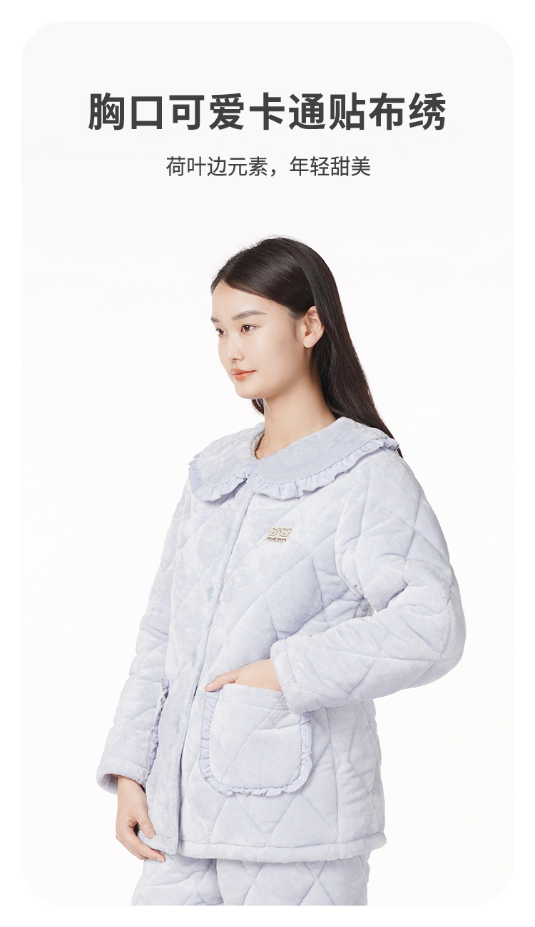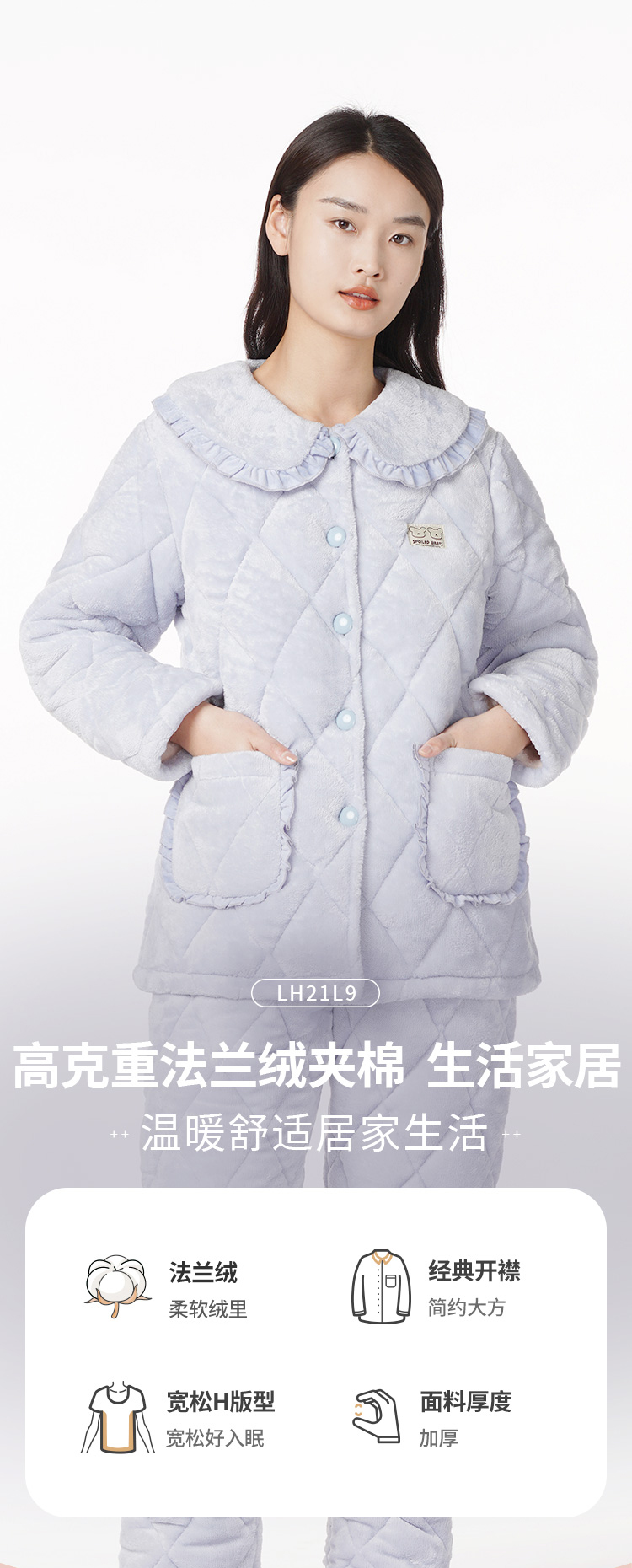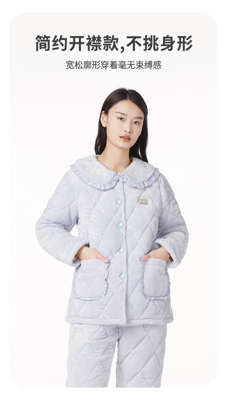 都市丽人睡衣三层夹棉法兰绒夹棉家居服长袖类LH21L9