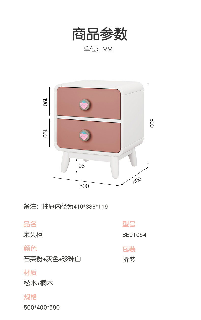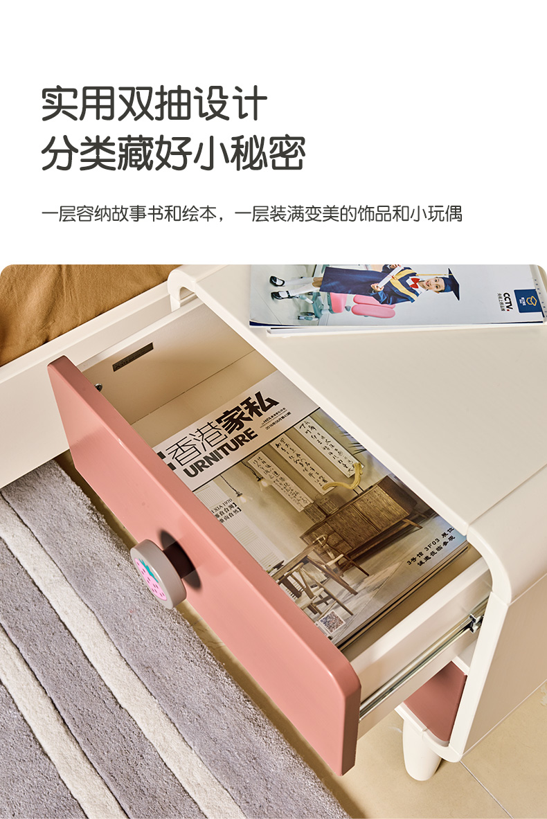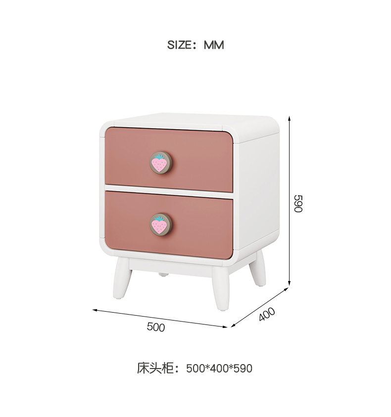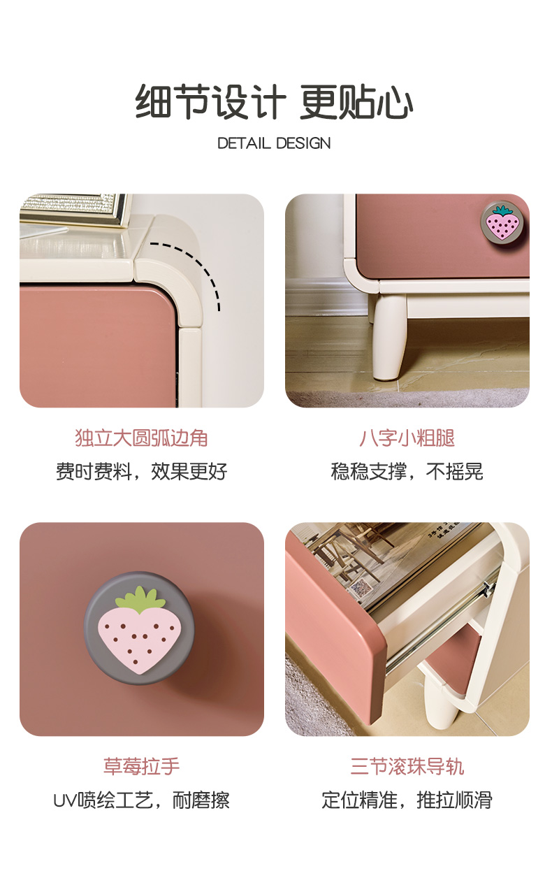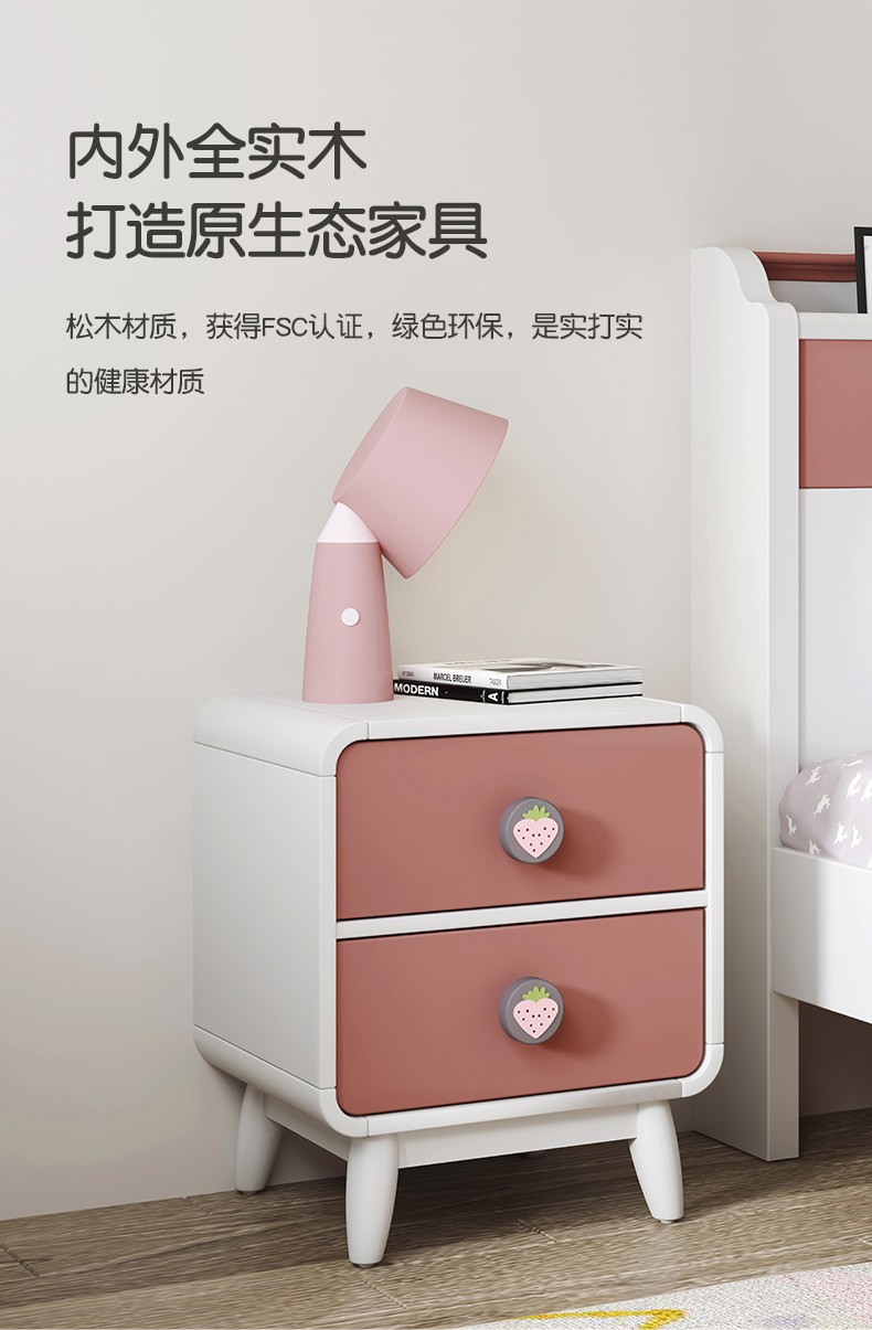 喜梦宝床头柜全实木收纳小型床头柜女孩卡通粉色床边储物柜 草莓糖系列