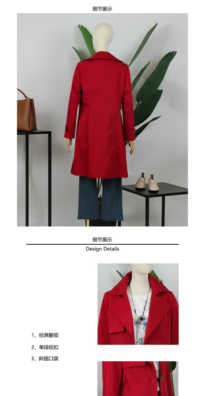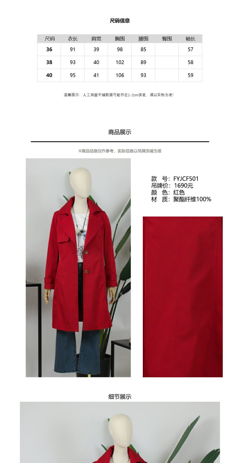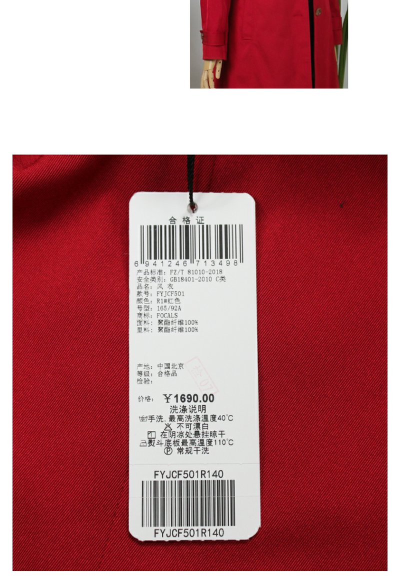 FOCALS福柯斯春秋新款长袖收腰单排扣中长款外套风衣FYJCF501R1