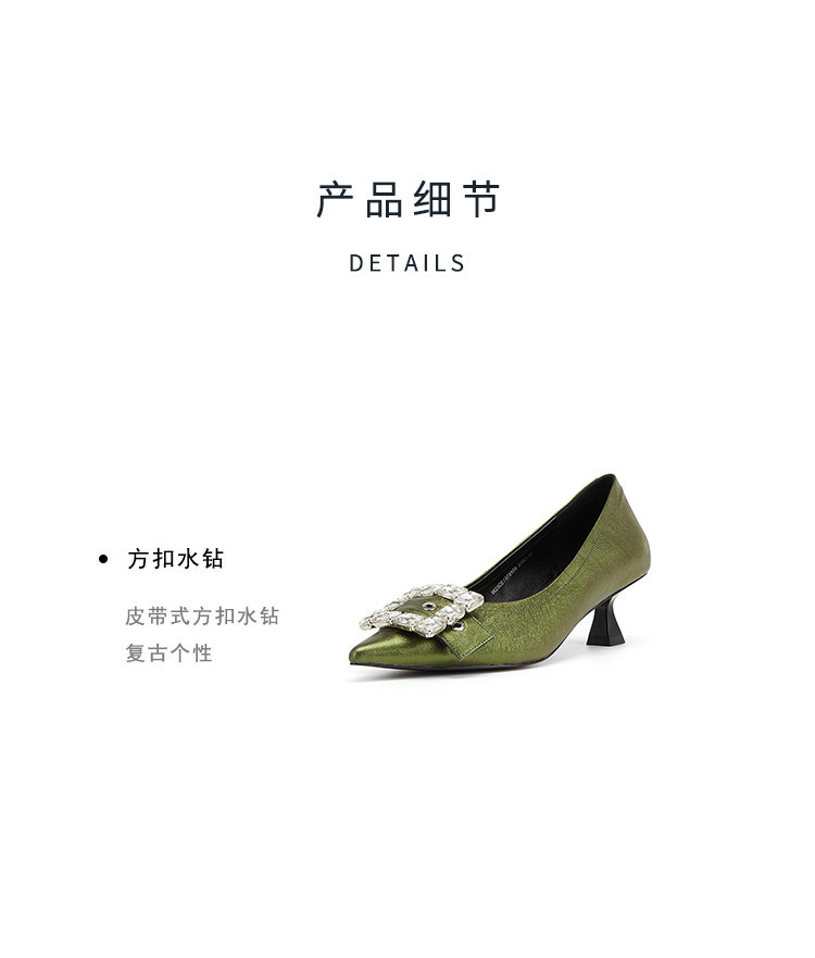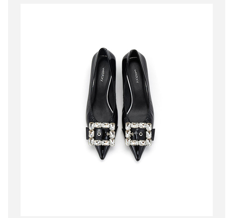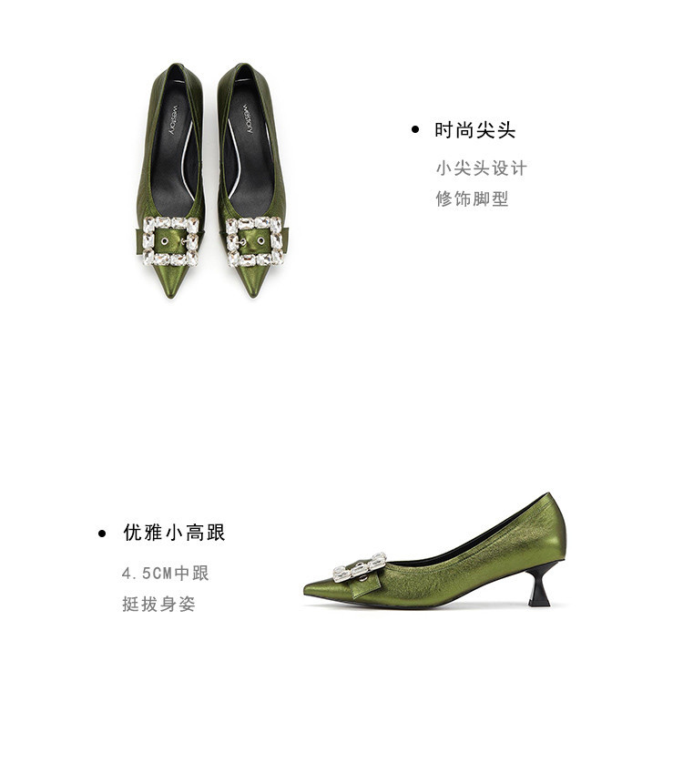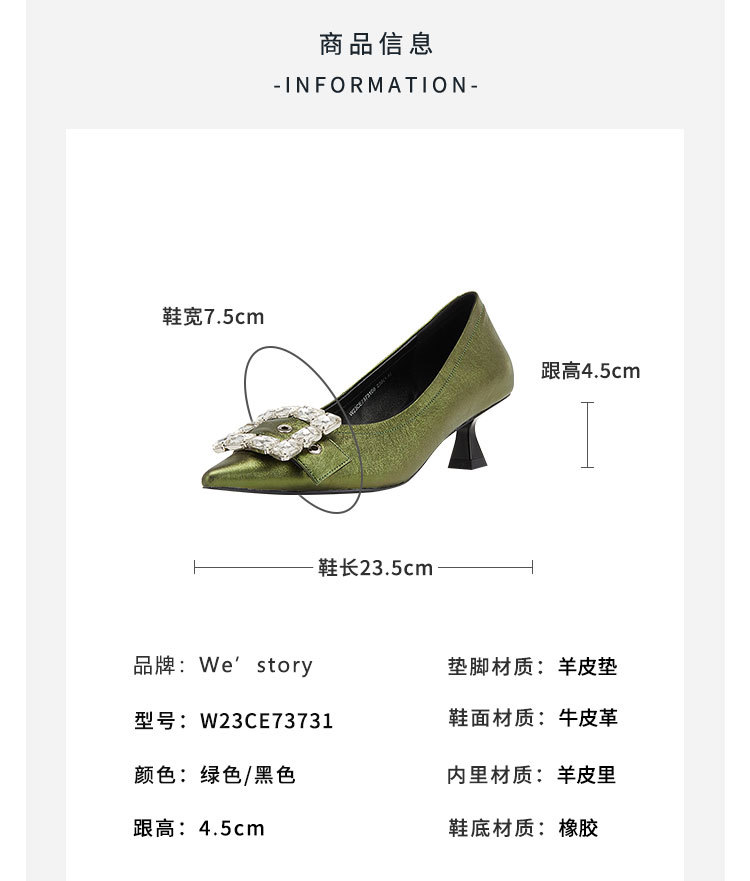 westory低跟单鞋韩系尖头钻扣细高跟鞋百搭浅口单鞋女W23CE7373101