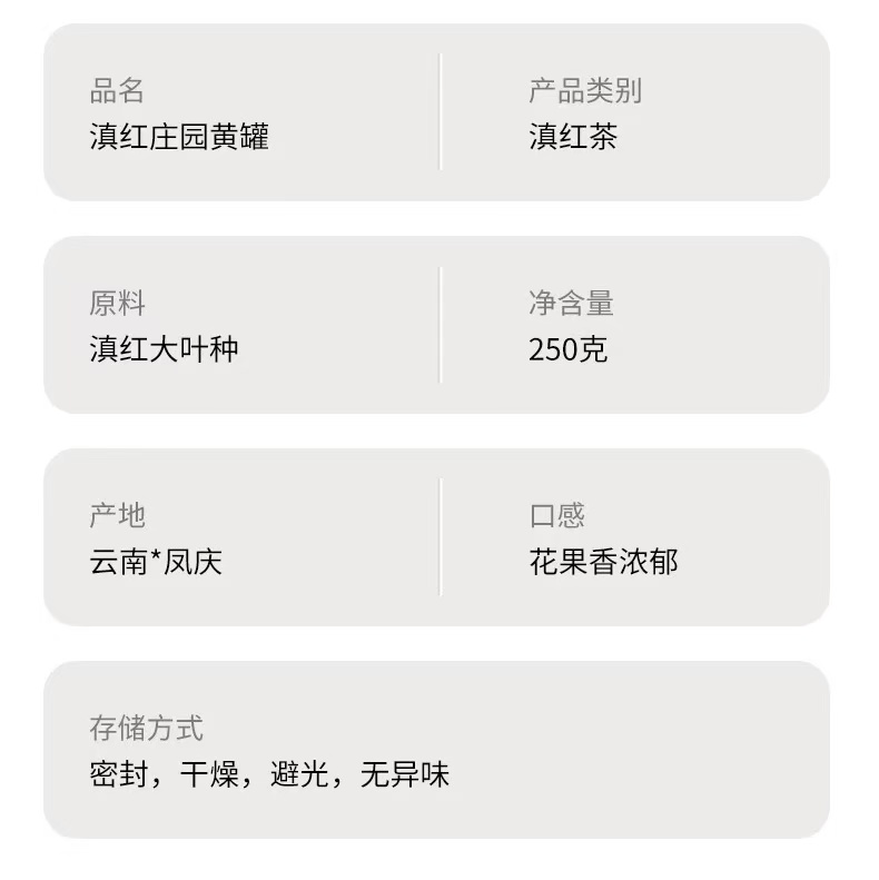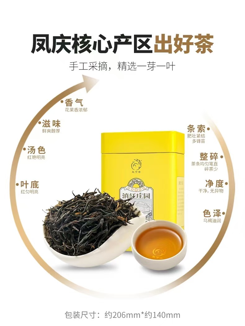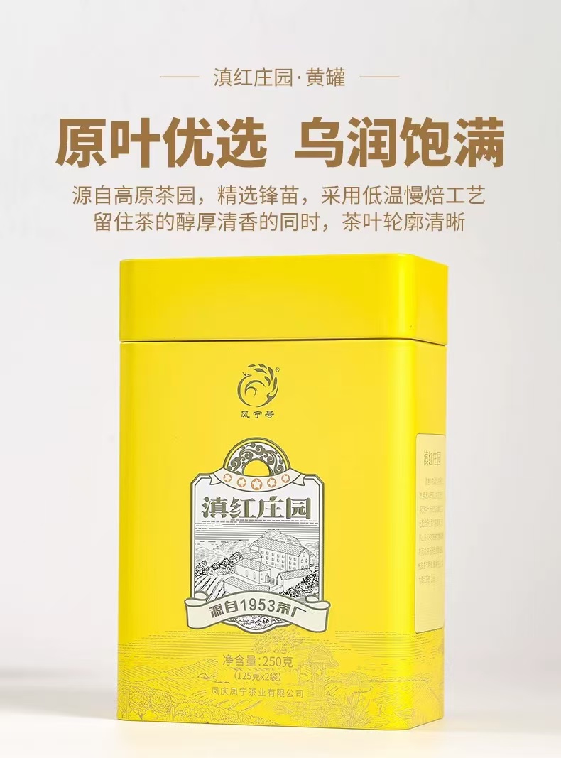 滇红茶 | 凤宁号 2024年 滇红庄园黄罐 一芽一叶原料 250g/罐