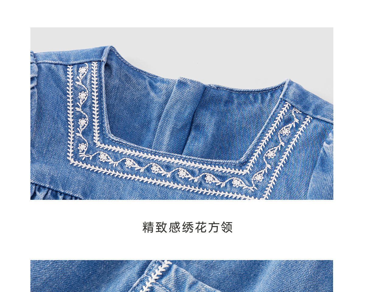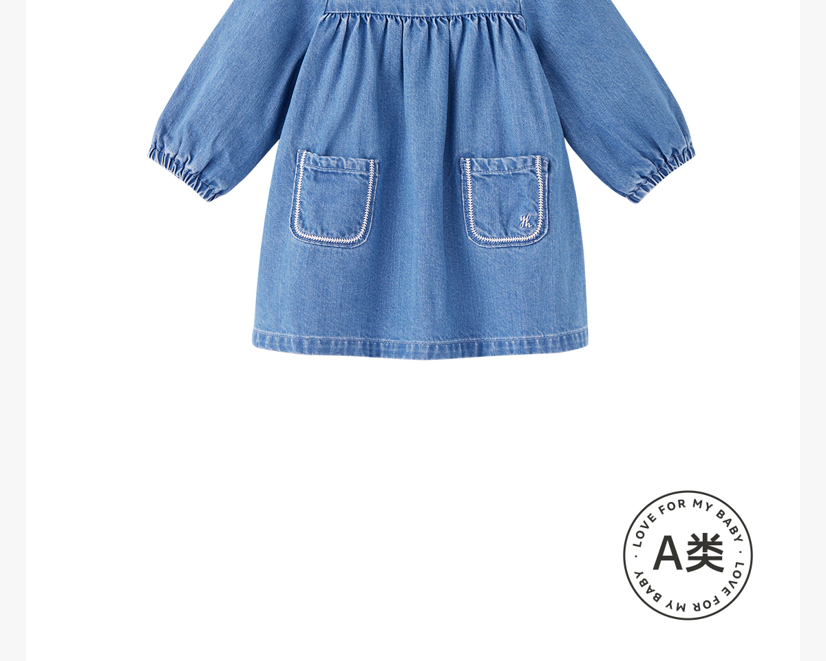 英氏童装女童连衣裙2023秋季新款休闲牛仔裙YRLAJ3P244A