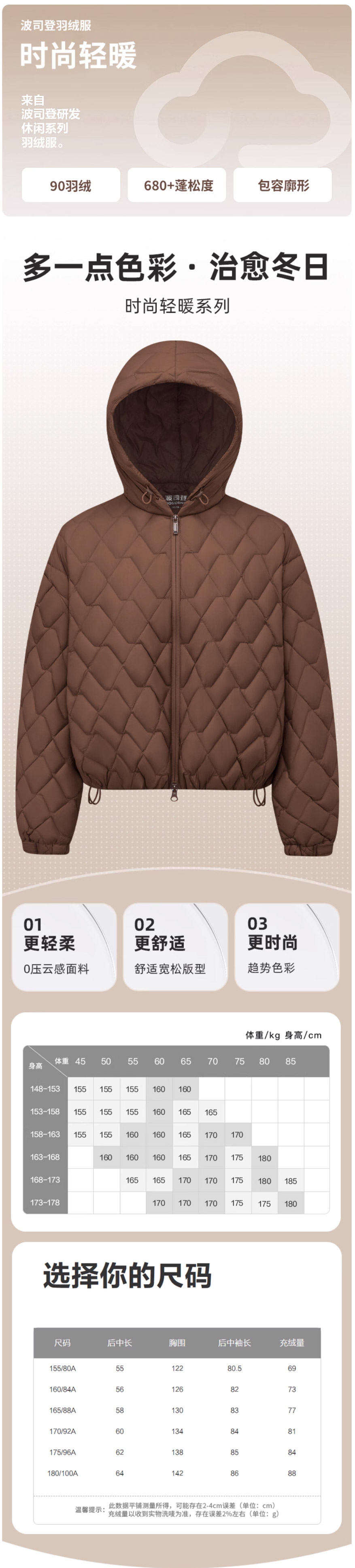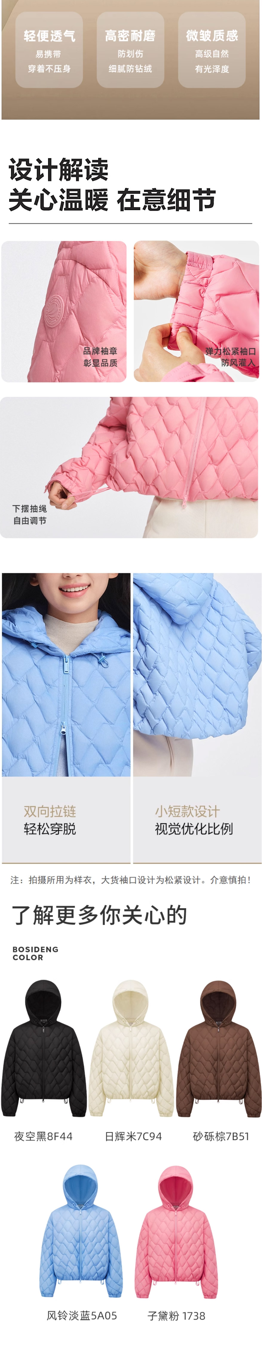波司登2025秋冬季新款外套短款轻薄保暖巴恩风羽绒服女B250135316