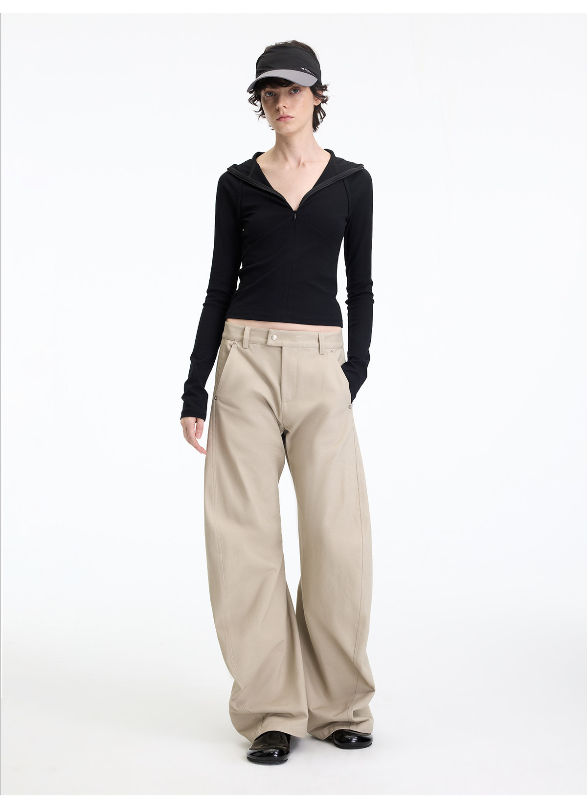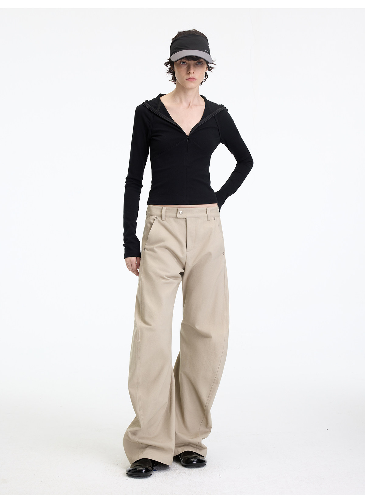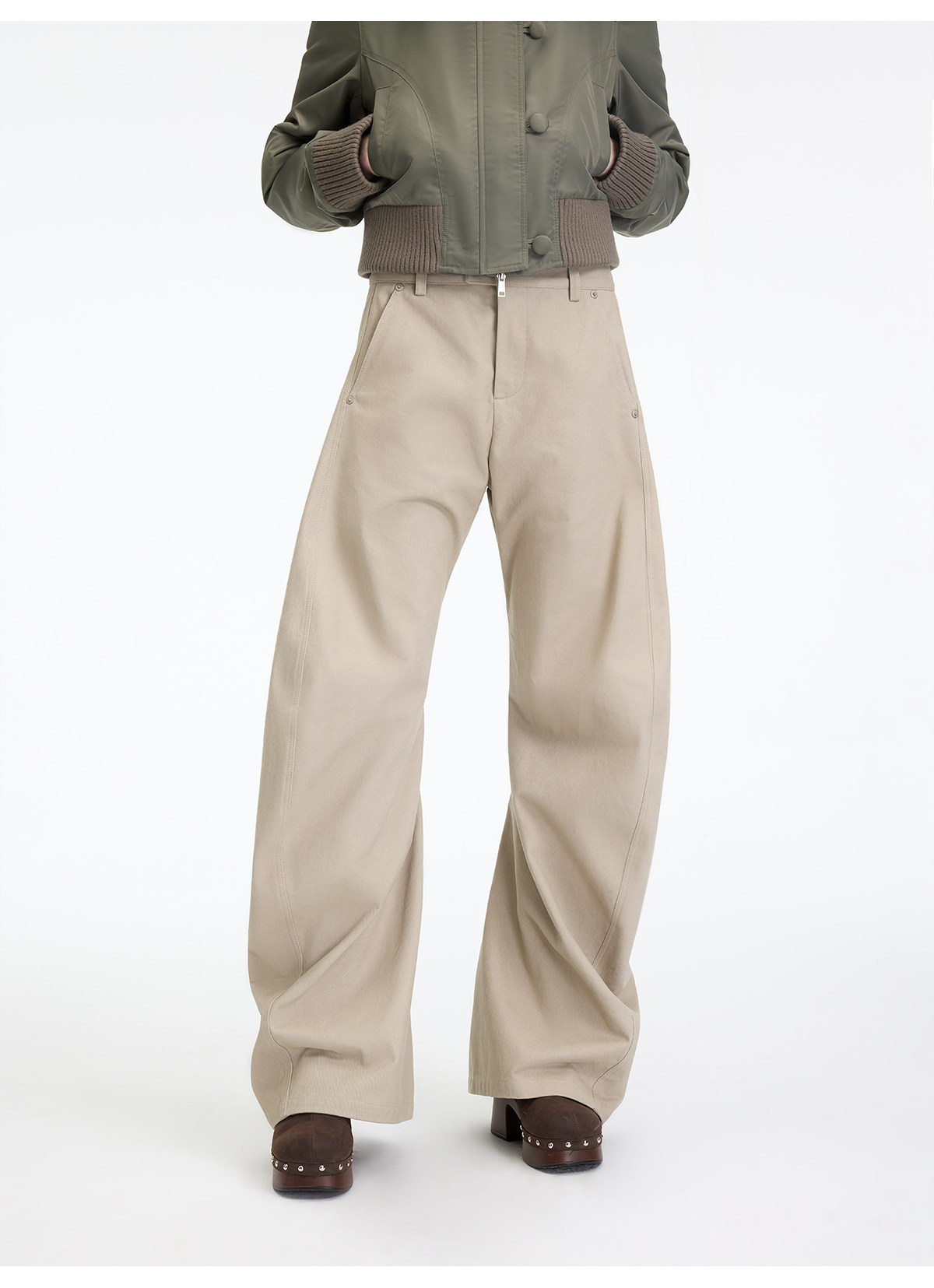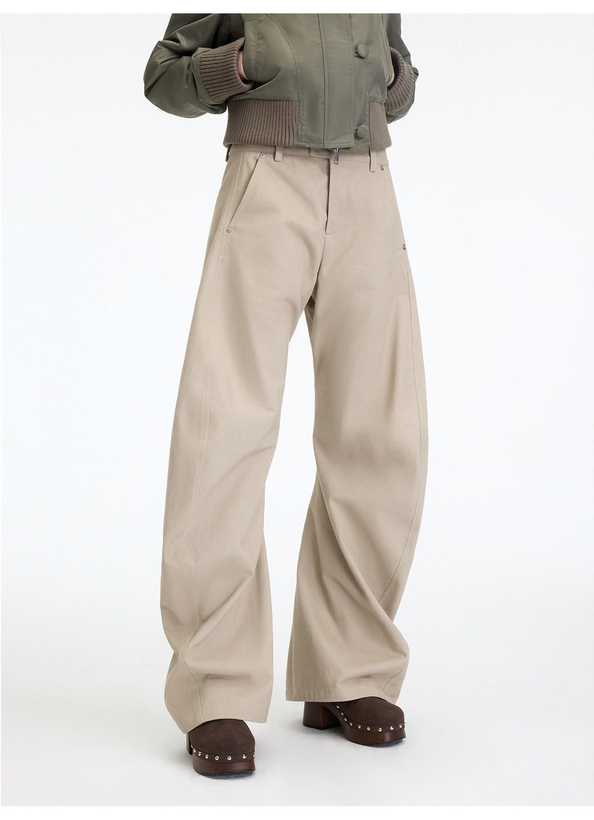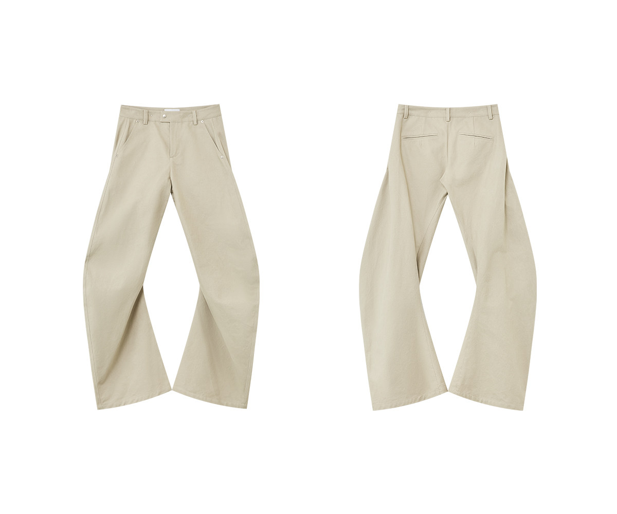 出逃赤岗西/25AWK199/米灰色不规则3D立体扭裁廓形弯刀休闲裤