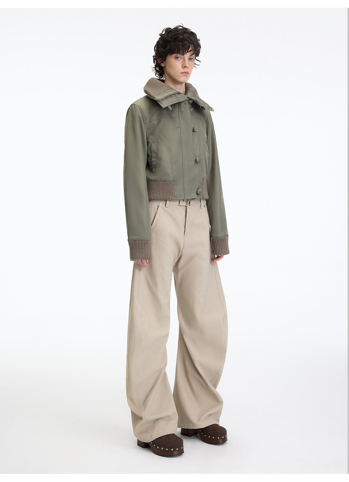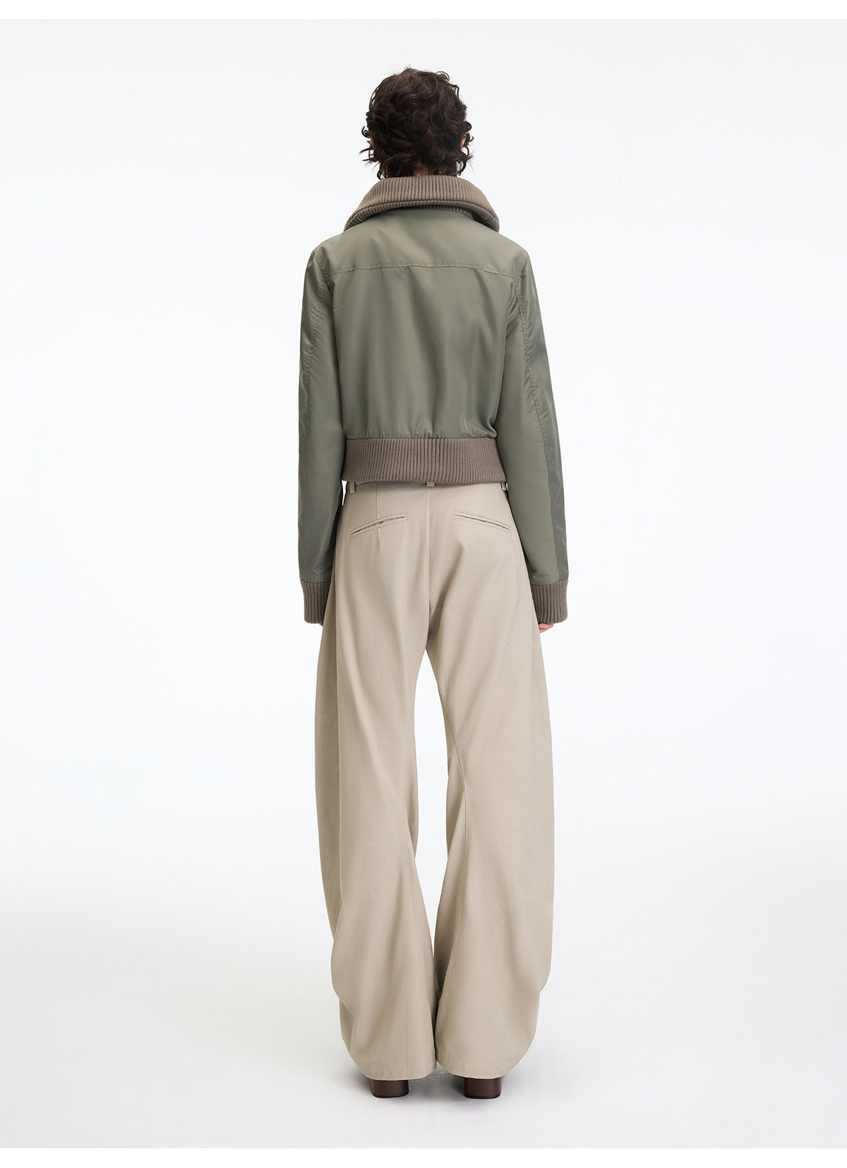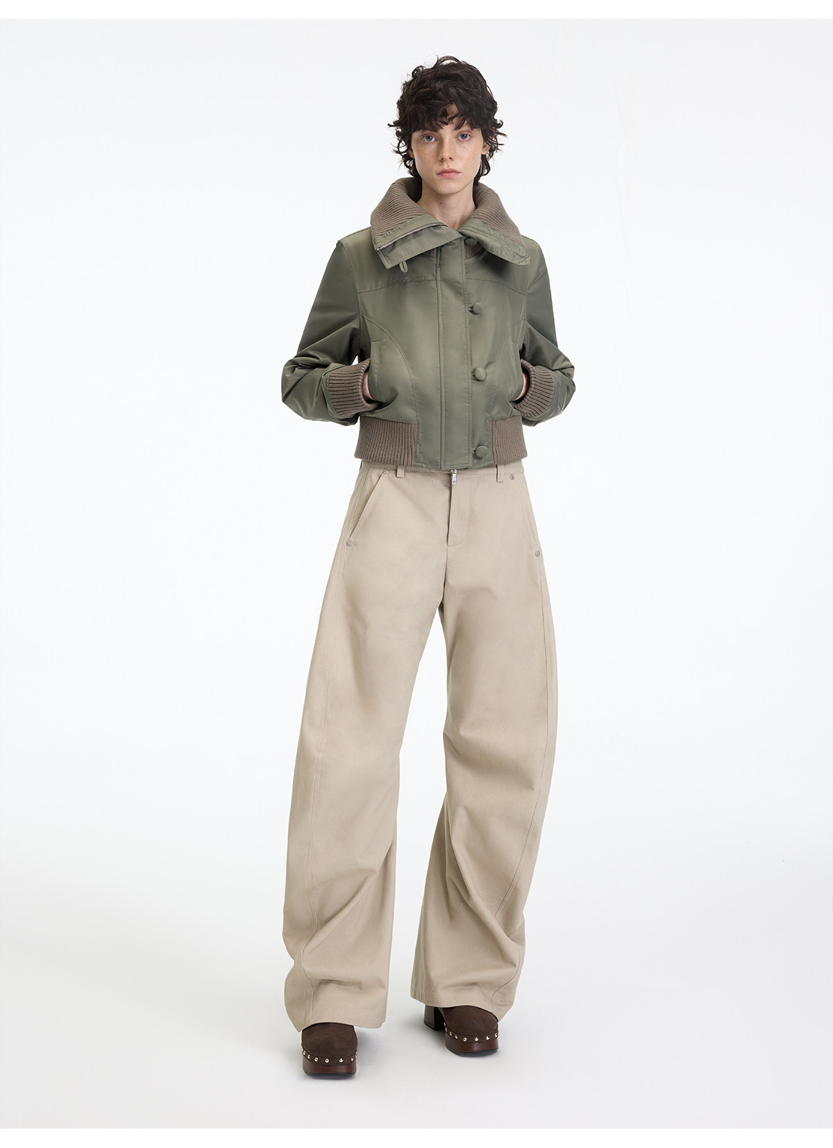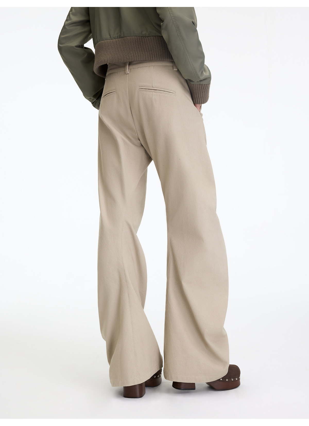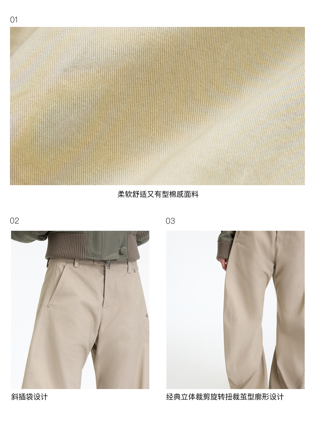 出逃赤岗西/25AWK199/米灰色不规则3D立体扭裁廓形弯刀休闲裤