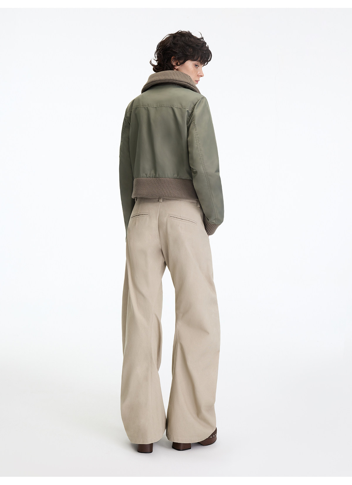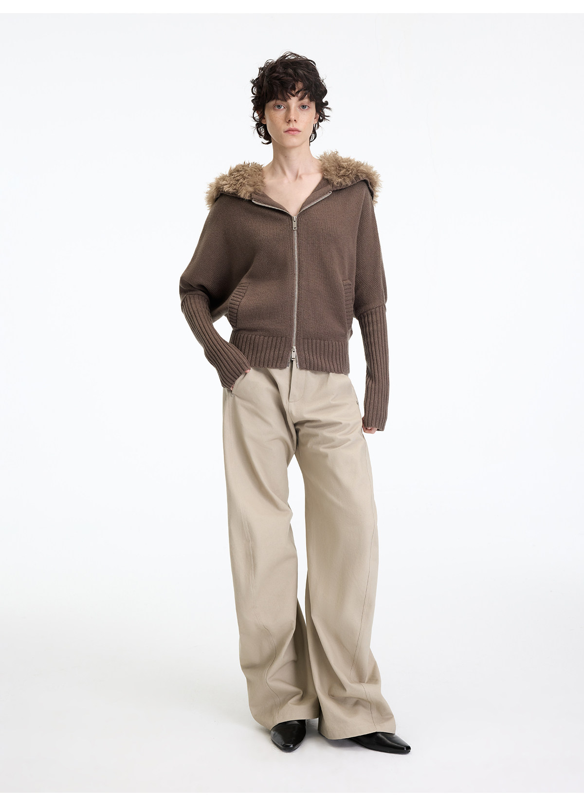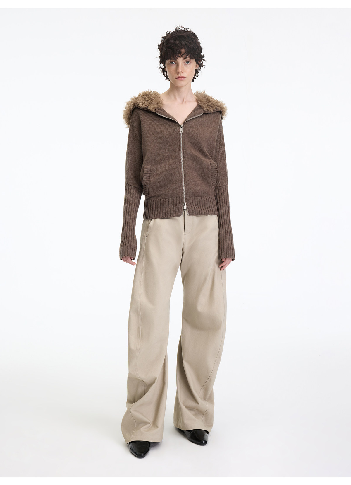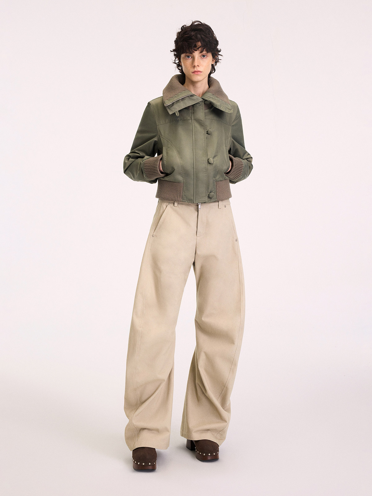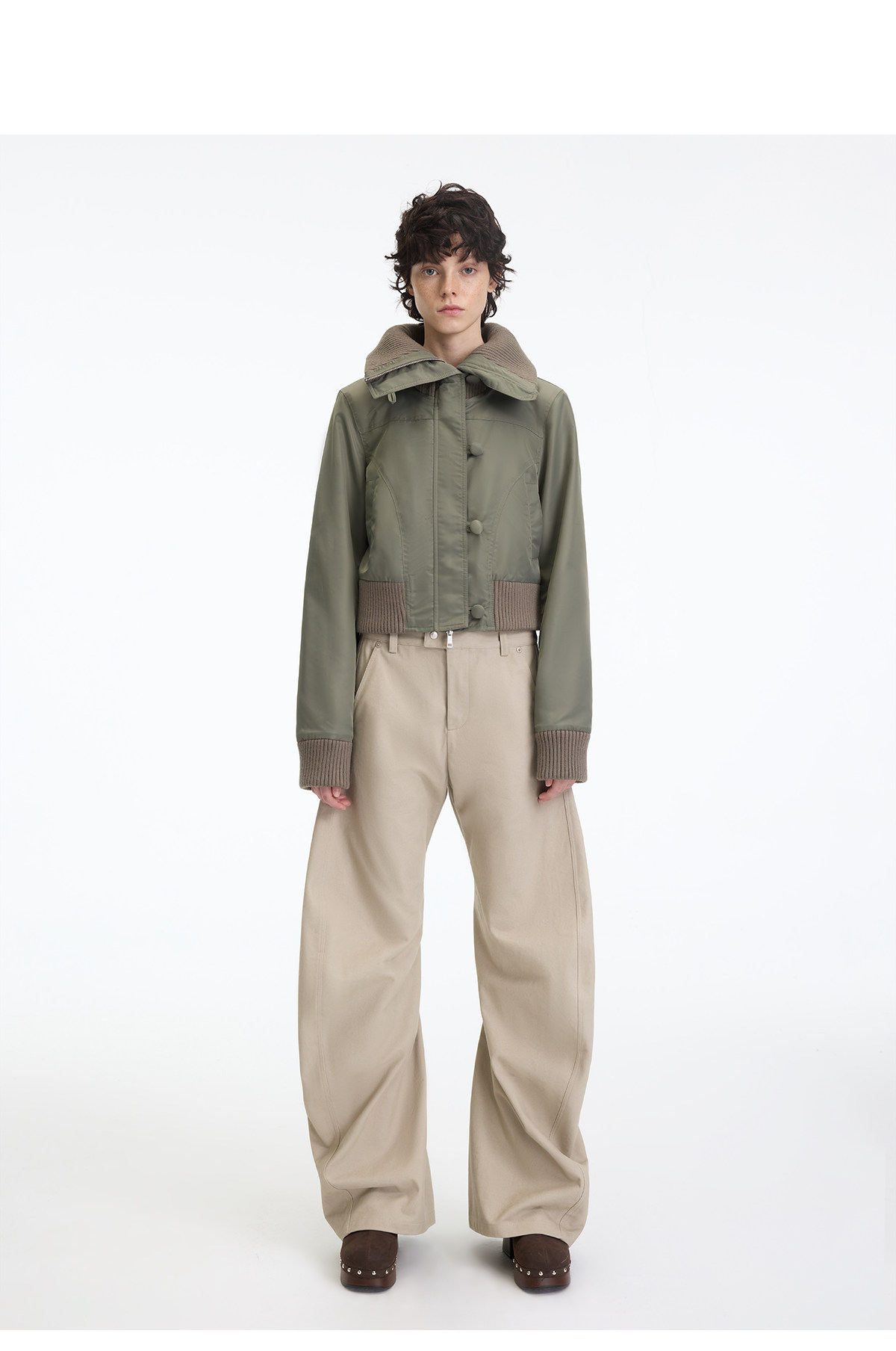 出逃赤岗西/25AWK199/米灰色不规则3D立体扭裁廓形弯刀休闲裤