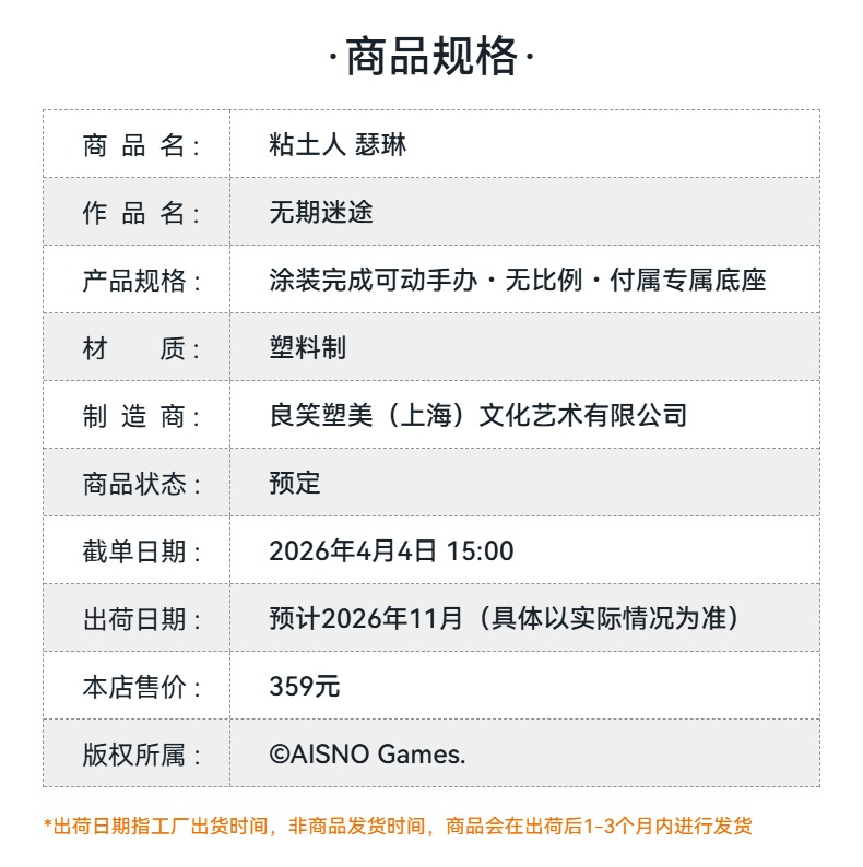【GSC预售定金】粘土人 瑟琳 无期迷途 附特典 手办模玩