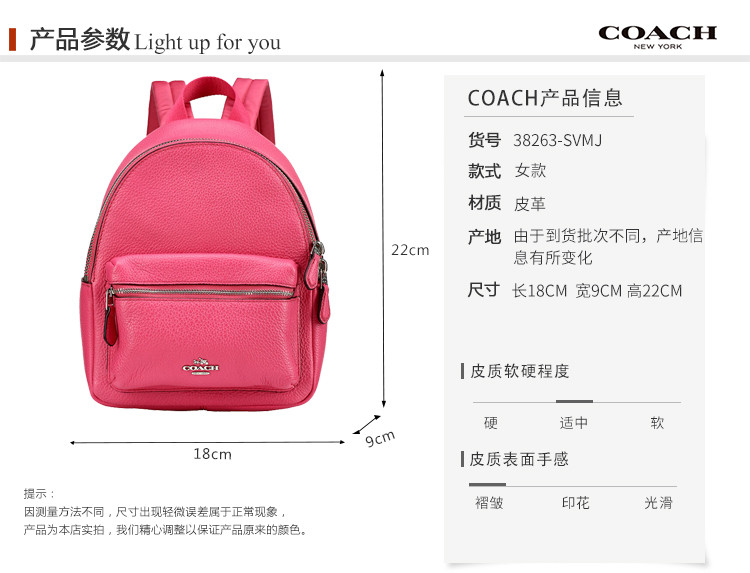 COACH/蔻驰 女士Saffiano皮革双肩背包