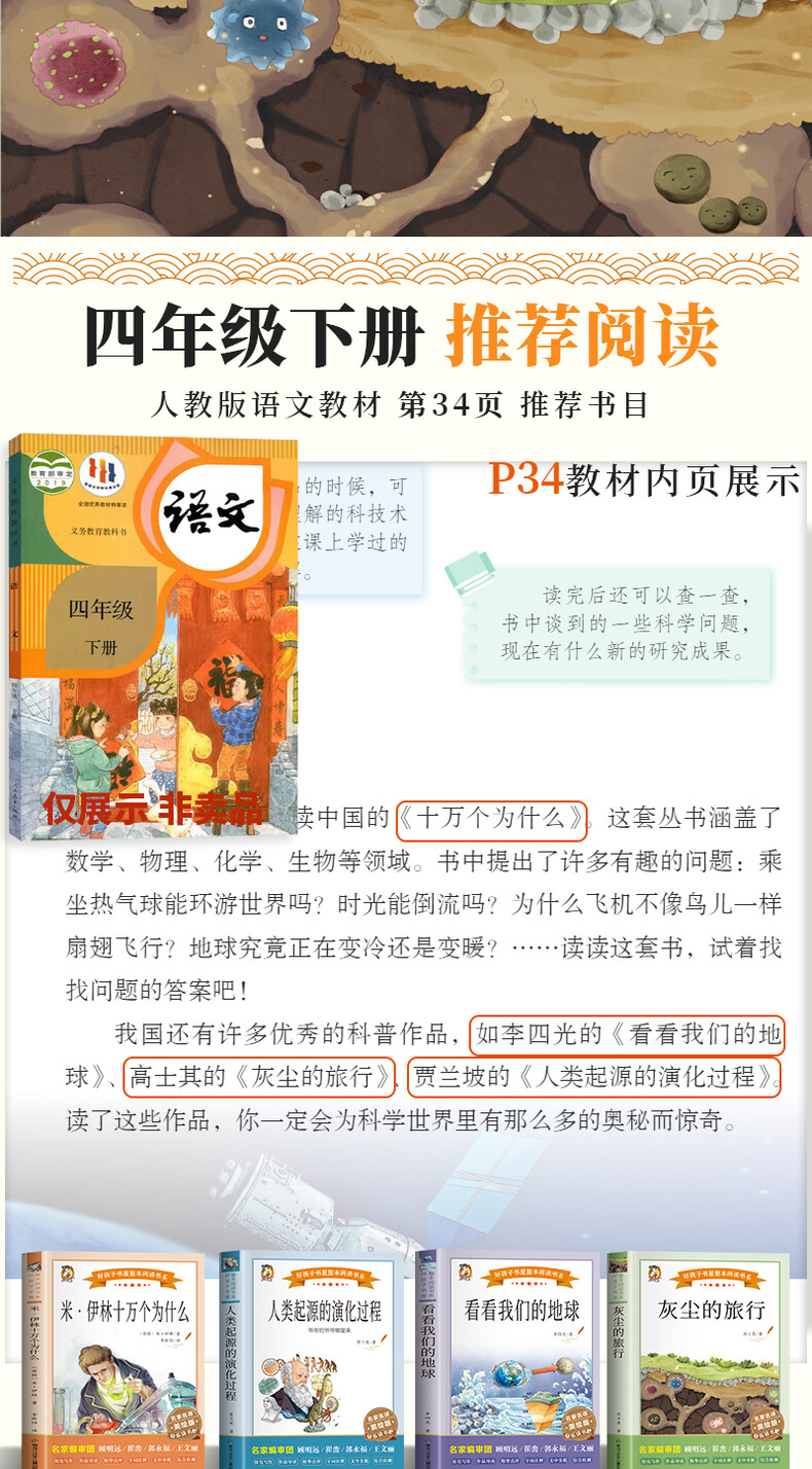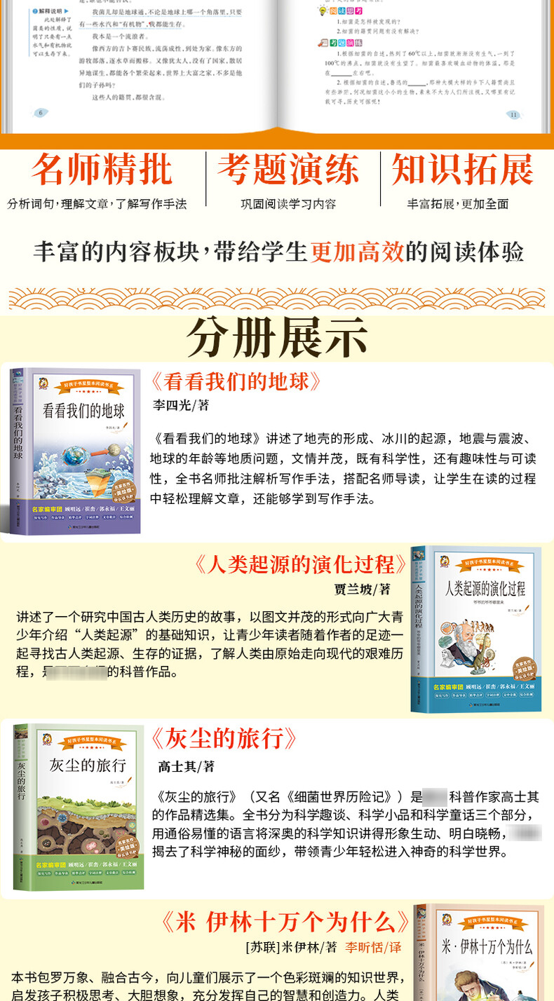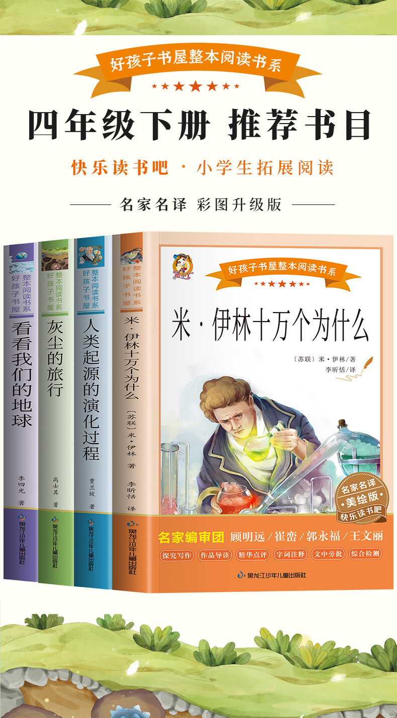 快乐读书吧4年级下册:《看看我们的地球》《灰尘的旅行》《人类起源的演化过程——爷爷的爷爷哪里来》《米·伊林十万个为什么》(全4册)
