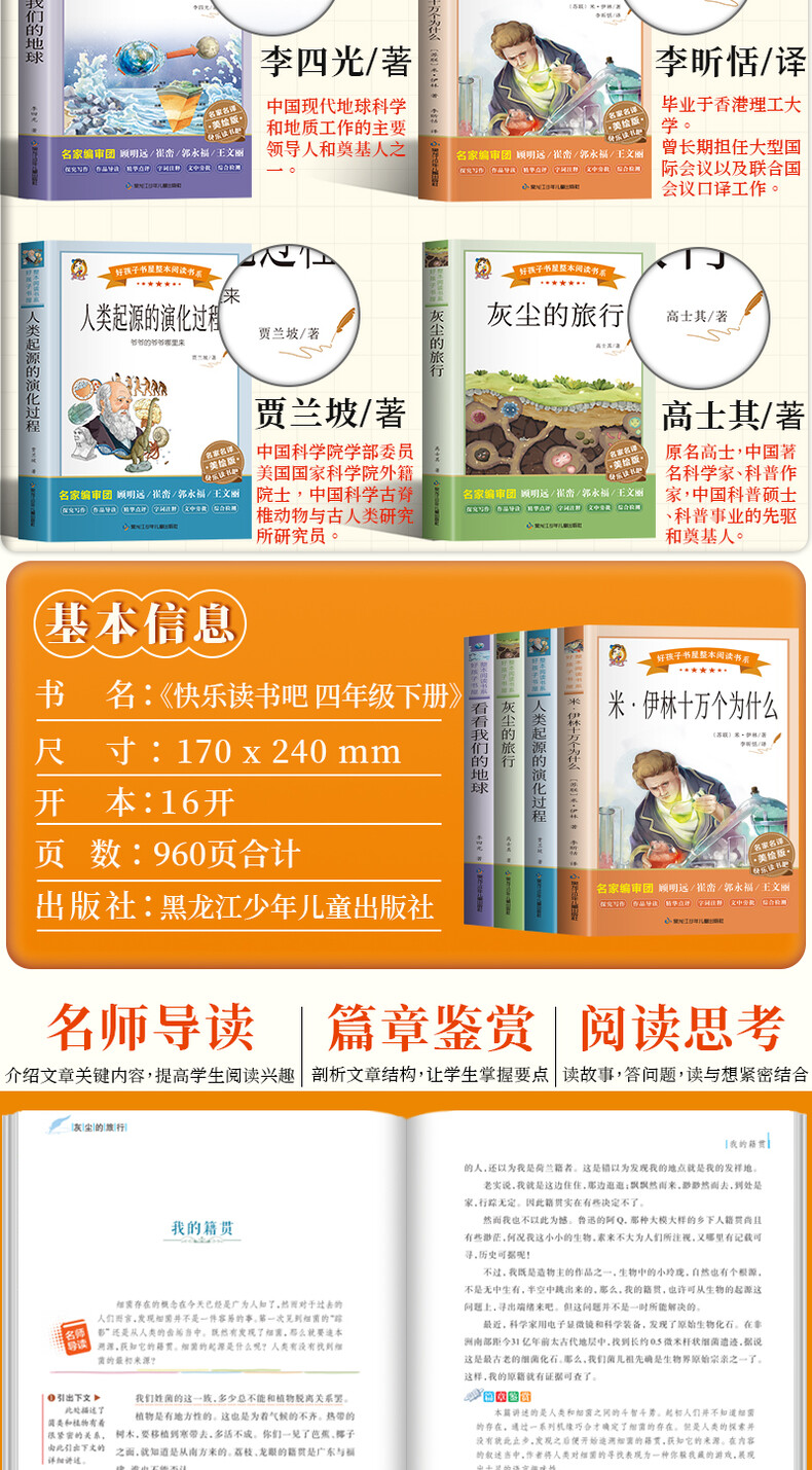 《快乐读书吧4年级下册:<看看我们的地球><灰尘的旅行><人类起源的演化过程——爷爷的爷爷哪里来><米·伊林十万个为什么>(全4册)》由李四光等著