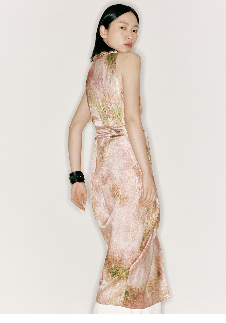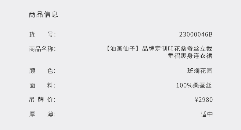【油画仙子】品牌定制印花桑蚕丝立裁垂褶裹身连衣裙/23000046B