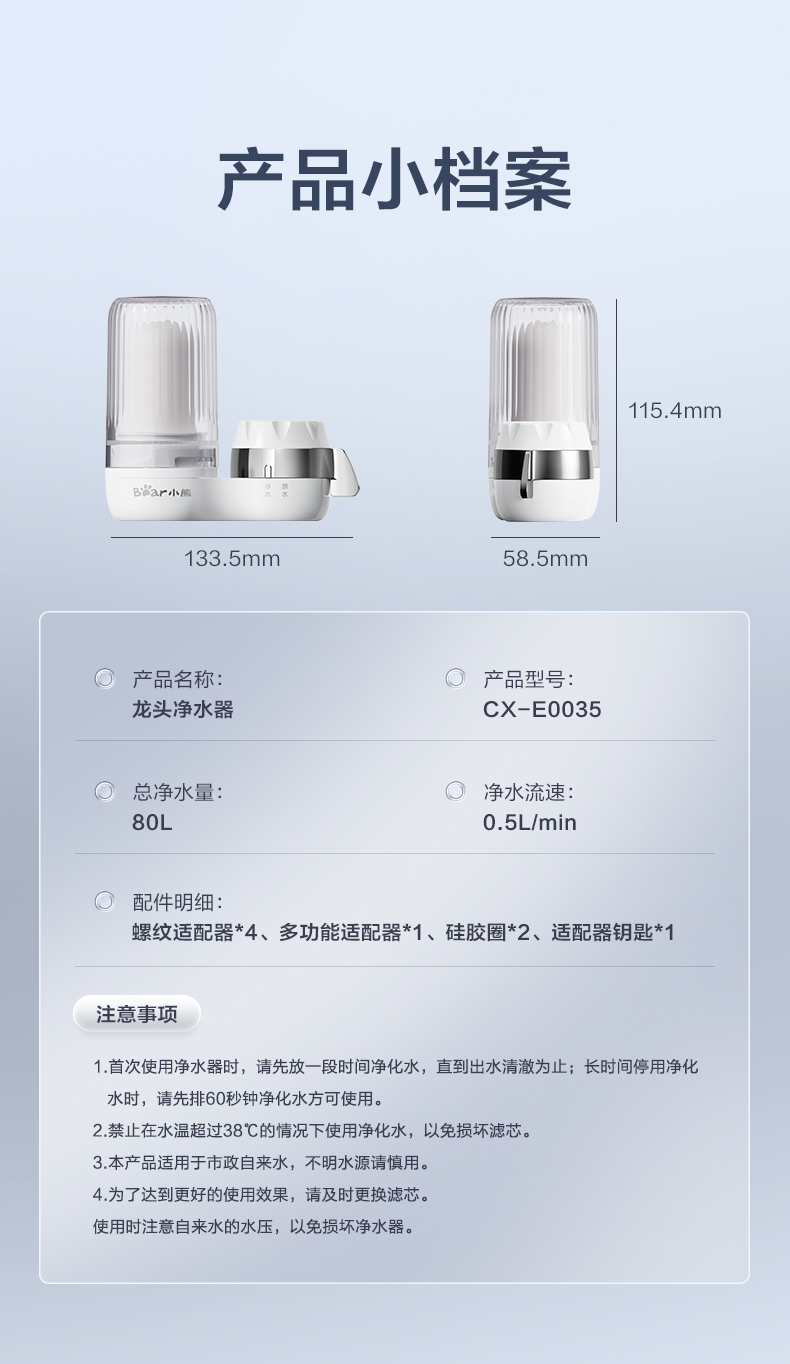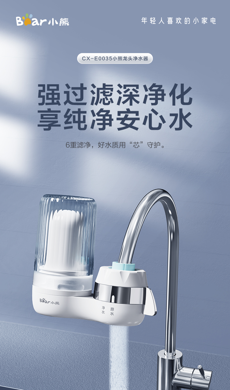 小熊龙头净水器 CX-E0035 白色 陶瓷滤芯/过滤