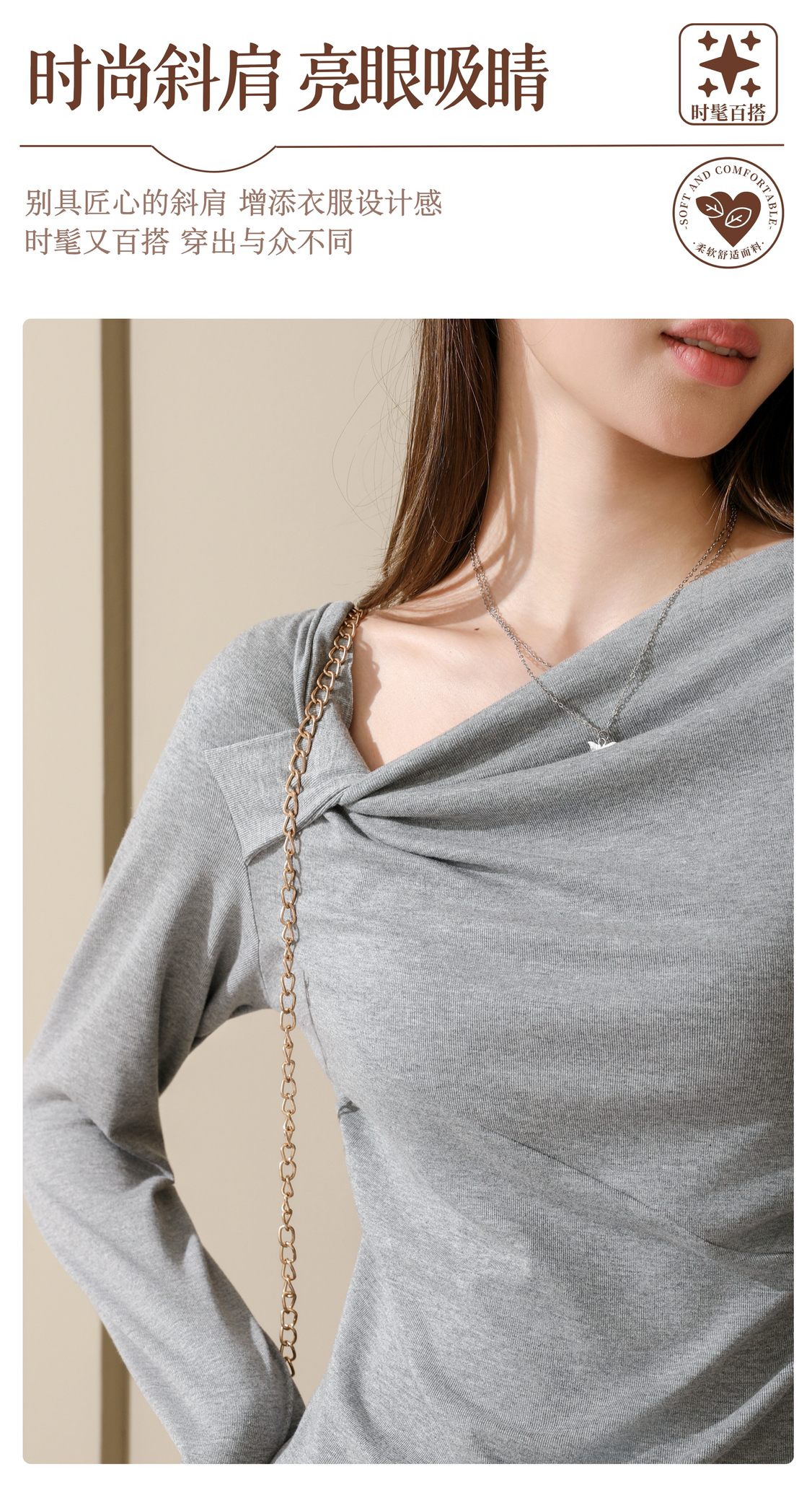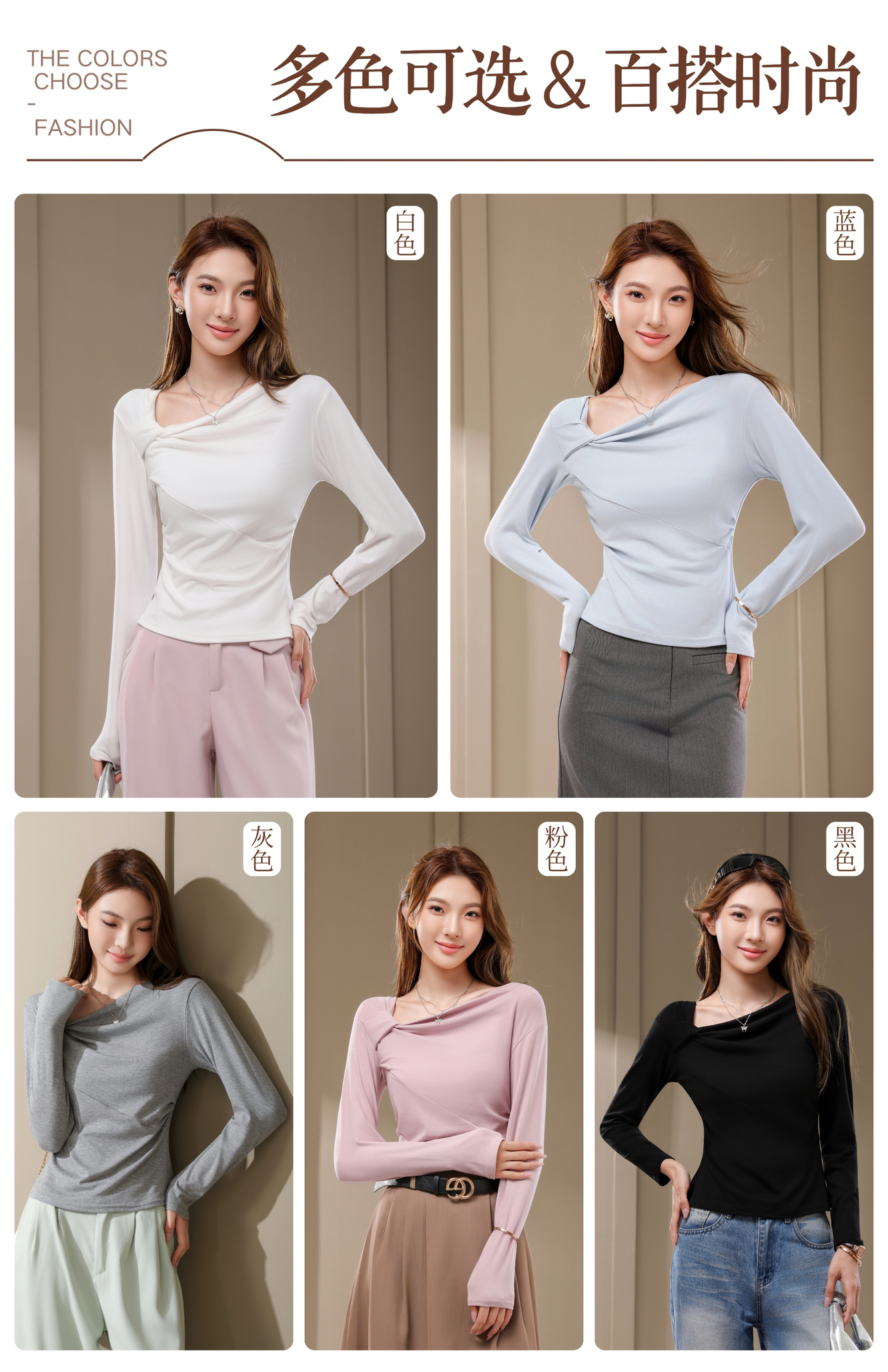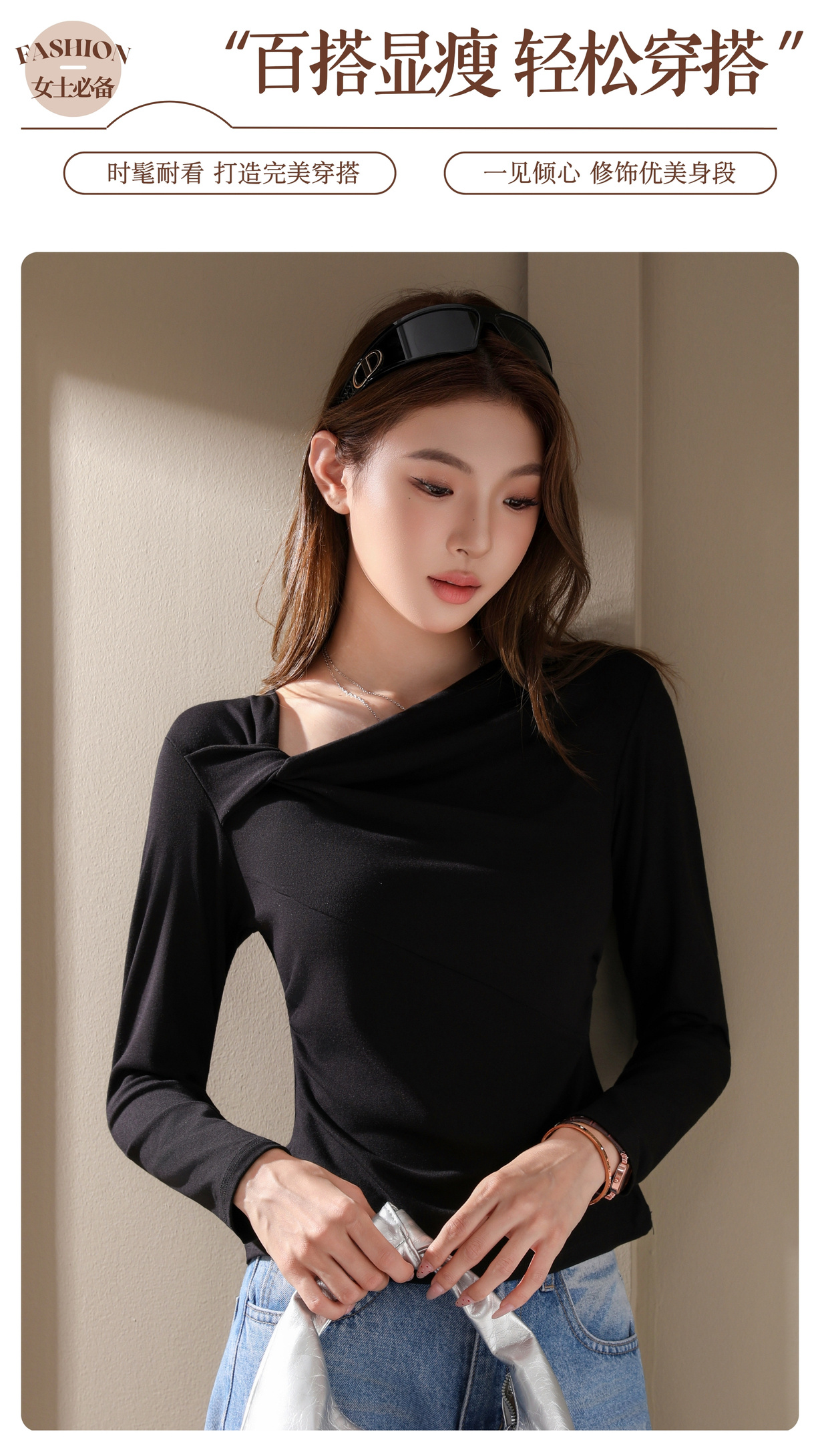 专柜品质显瘦高弹长袖衫【茜妙源--新式设计收腰斜肩打底衫】早秋细腻奶油手感 遮肉显瘦软糯舒适 不易变形/不掉毛/不粘毛/不闷热 今年秋冬衣橱主力军!