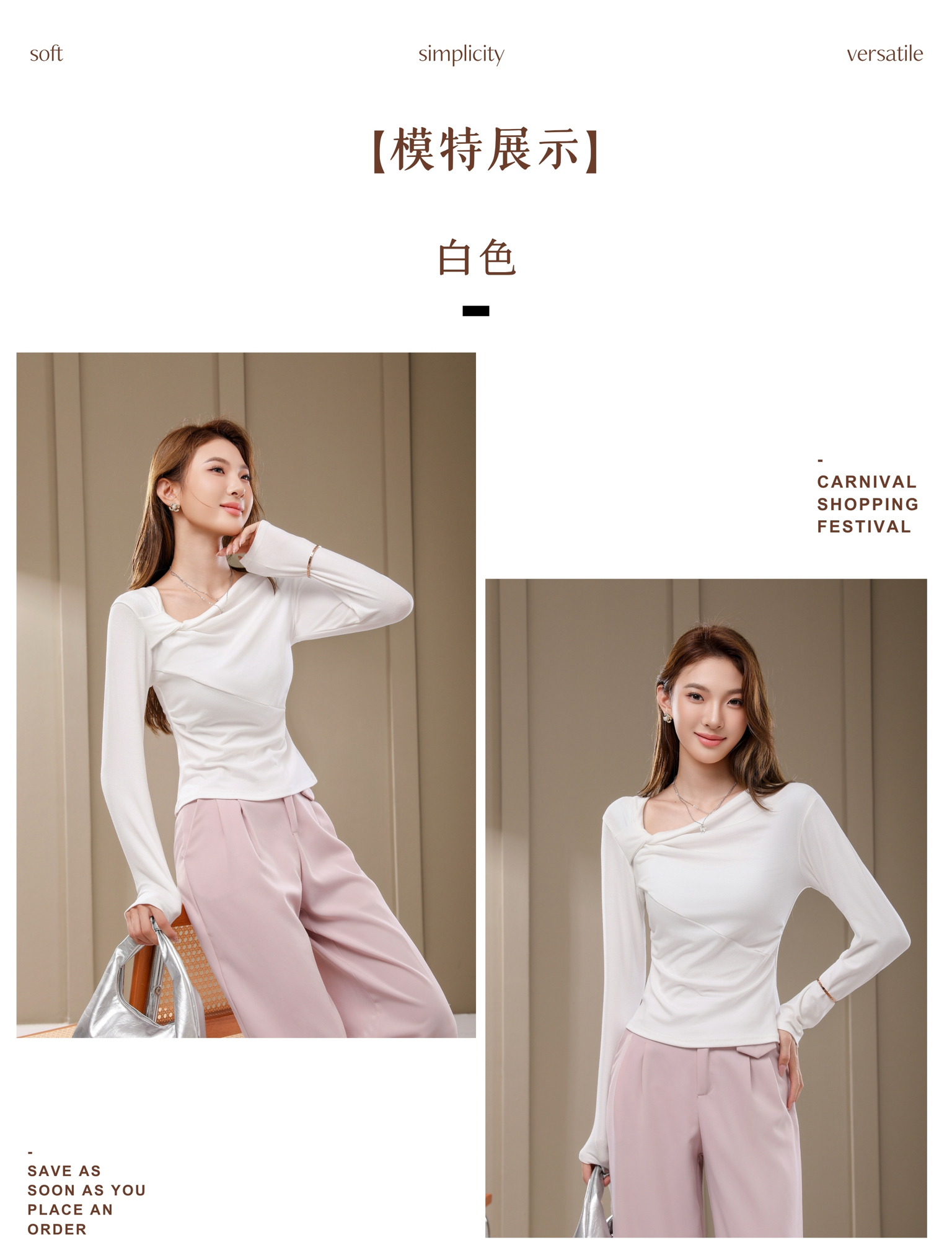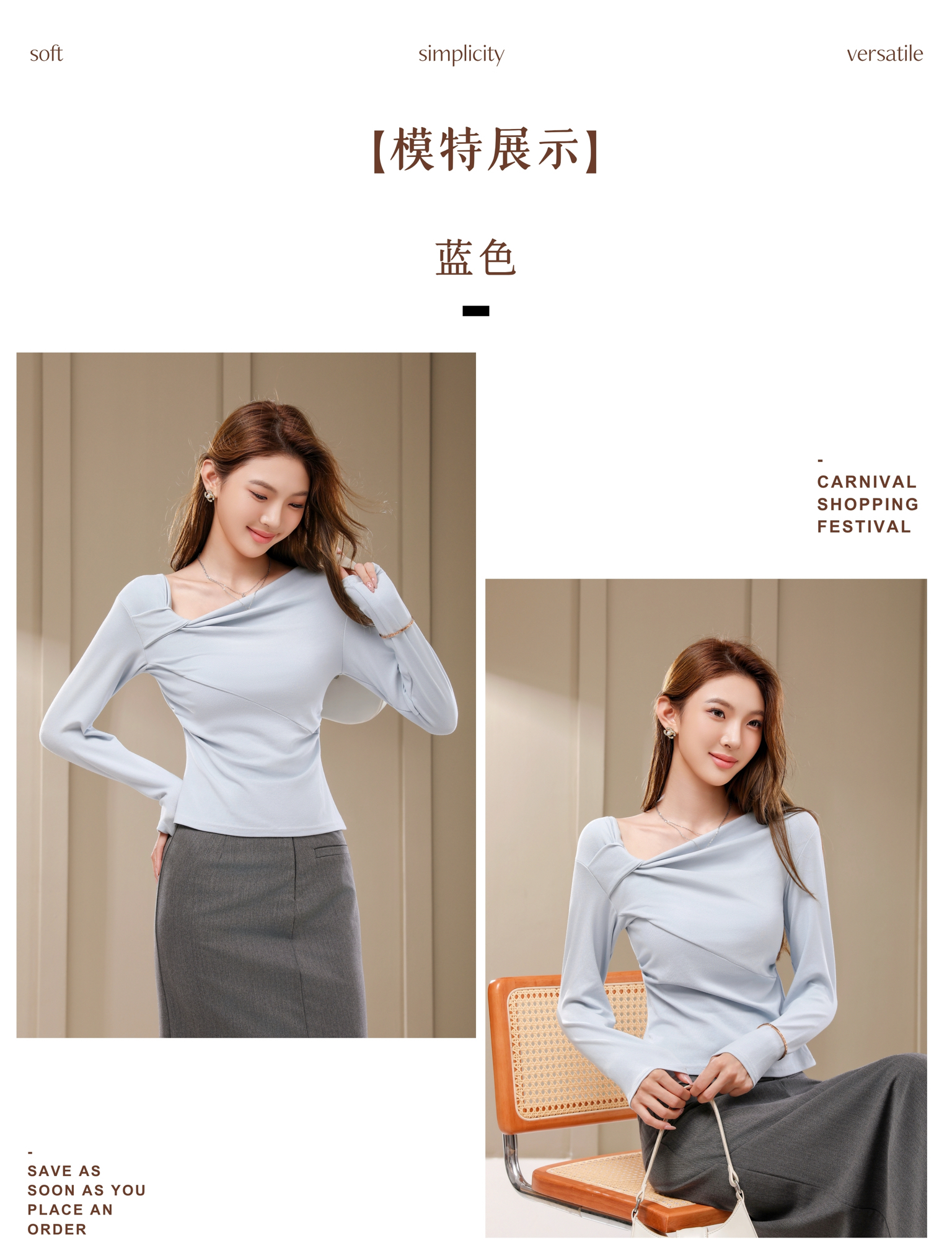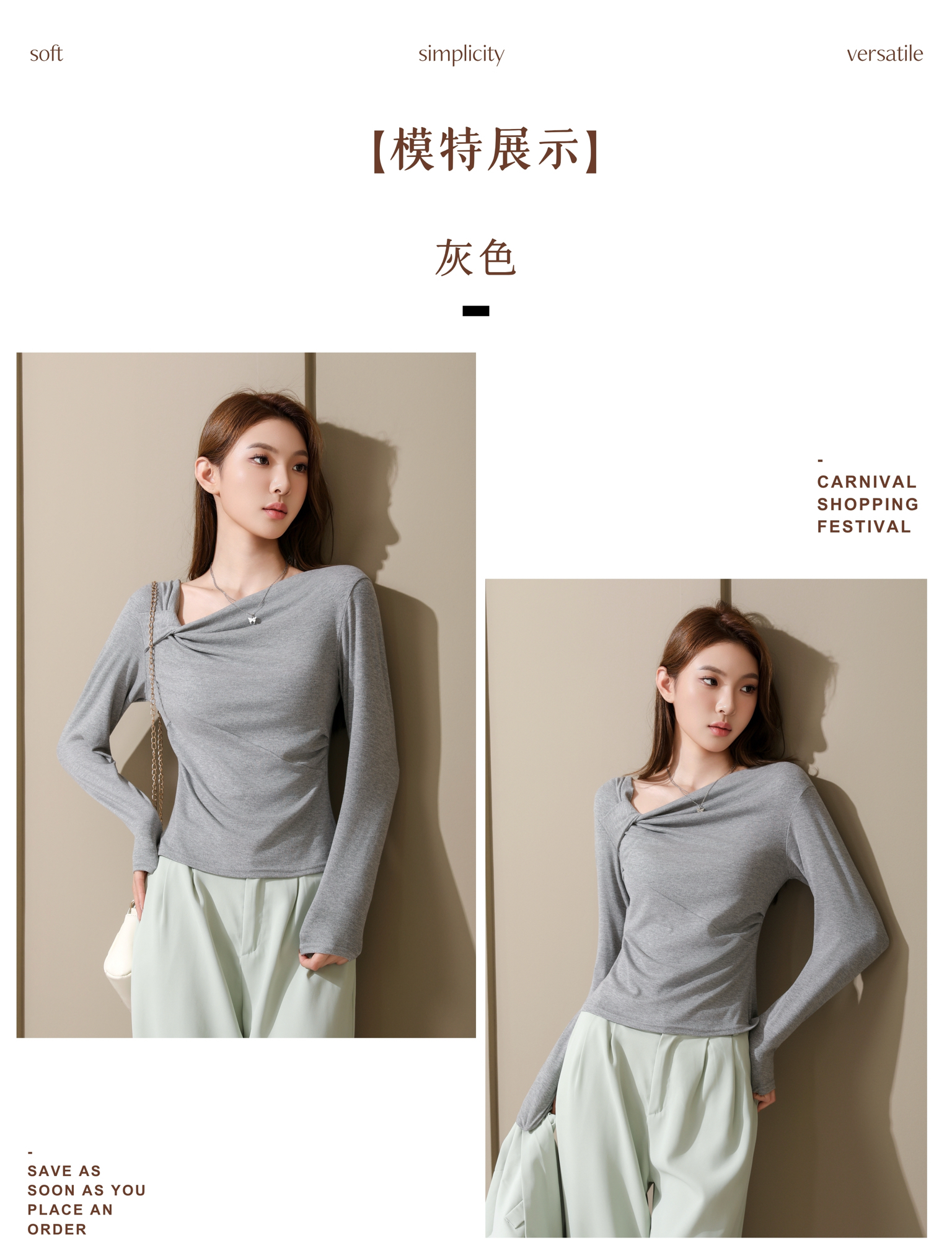 专柜品质显瘦高弹长袖衫【茜妙源--新式设计收腰斜肩打底衫】早秋细腻奶油手感 遮肉显瘦软糯舒适 不易变形/不掉毛/不粘毛/不闷热 今年秋冬衣橱主力军!