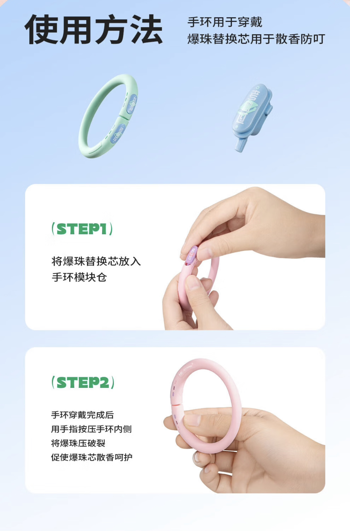 彩虹 精油手环【1手环+4枚爆珠】敦煌爆珠植物手环 儿童宝宝 驱蚊防蚊
