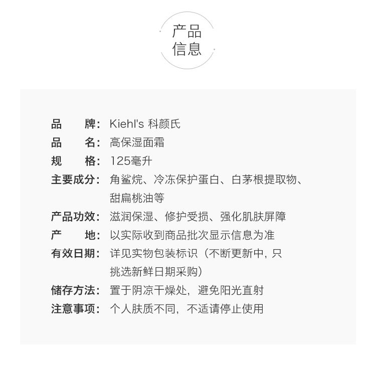 科颜氏第三代高保湿面霜125ml(有效期至27年)