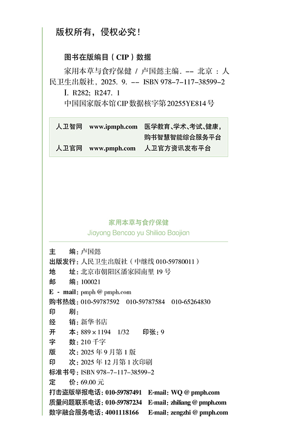 家用本草与食疗保健 卢国懿 主编 以图文并茂形式对其产地、采收、炮制、功能、主治等进行详细讲述 9787117385992人民卫生出版社