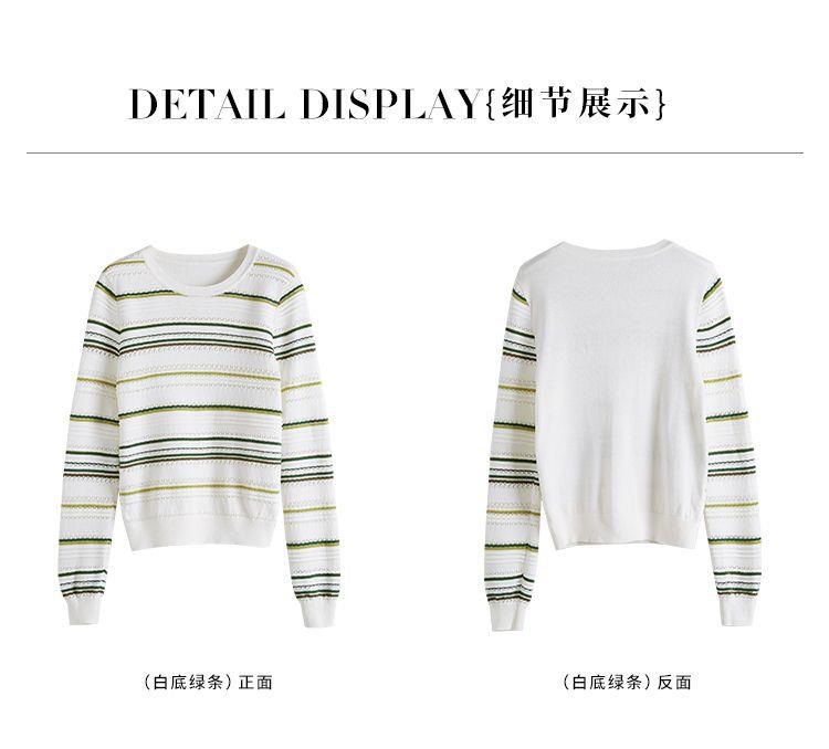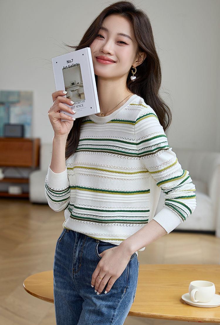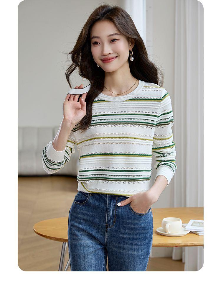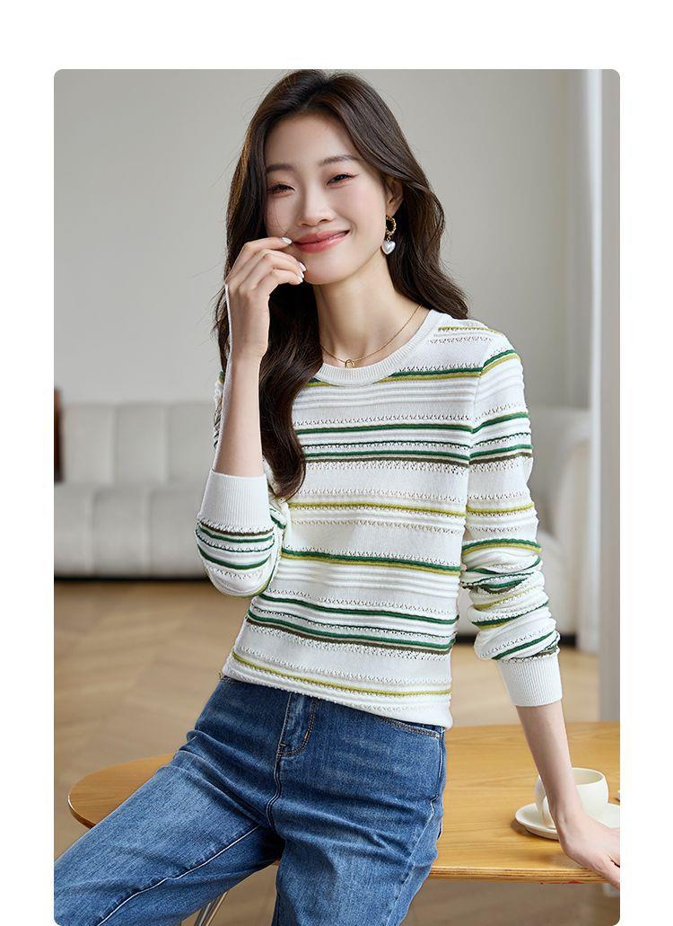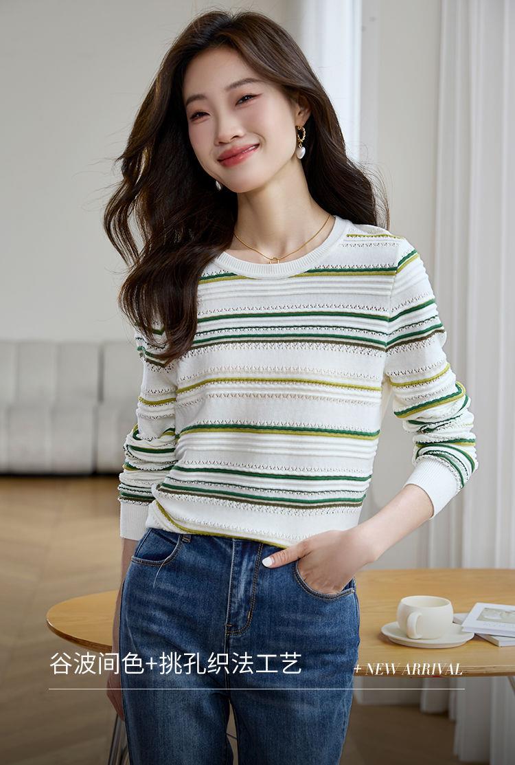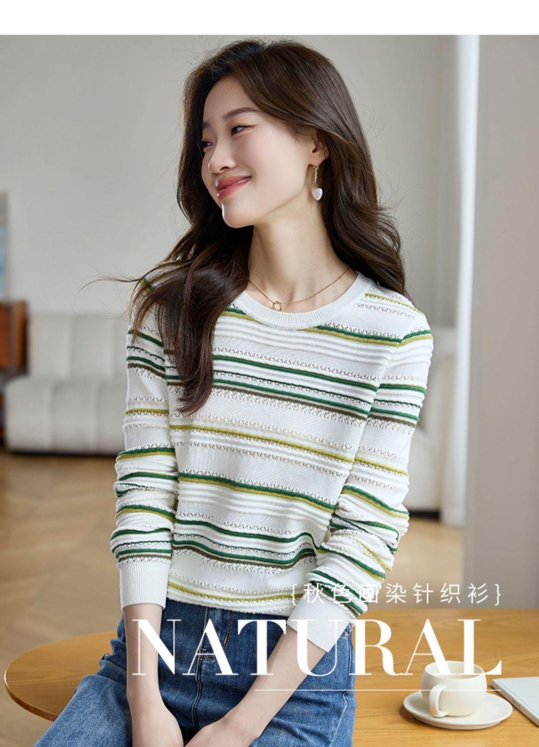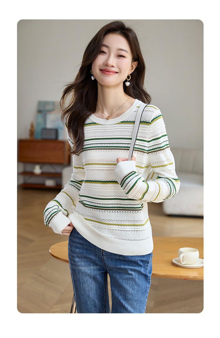 条纹针织衫女长袖2023秋季新款毛衣洋气春秋打底衫秋冬宽松上衣
