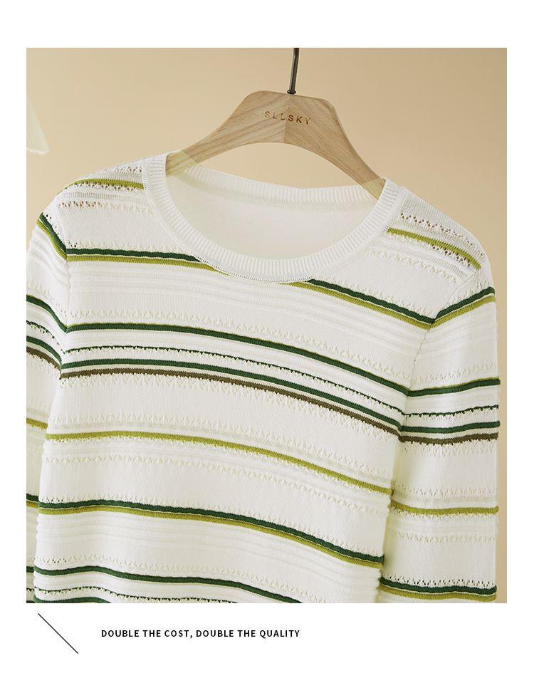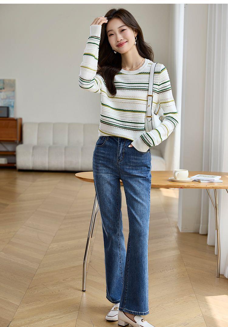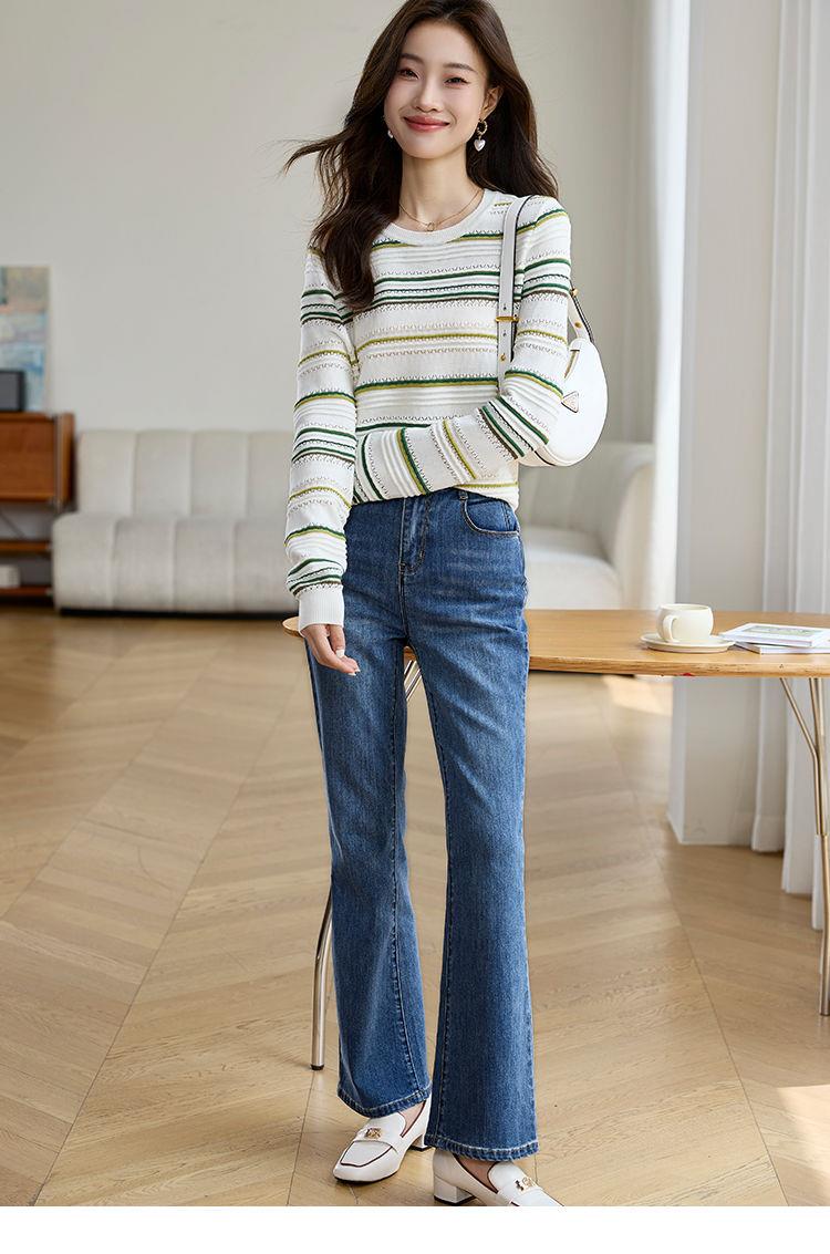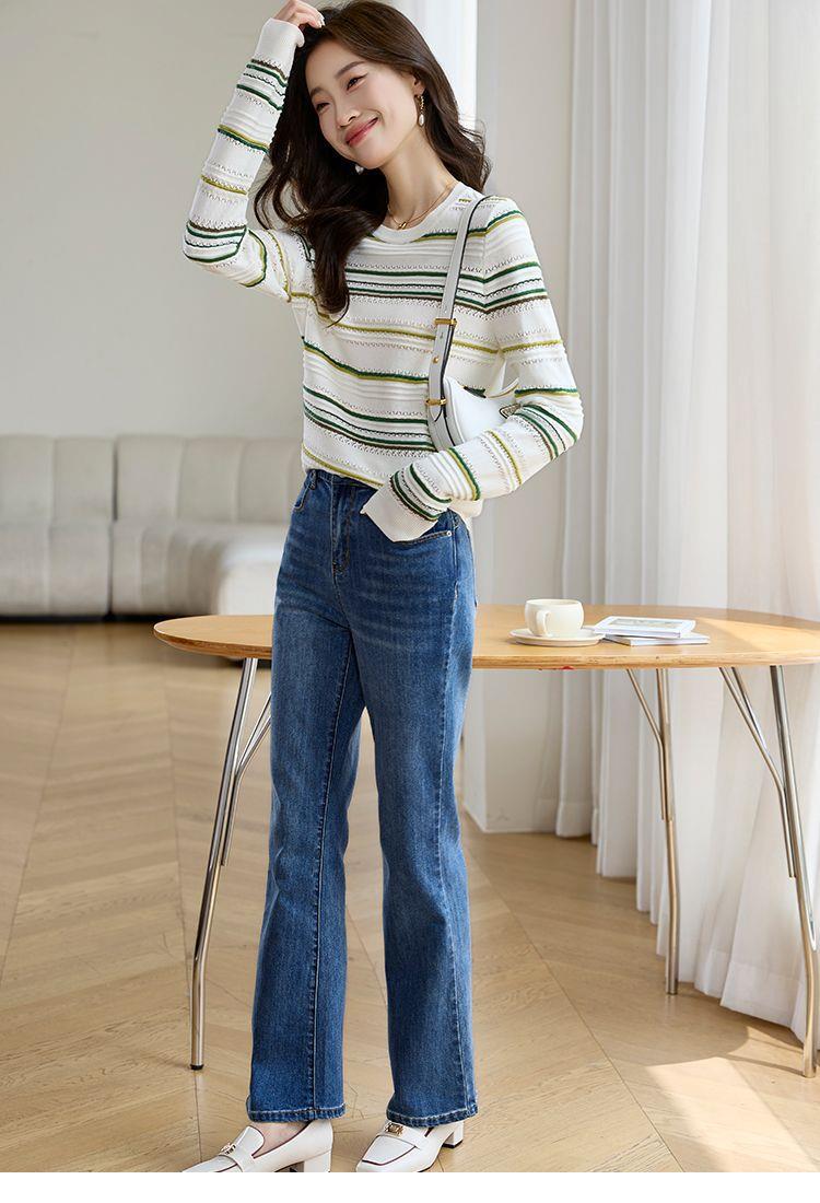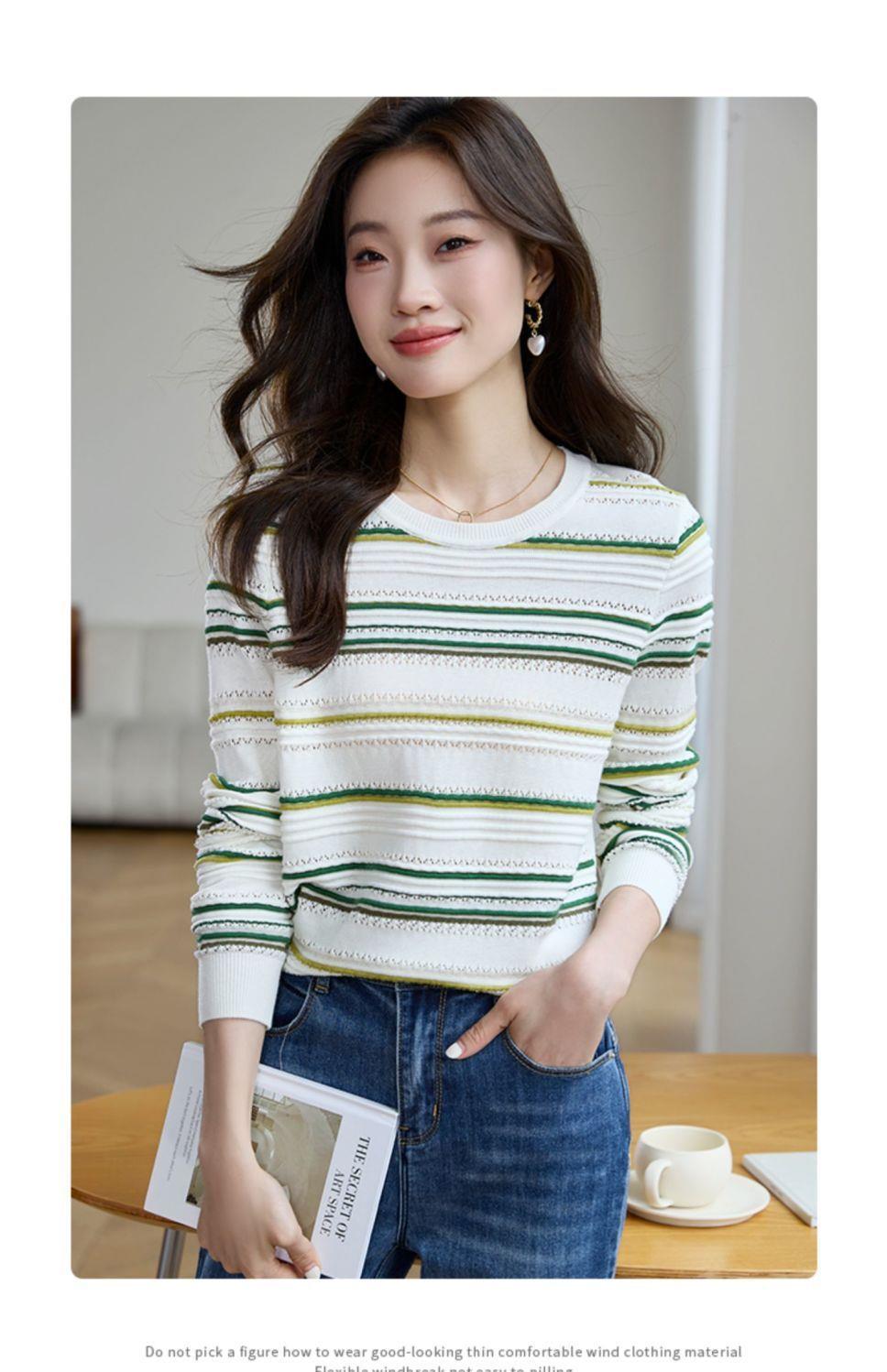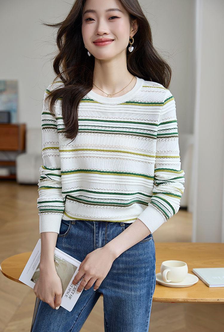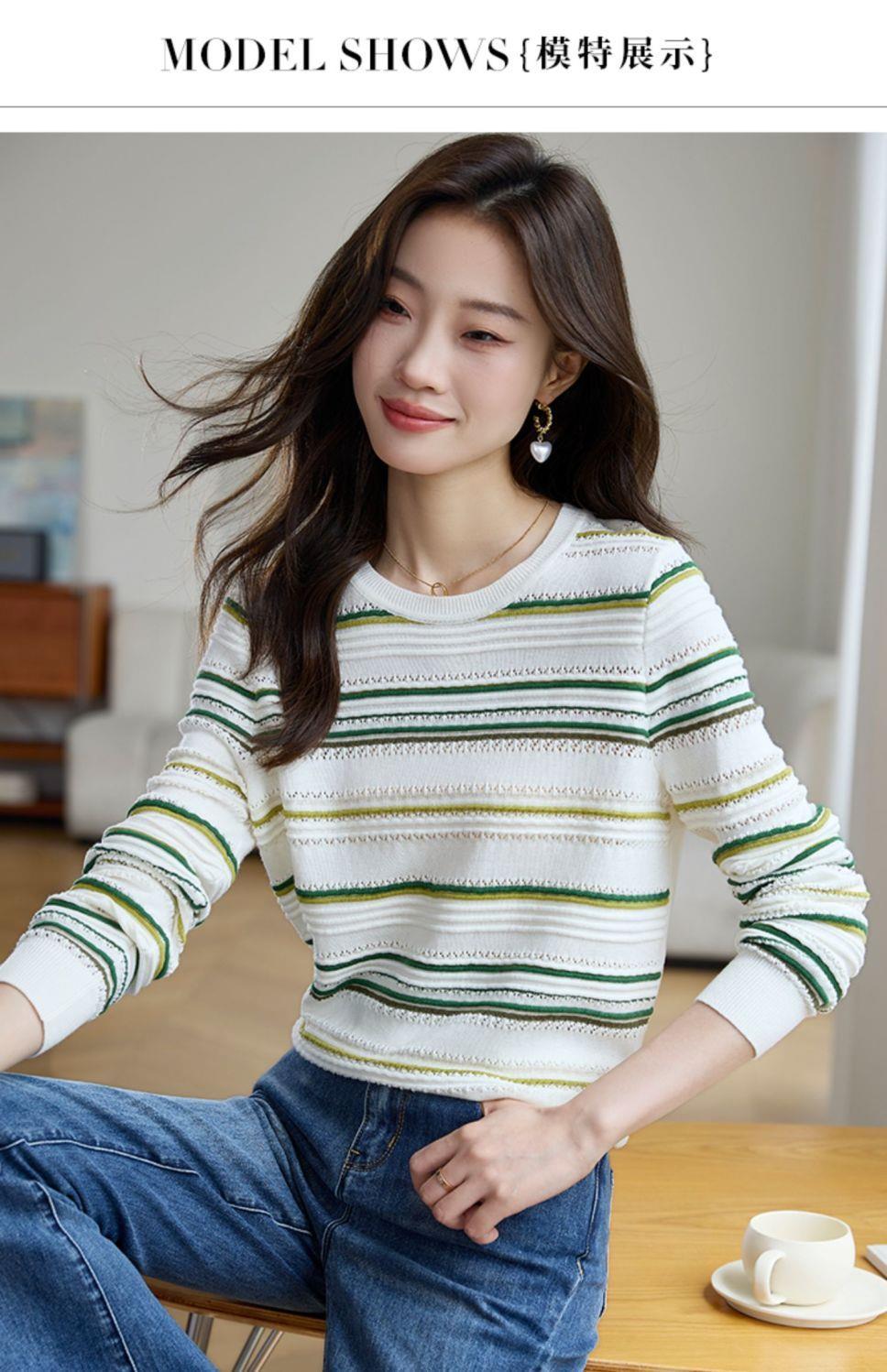 条纹针织衫女长袖2023秋季新款毛衣洋气春秋打底衫秋冬宽松上衣