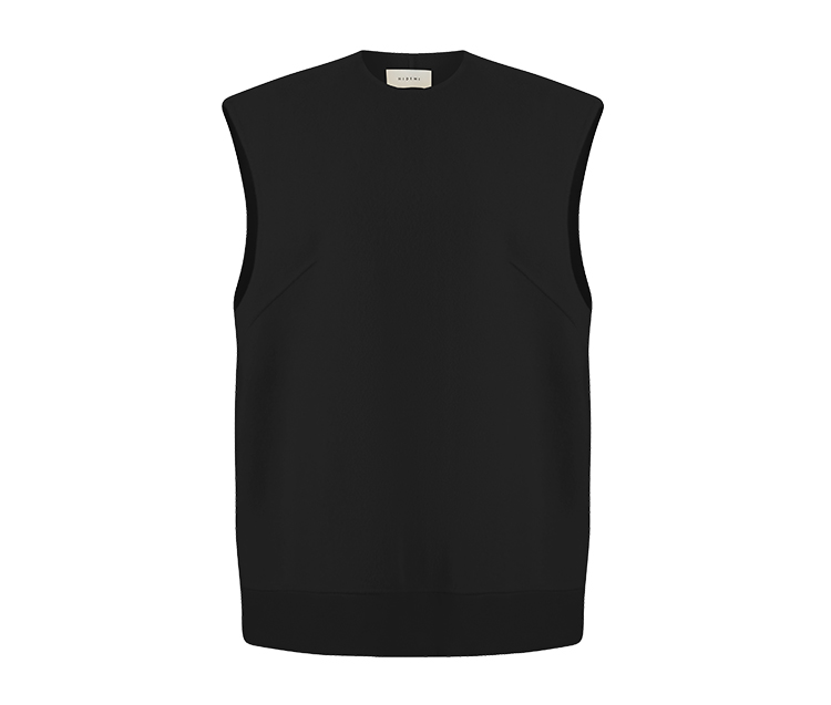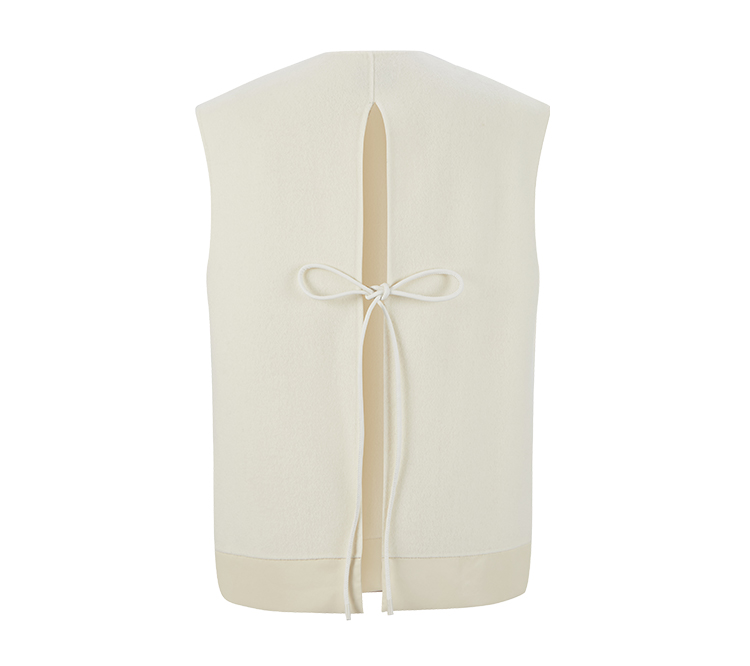 HIDEMI进口澳洲美利奴羊毛极简圆领下摆拼皮设计感后背开衩系带廓形马夹