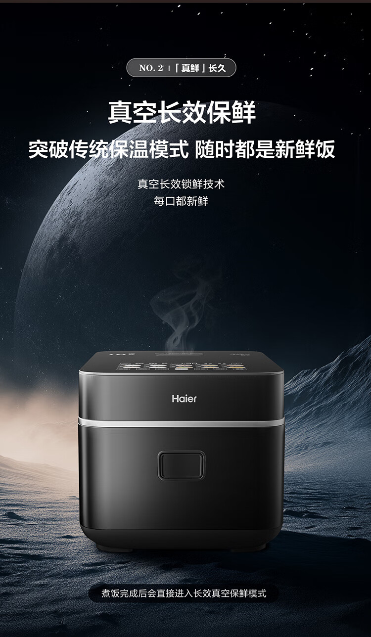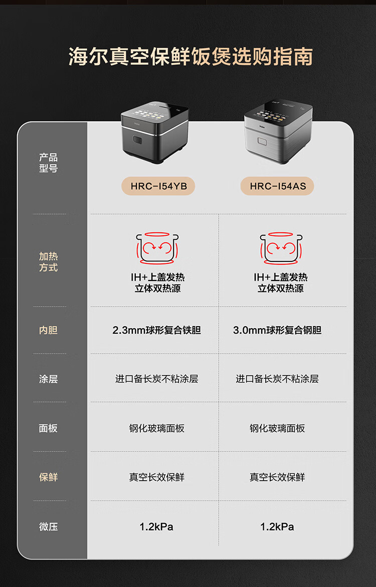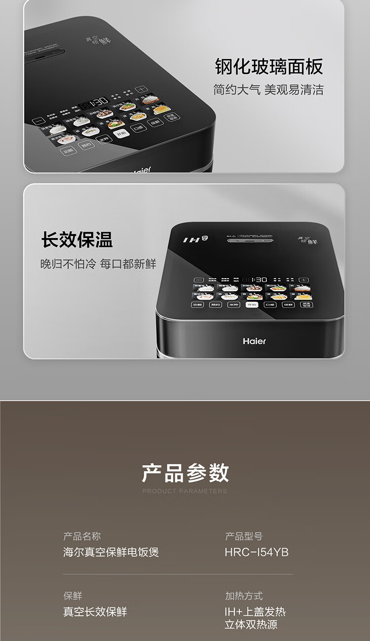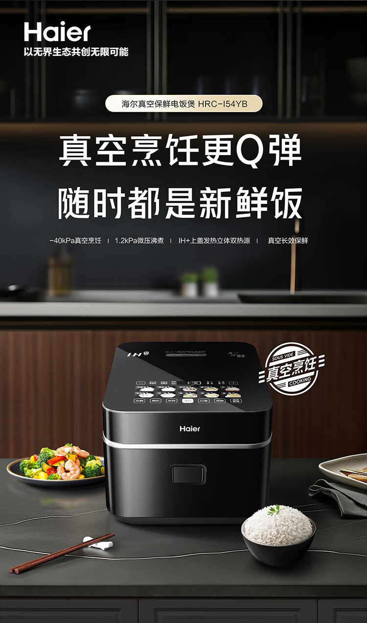 海尔(Haier)【国家补贴】真空电饭煲球釜微压电饭锅家用4L大容量4-5人IH立体双热源备长炭不粘涂层HRC-I54YB
