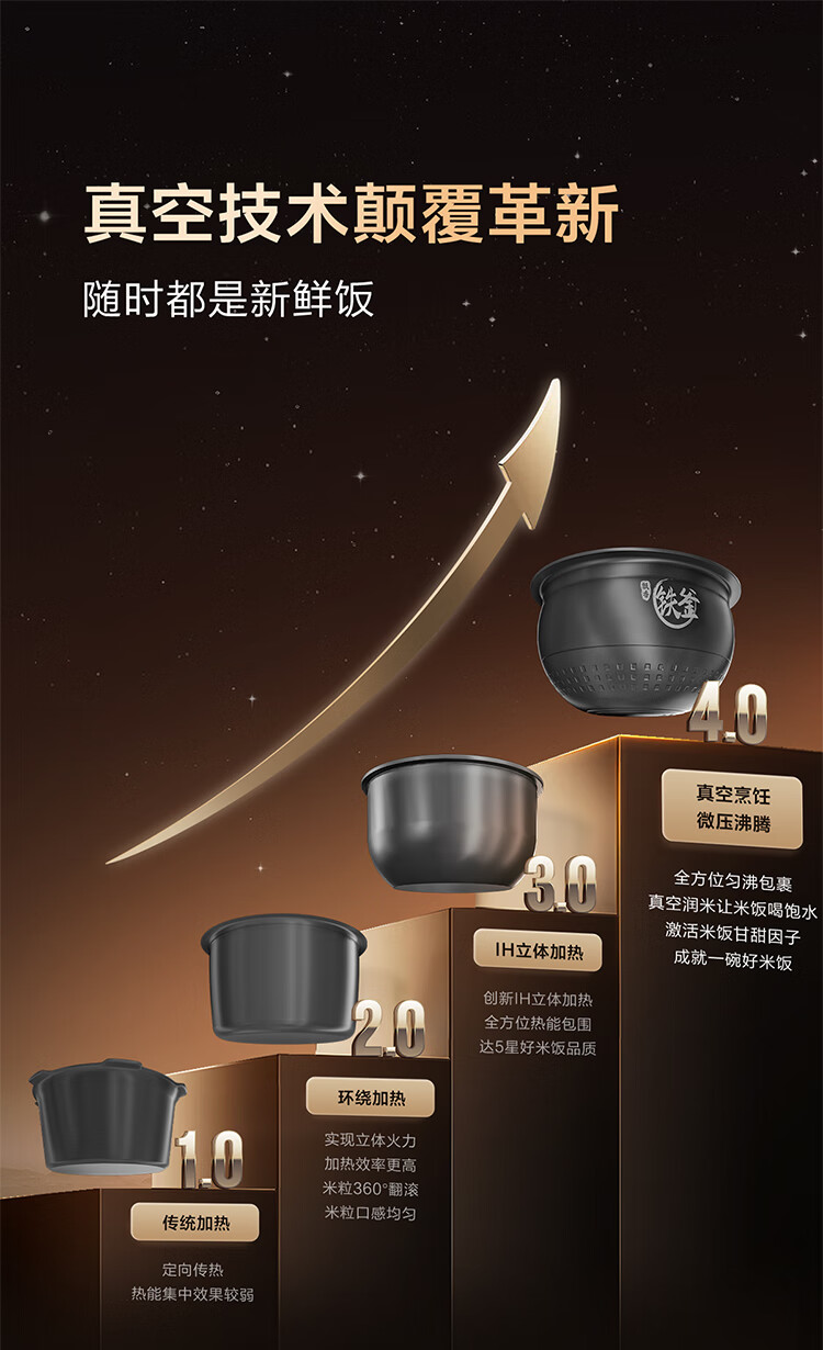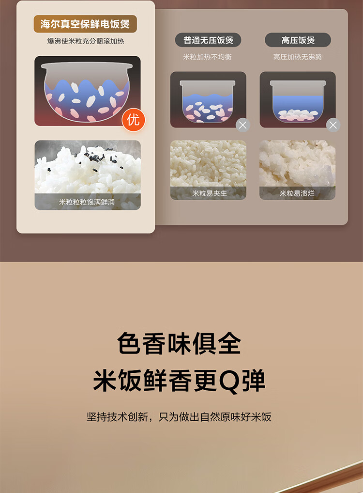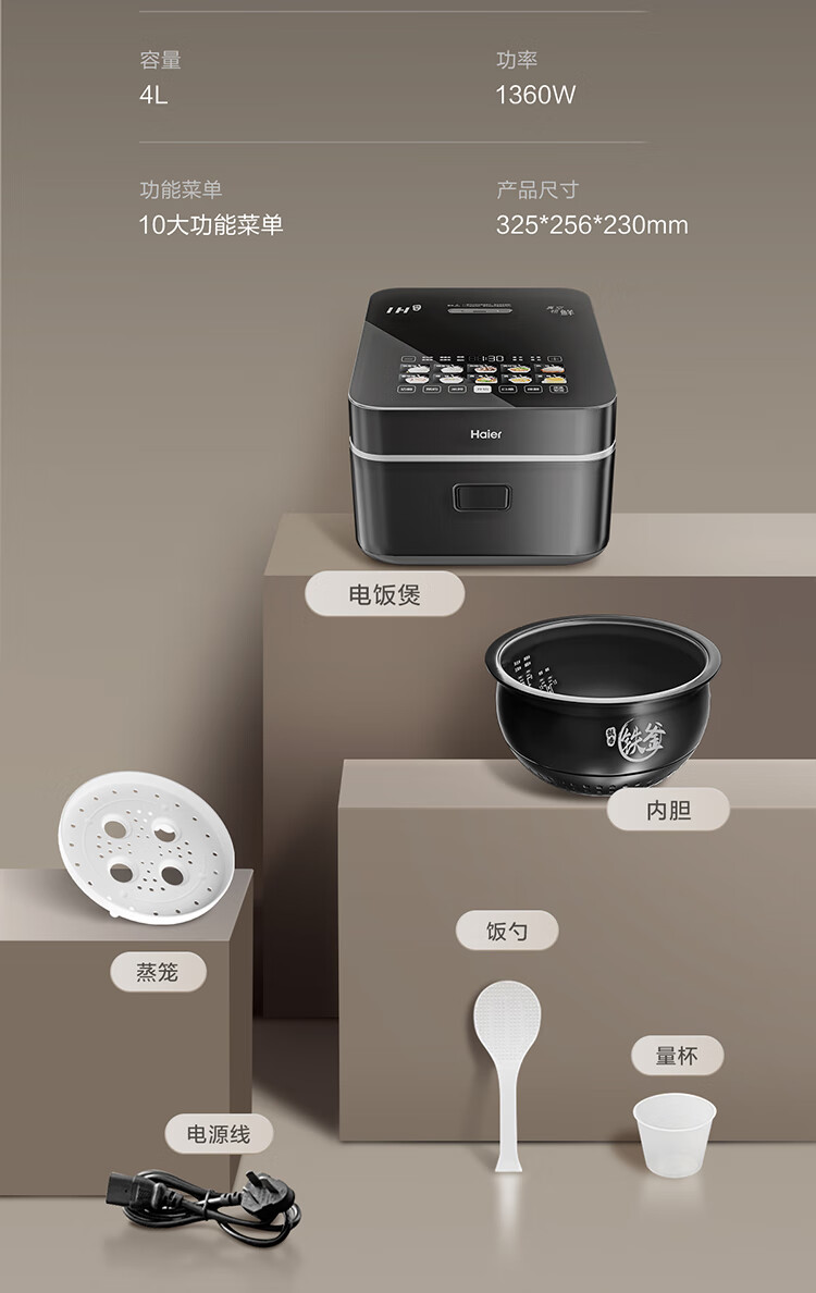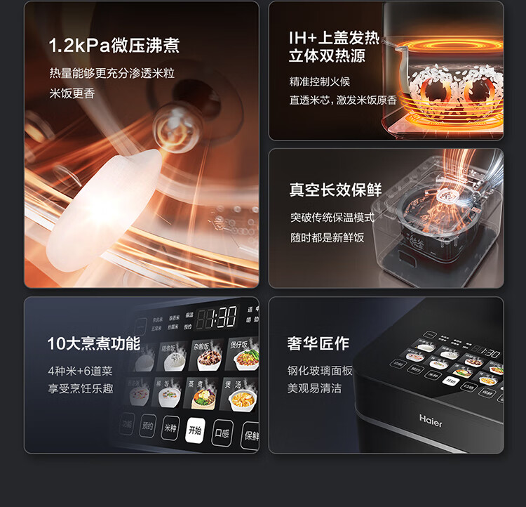海尔(Haier)【国家补贴】真空电饭煲球釜微压电饭锅家用4L大容量4-5人IH立体双热源备长炭不粘涂层HRC-I54YB