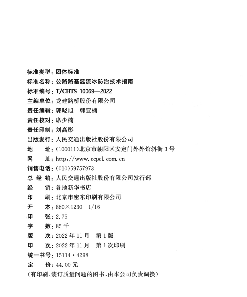 书名:公路路基涎流冰防治技术指南(T/CHTS 10069-2022)