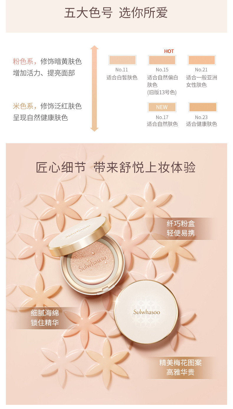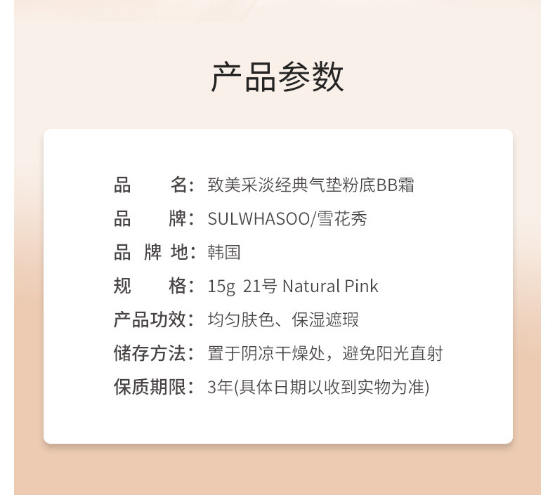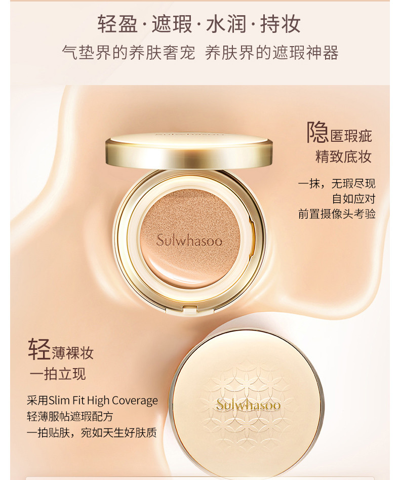 【含替换芯】SULWHASOO/雪花秀 致美采淡经典气垫粉底BB霜 15G*2