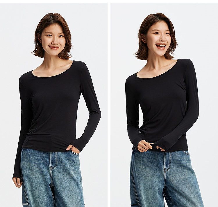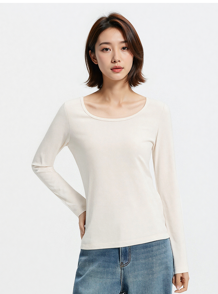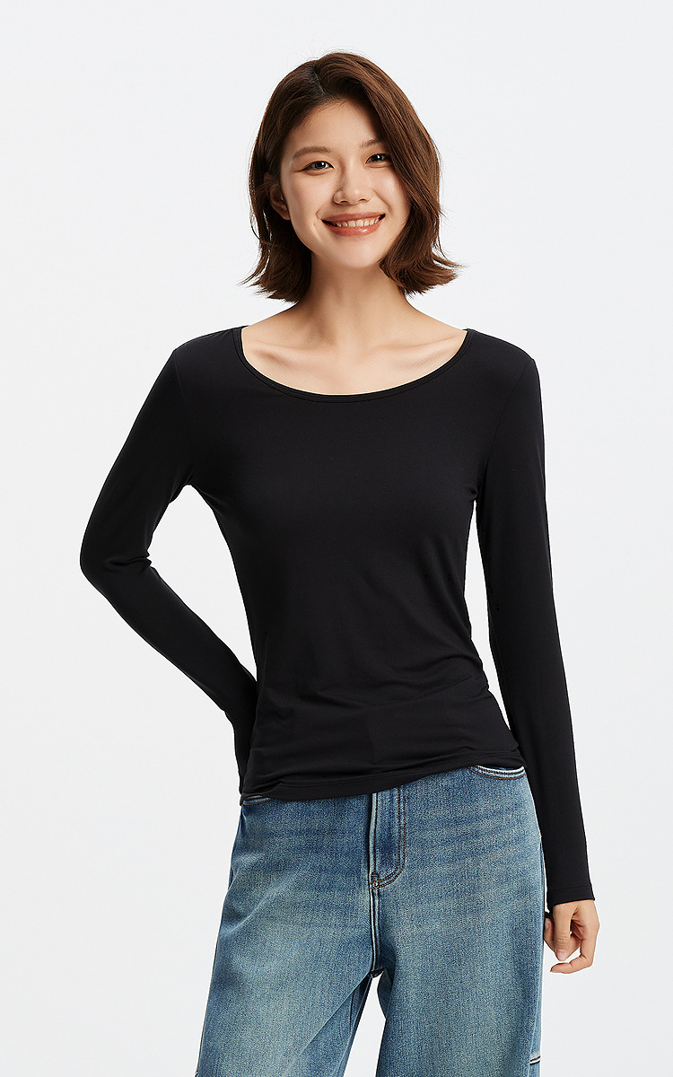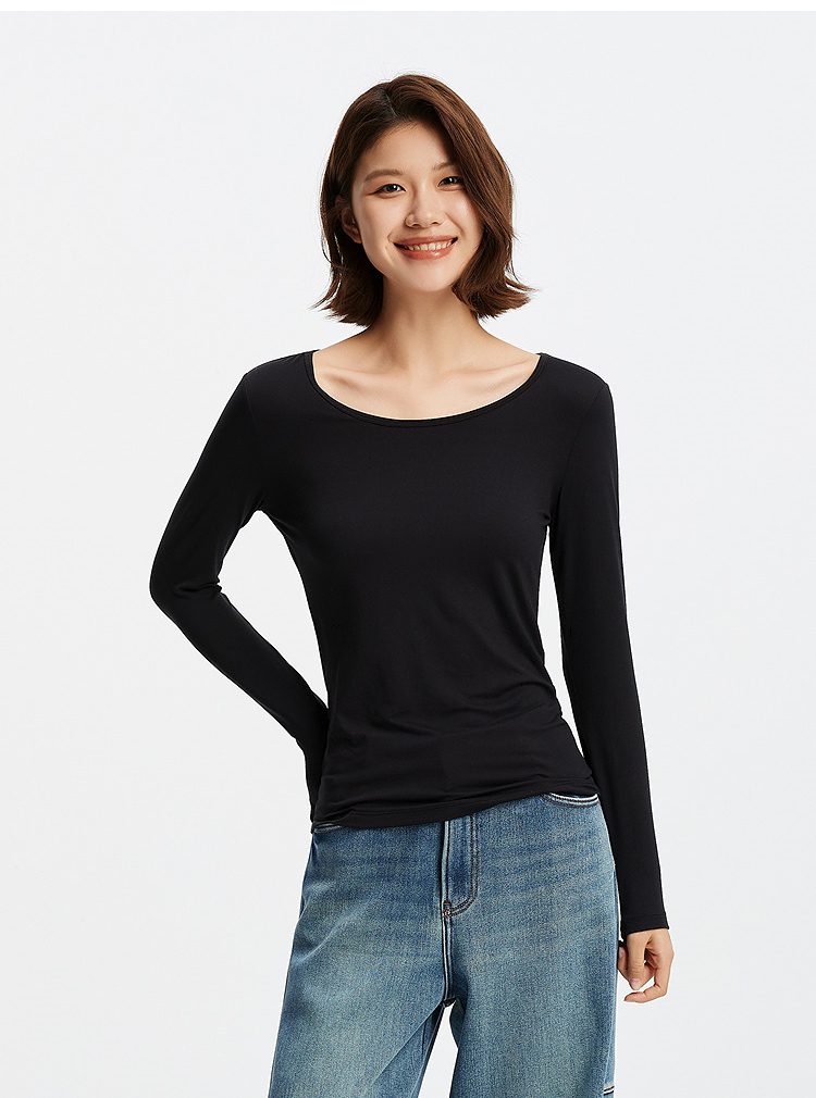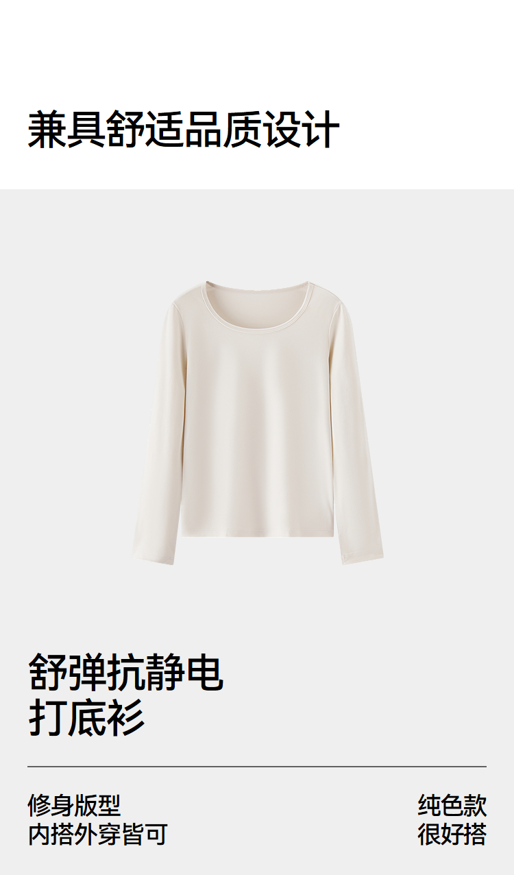 森马内衣女春季舒适纯色打底衫通勤百搭发热圆领上衣可内搭可外穿