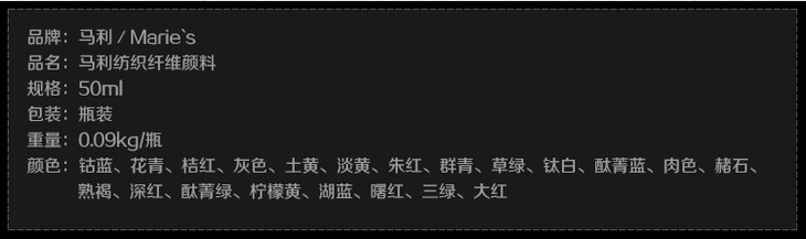 正品保证 马利纺织纤维颜料 50ml 手绘DIY颜料 手绘T恤 鞋颜料