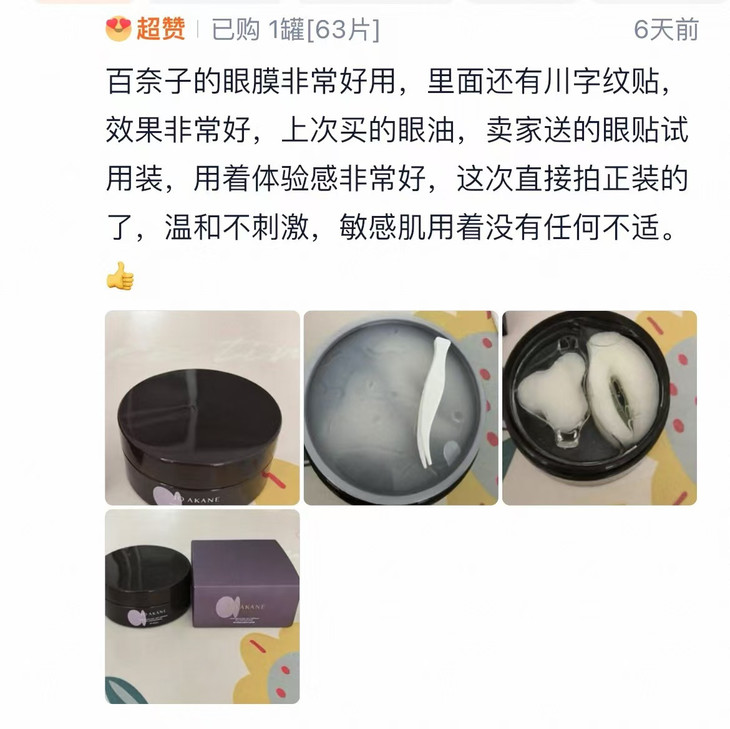 ⭕【年度新品】👏百奈子焕活局部抗皱精华油眼膜💦💦💦 21天改善眼纹、川字纹,胶原小骨贴设计🌈 大容量装,每罐63片,♥️下单两罐再送同款眼膜两片 🥰每天敷也不心疼的大紫罐胶原眼膜