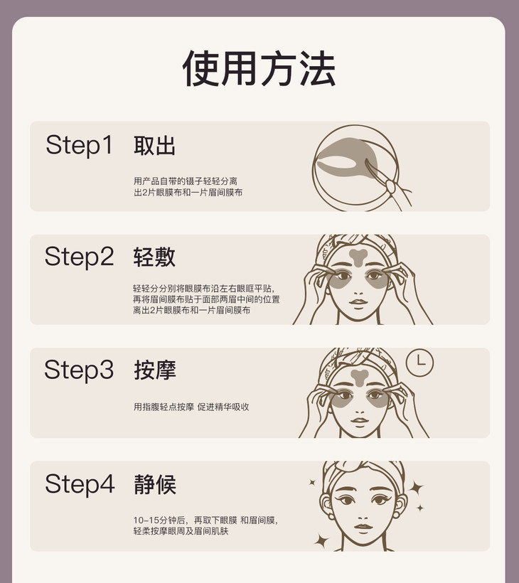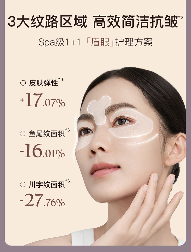 它可不只限于眼周, 抬头纹、法令纹这些小纹路重灾区也能贴, 哪里有纹敷哪里~ 25+抗初老预防干纹,30+改善顽固细纹都适配