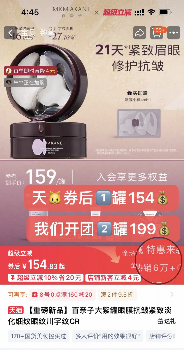 官旗活动价1罐154💰 全网热销6W+,好评满满~ 我们开团2罐199💰,立省109💰 还赠送同款眼膜2片