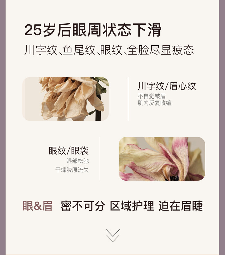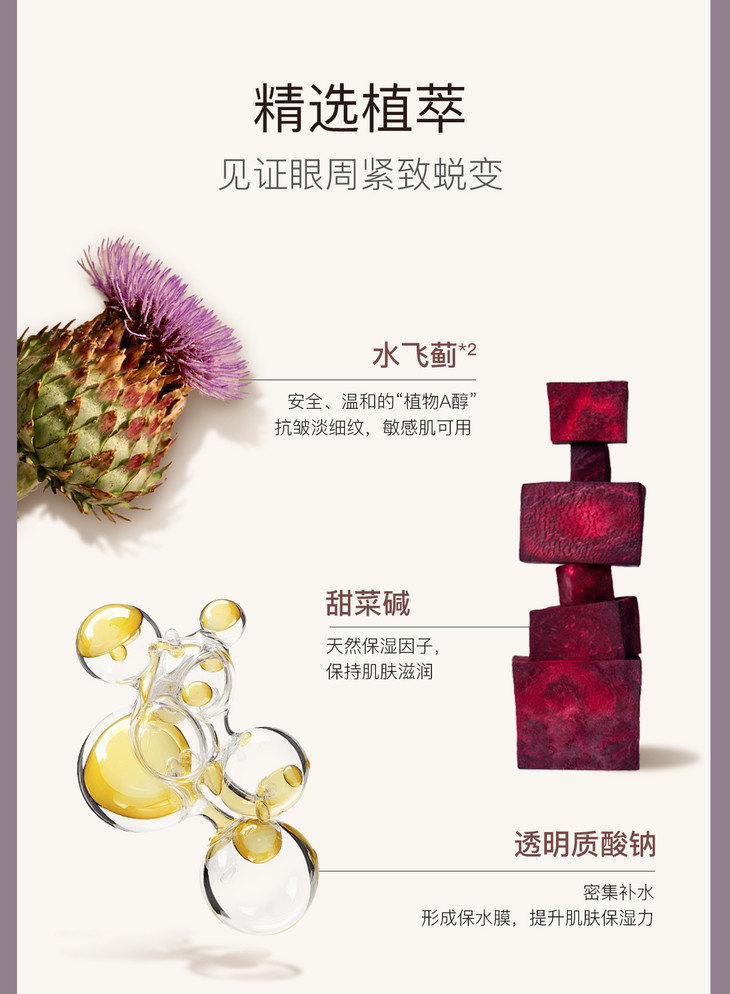 成分党必须夸这“焕活配方”: 微囊缓释A醇温和刺激胶原再生, 新手用也不用担心红脸脱皮, 搭配灵芝孢子油和植物精油, 一边给干瘪眼周“灌营养”,一边用神经酰胺修护屏障。