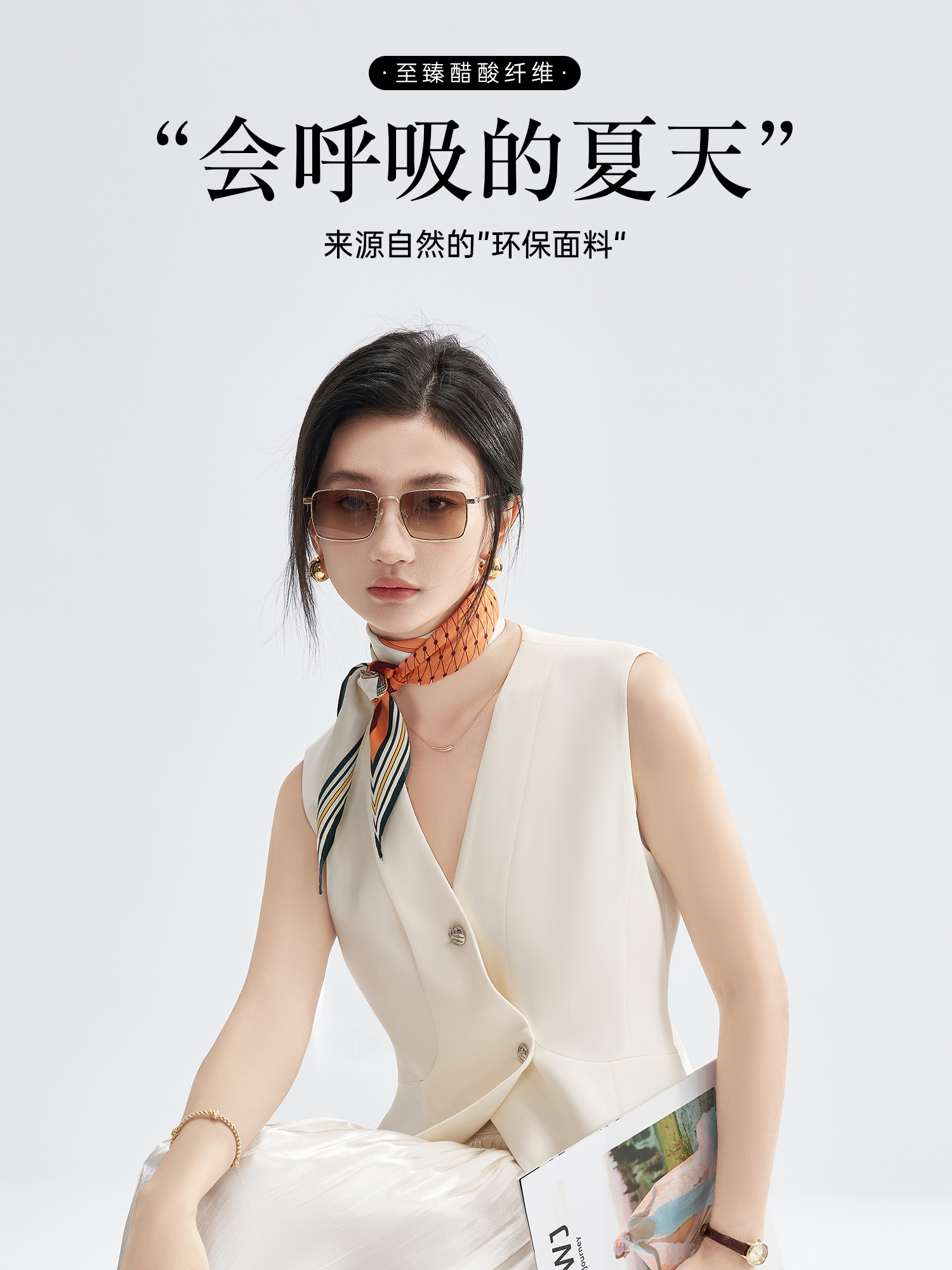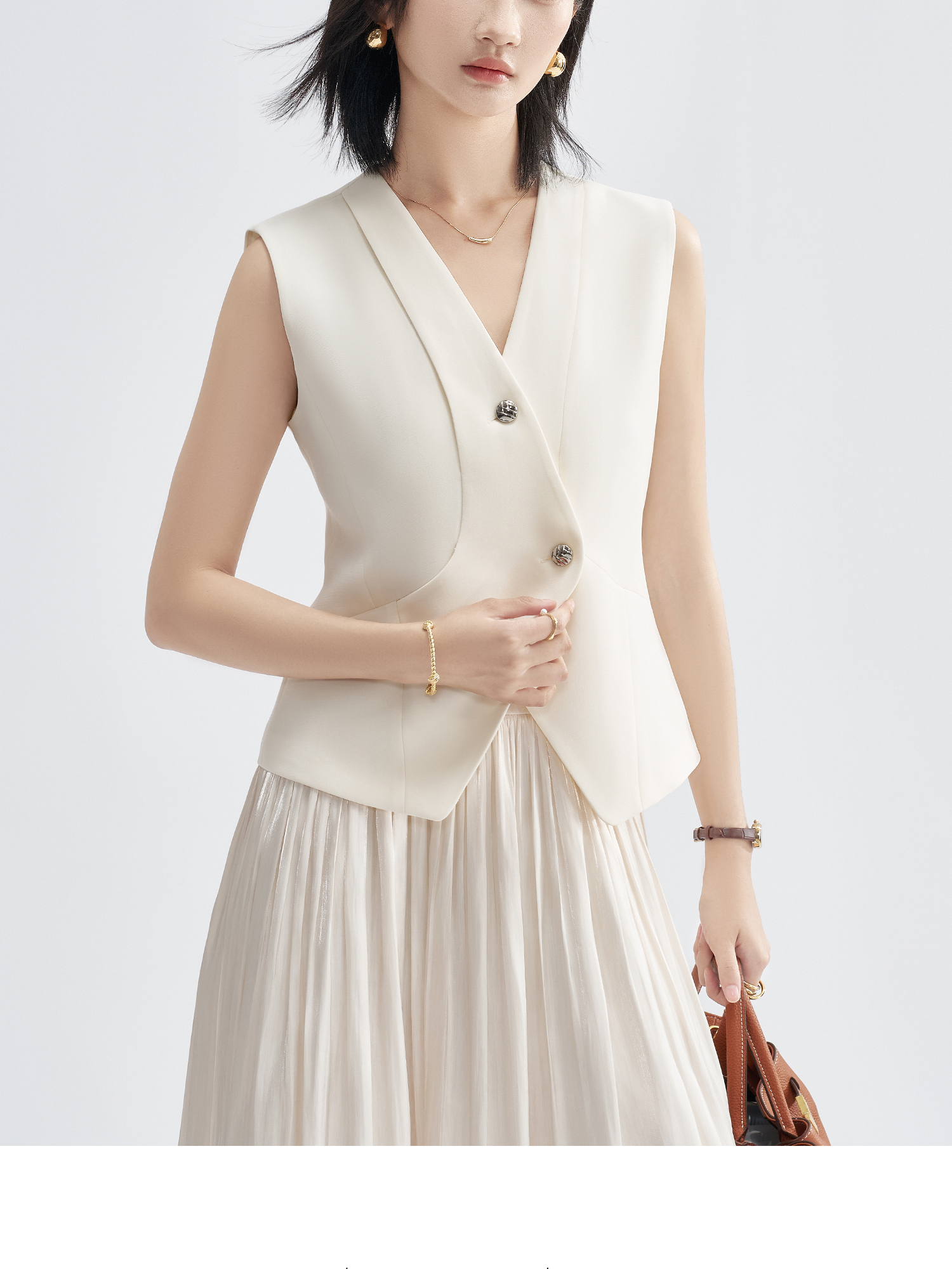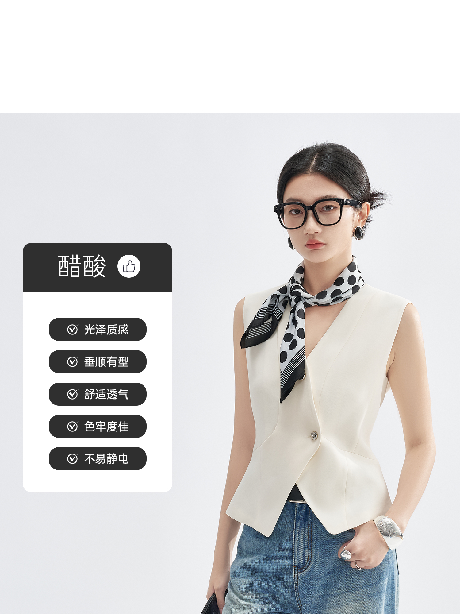 米思阳2025初秋新气质老钱风马夹醋酸解构V领短外套凉感爽滑外搭3225