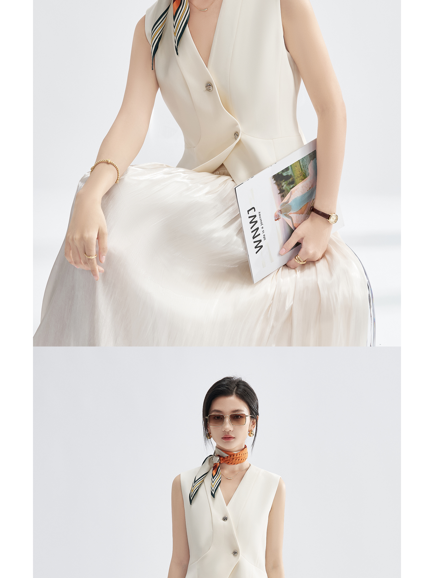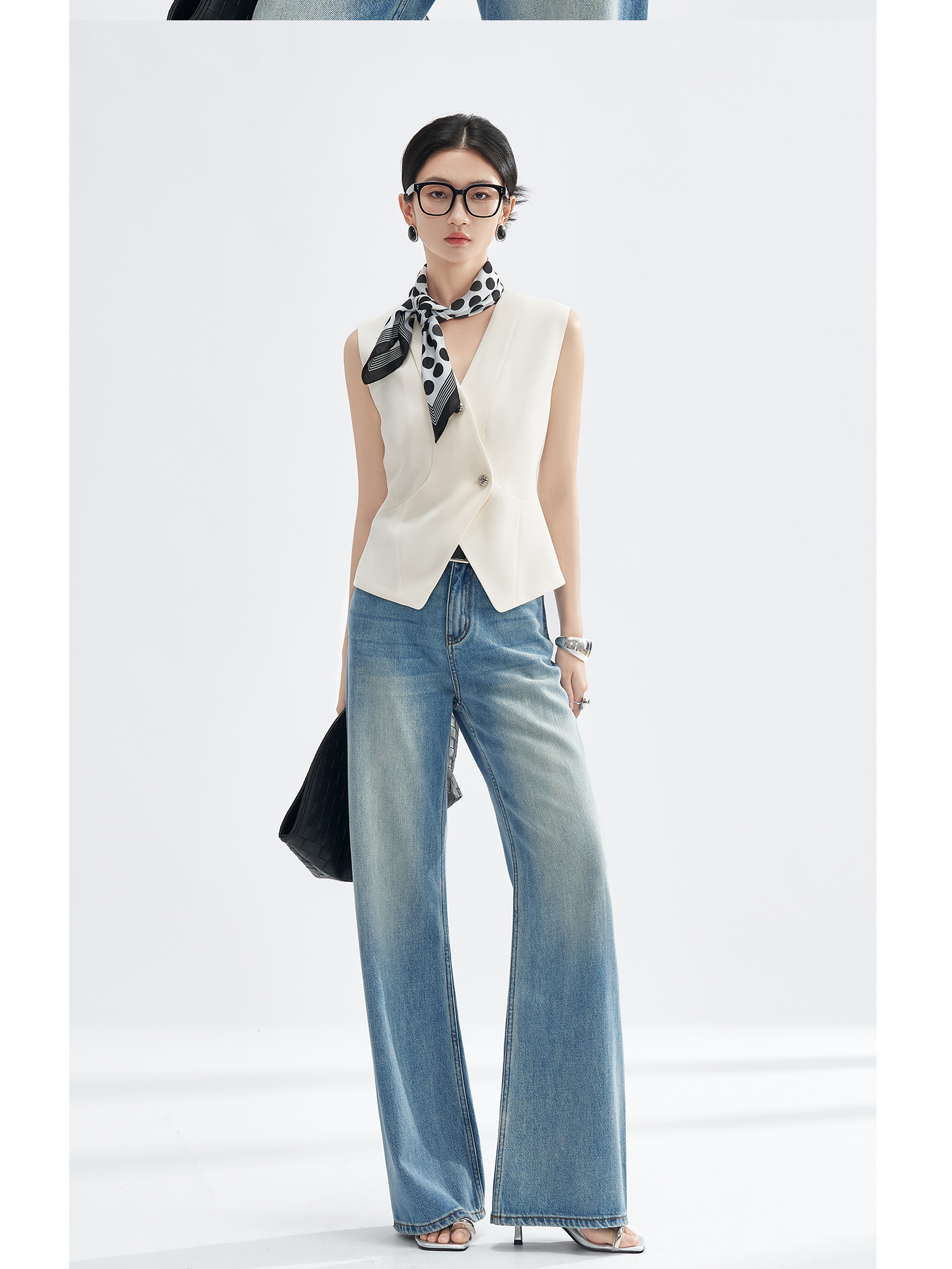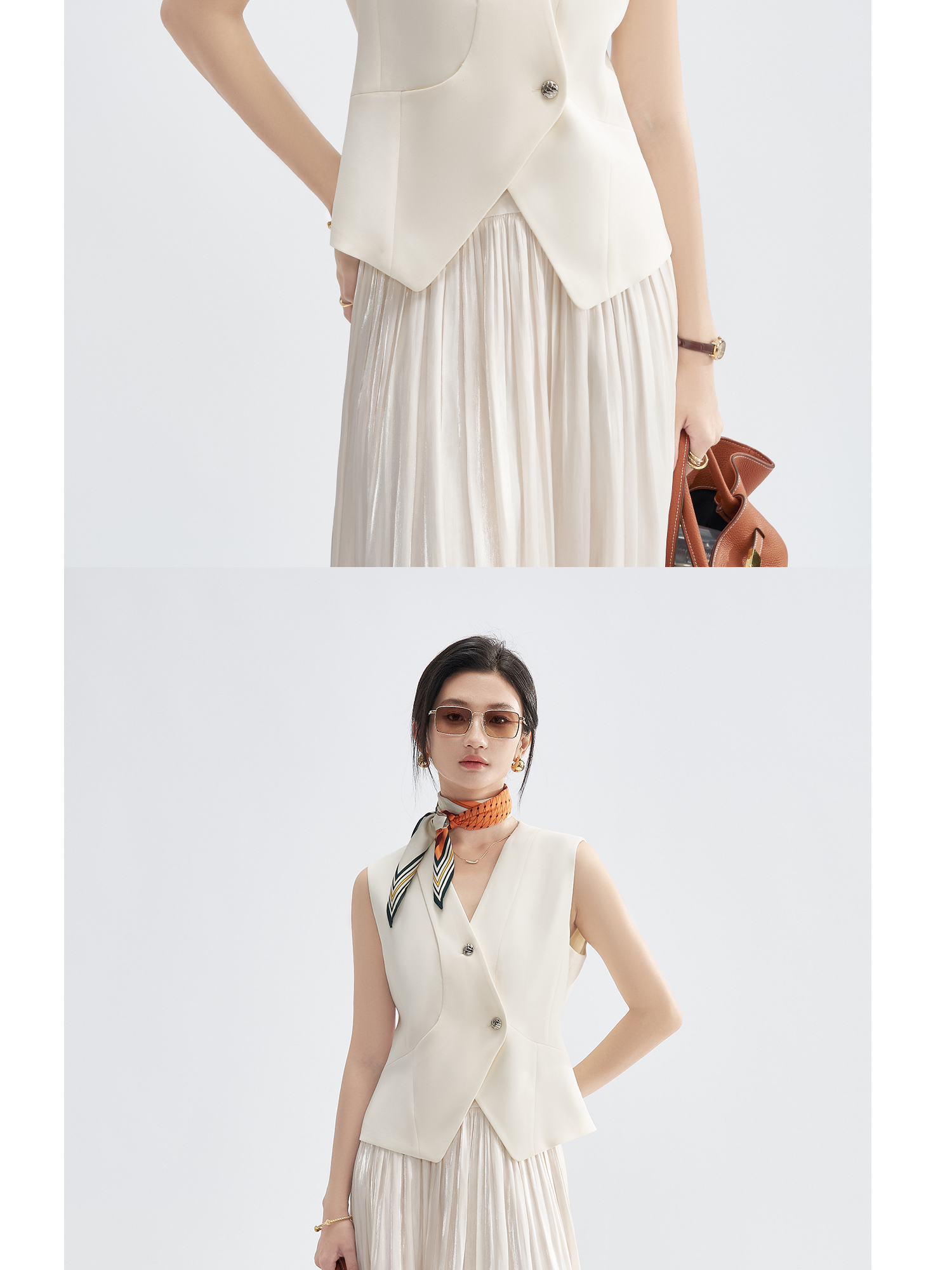 米思阳2025初秋新气质老钱风马夹醋酸解构V领短外套凉感爽滑外搭3225