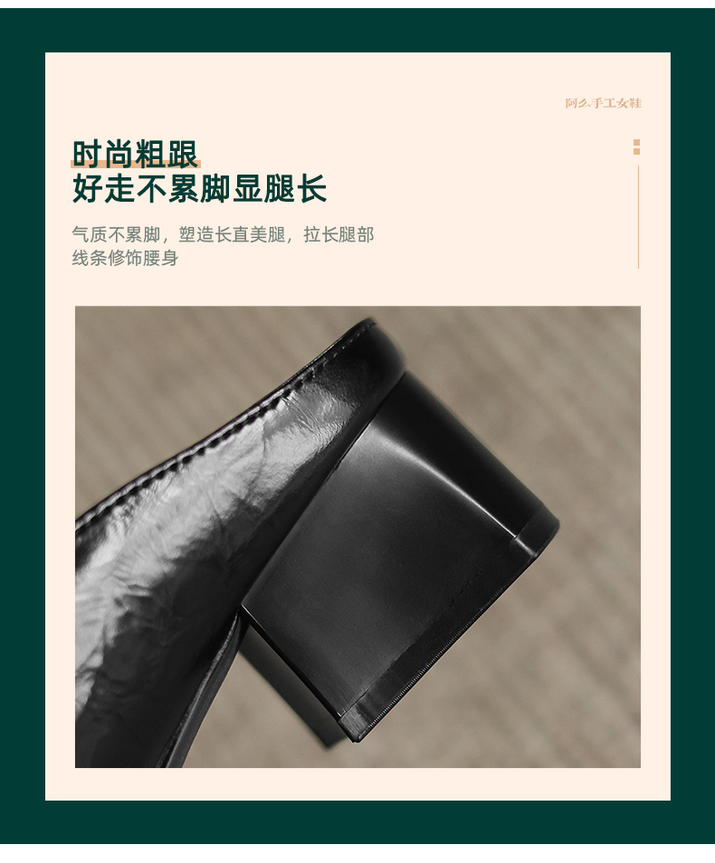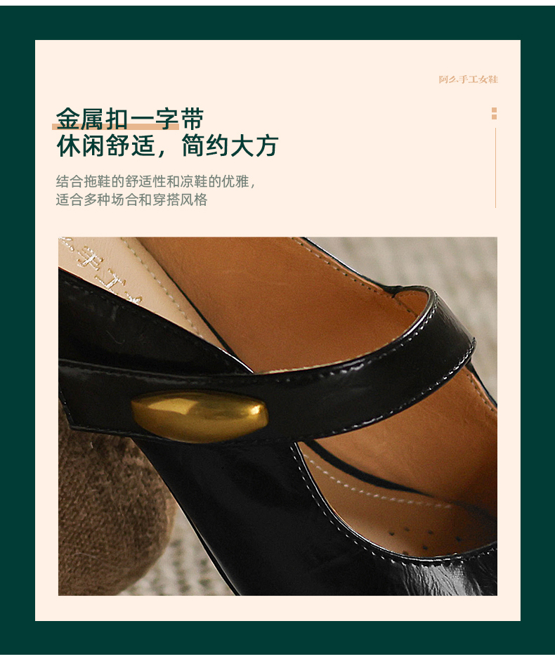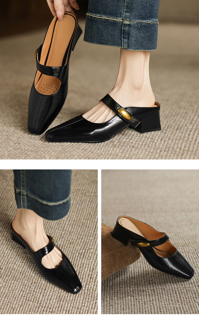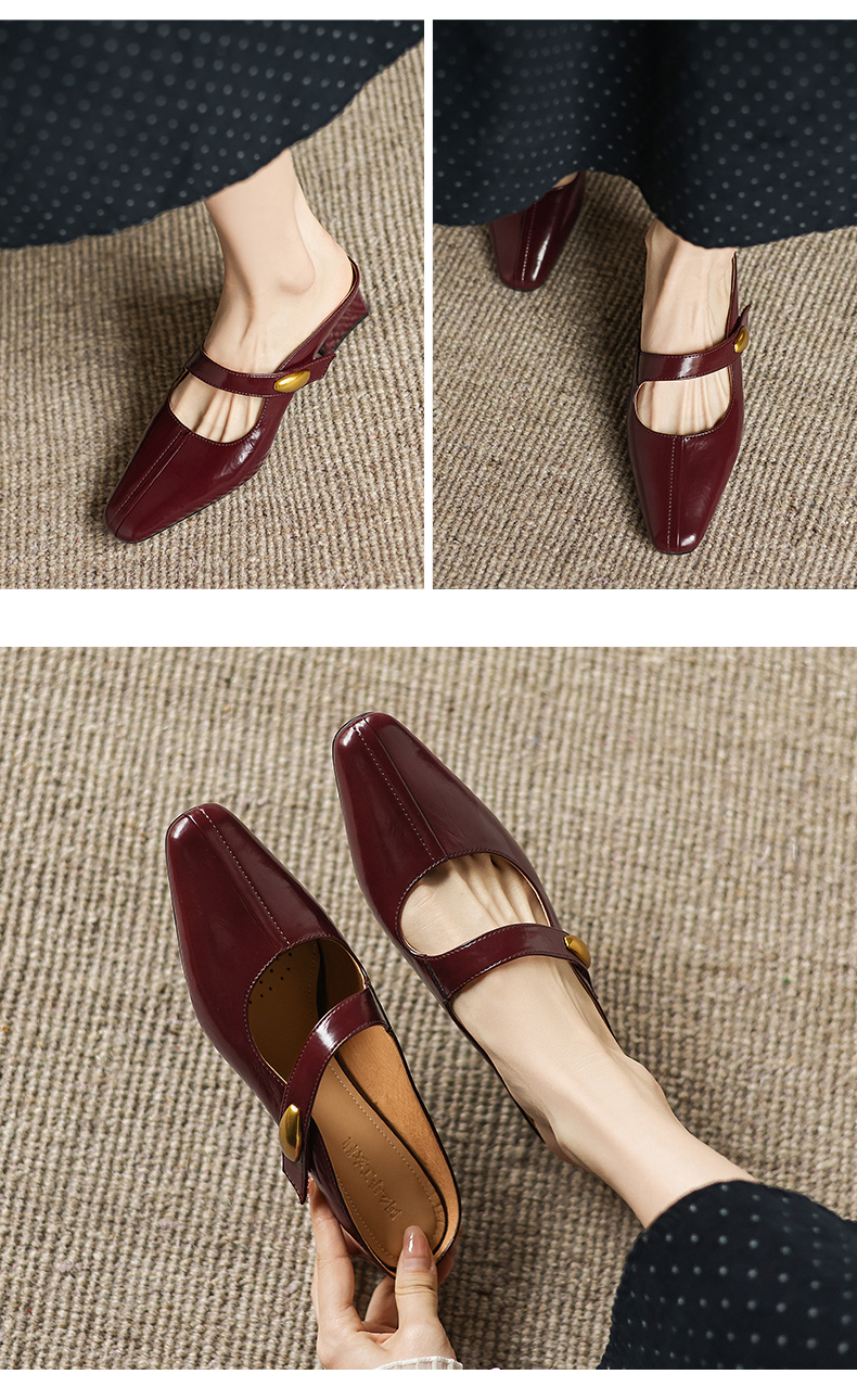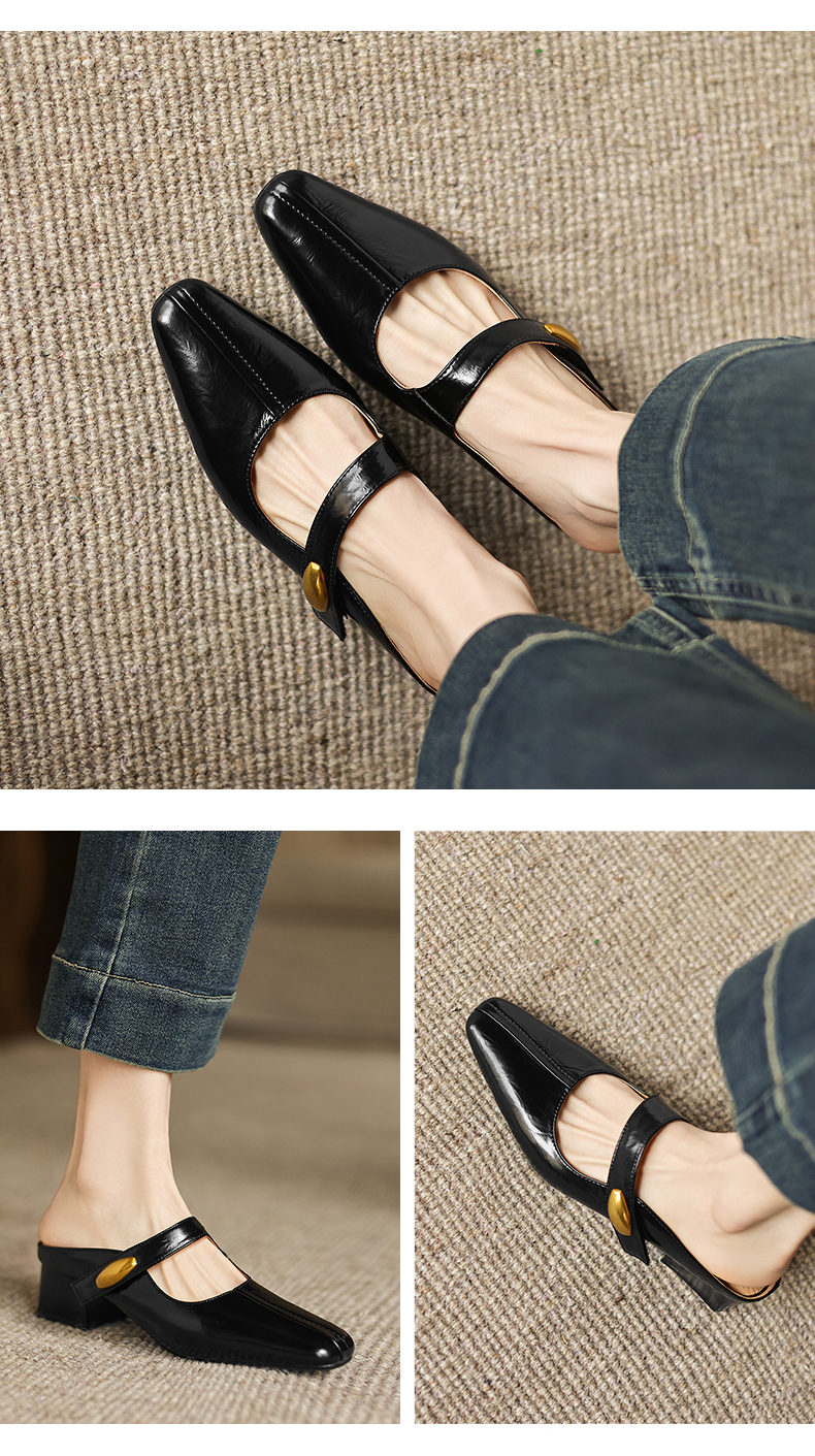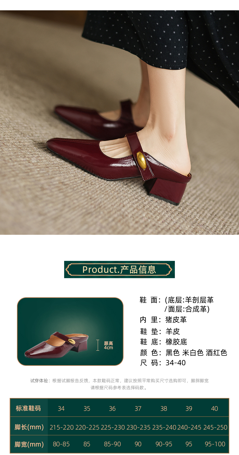 阿么手工女鞋粗跟一字带穆勒拖鞋夏季小方头复古风浅口包头拖4CM