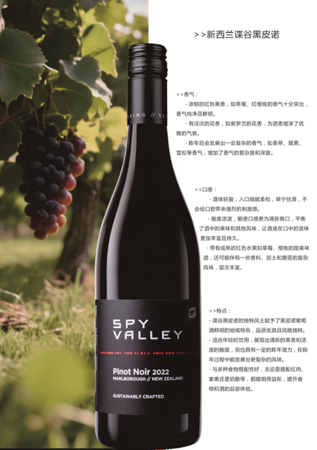 碟谷新西兰马尔堡黑皮诺葡萄酒750ml清新果香口感醇厚