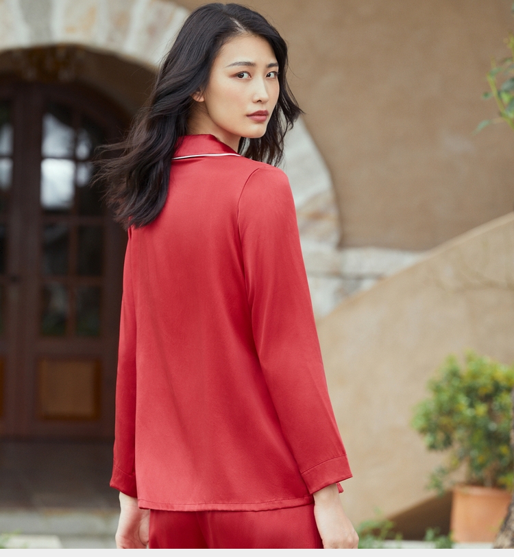 5F EmbryForm安莉芳桑蚕丝撞色小翻领家居套装 商品图9