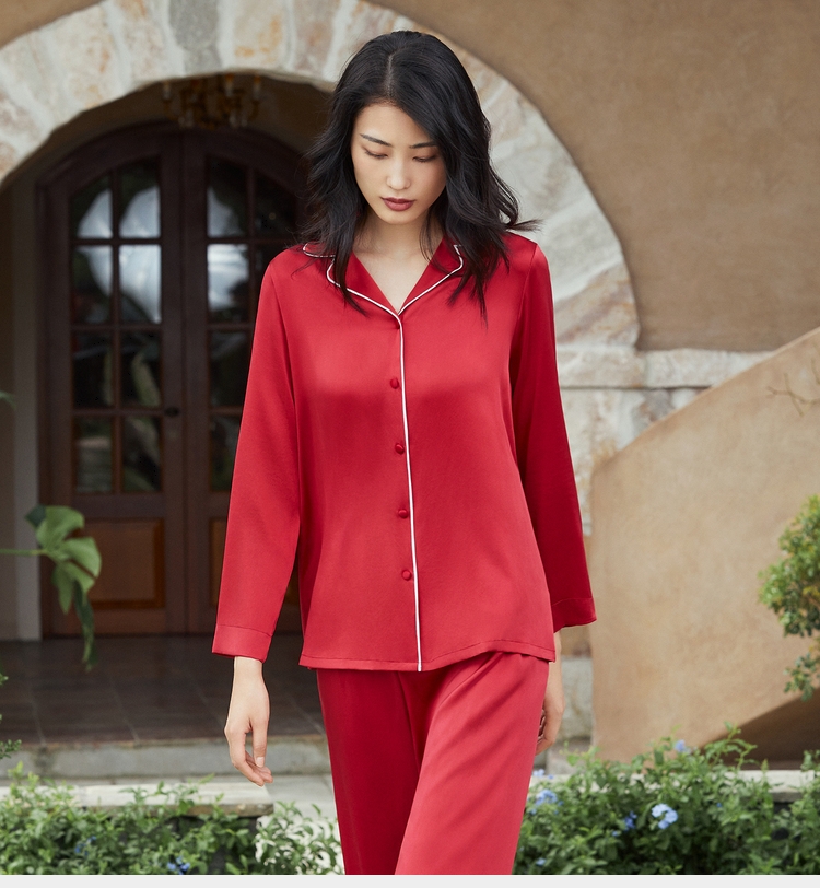 5F EmbryForm安莉芳桑蚕丝撞色小翻领家居套装