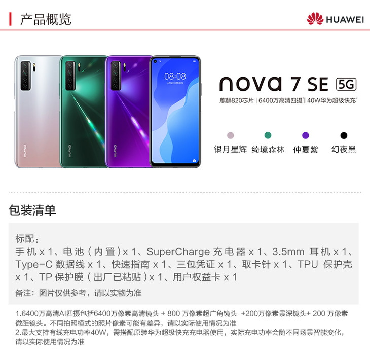 华为/HUAWEI nova 7 SE (8G+128G) 绮境森林