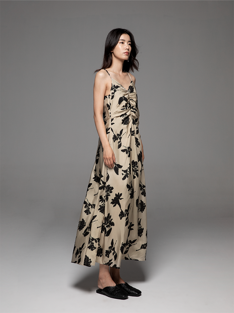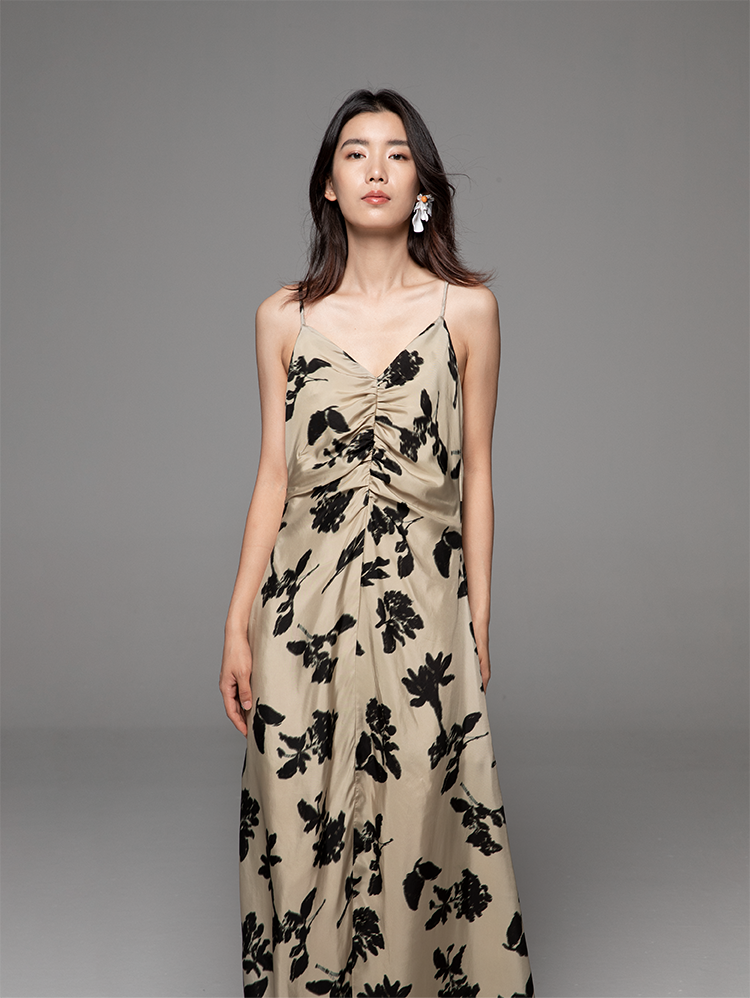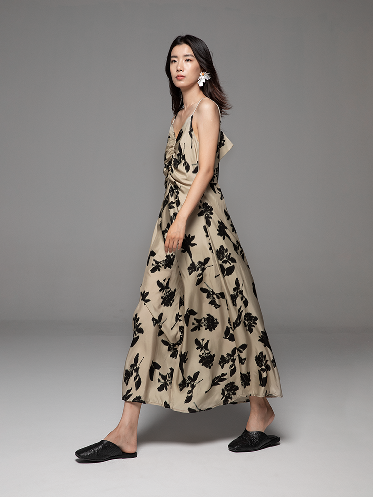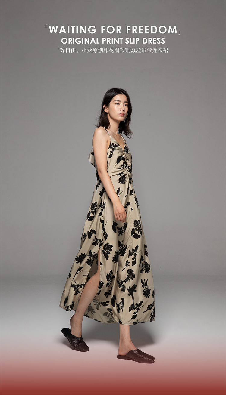 【昊宇同款】等风来 吊带连衣裙夏女修身露背铜氨印花法式复古风