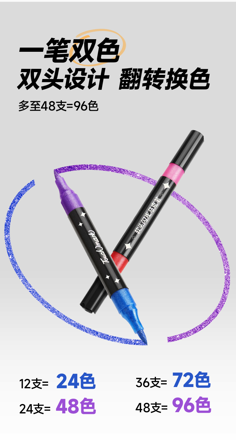 touchmark好闪双头马克笔双色彩色笔珠光笔划重点记号笔闪闪彩笔