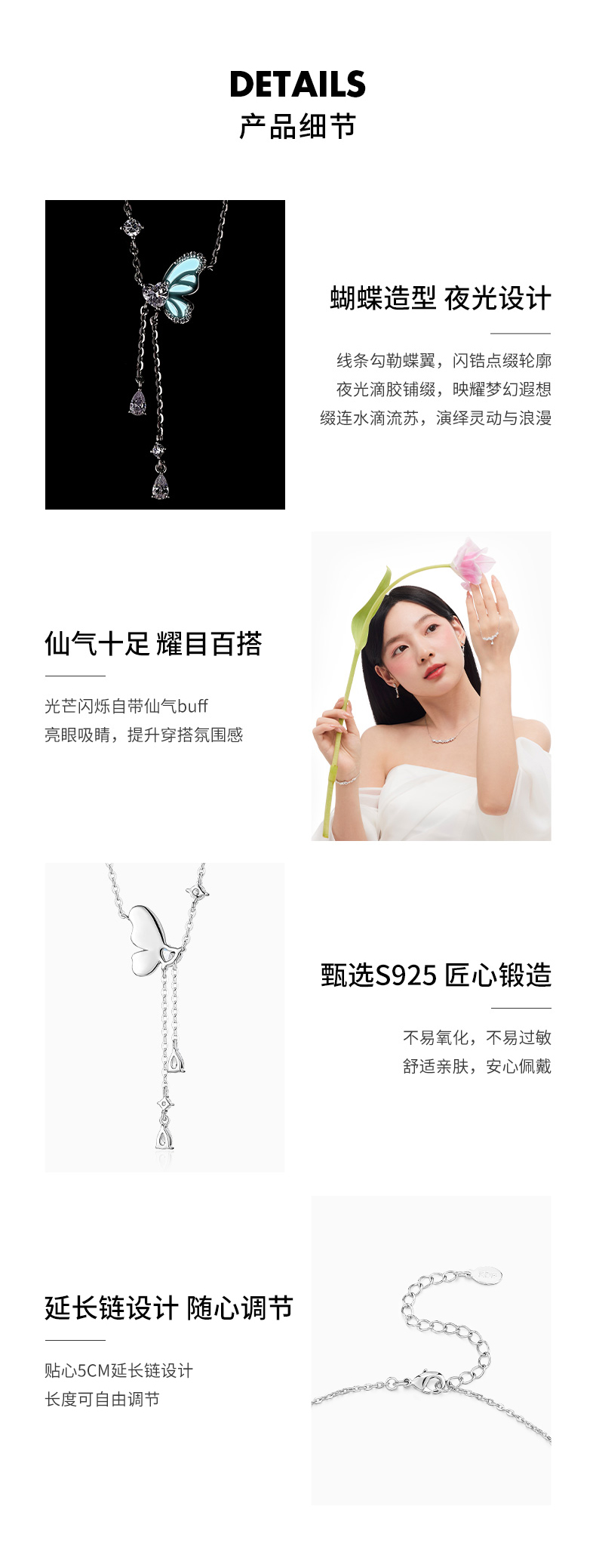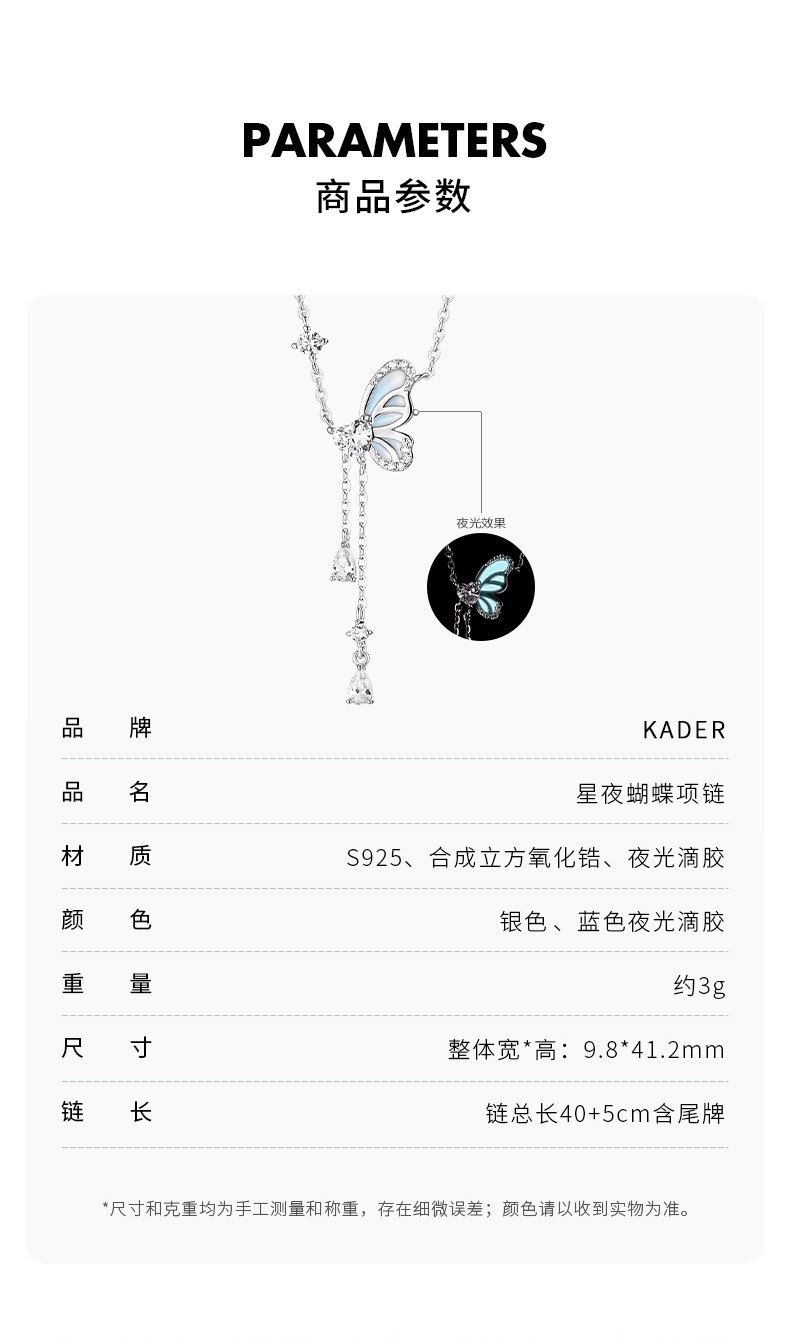KADER卡蒂罗星空蝴蝶项链女 925银 轻奢小众设计款锁骨链生日礼物送闺蜜