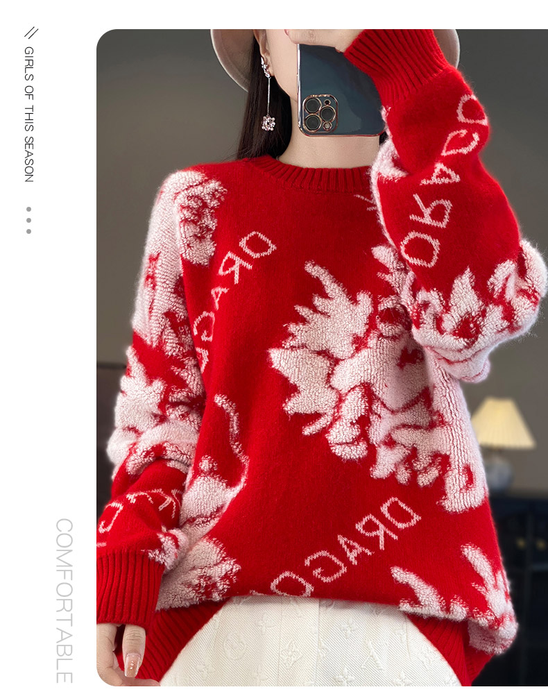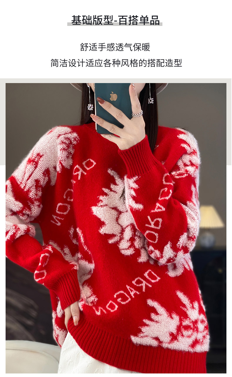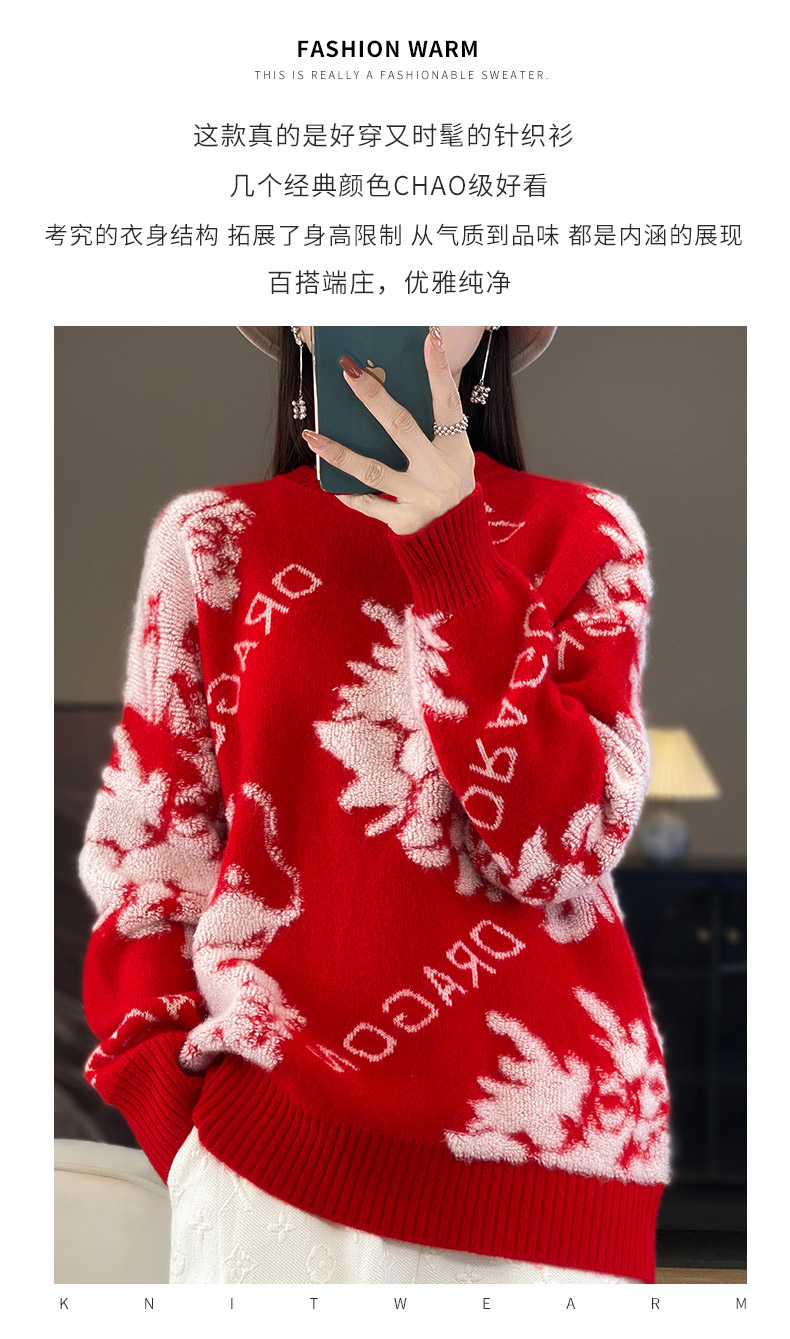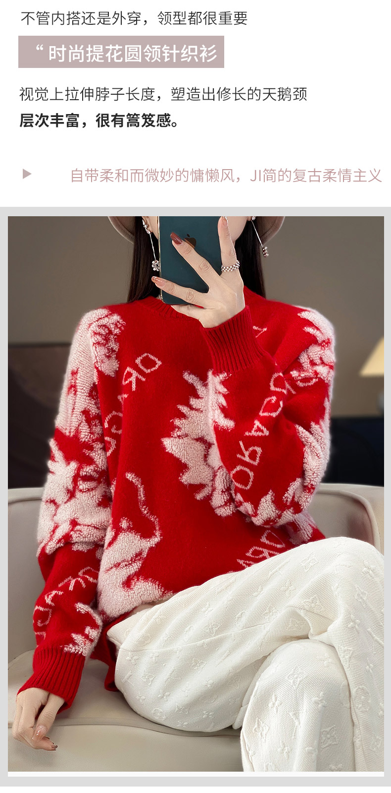 AVANN 新年款十二针加厚安迪绒全身提花圆领毛衣JR-533