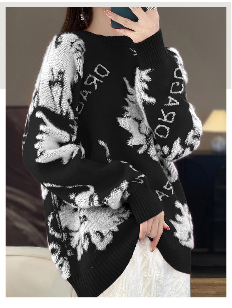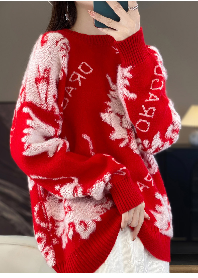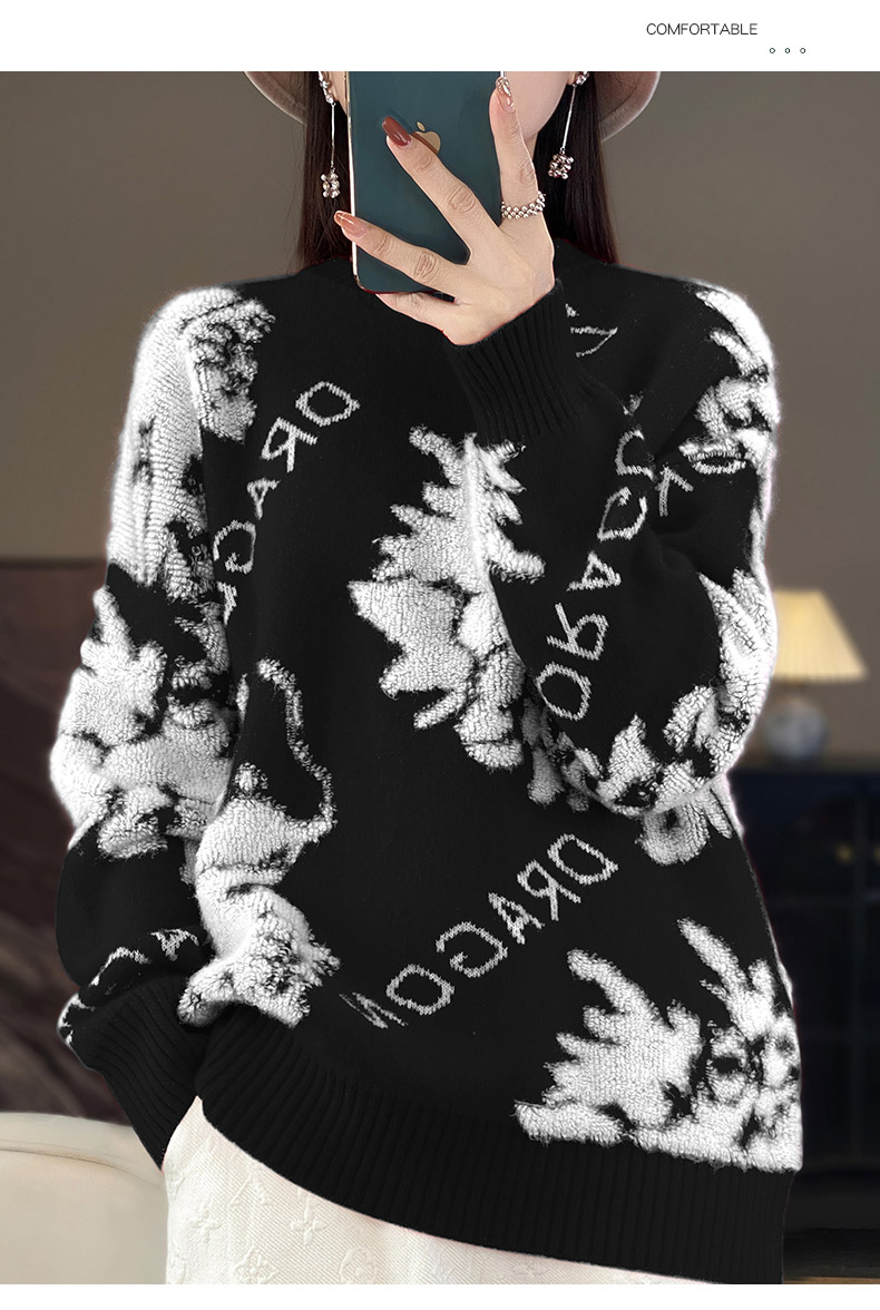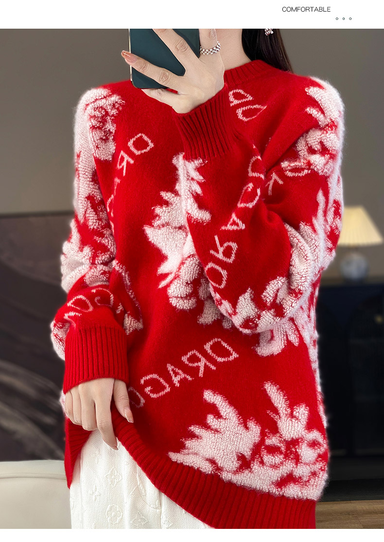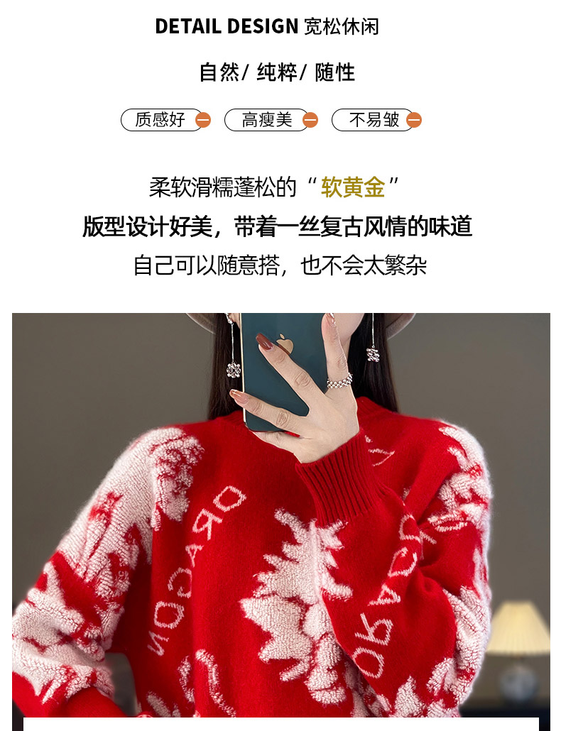 AVANN 新年款十二针加厚安迪绒全身提花圆领毛衣JR-533