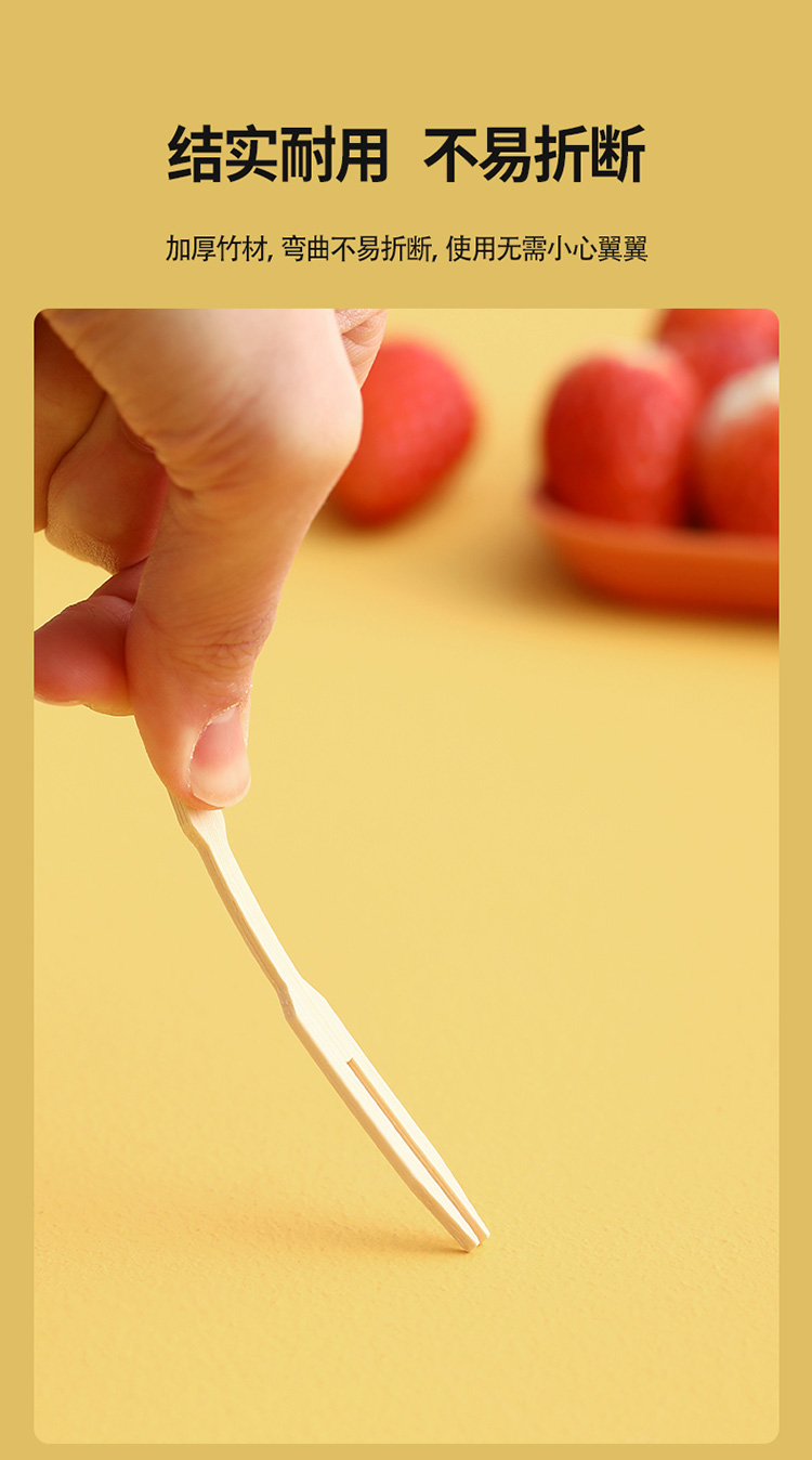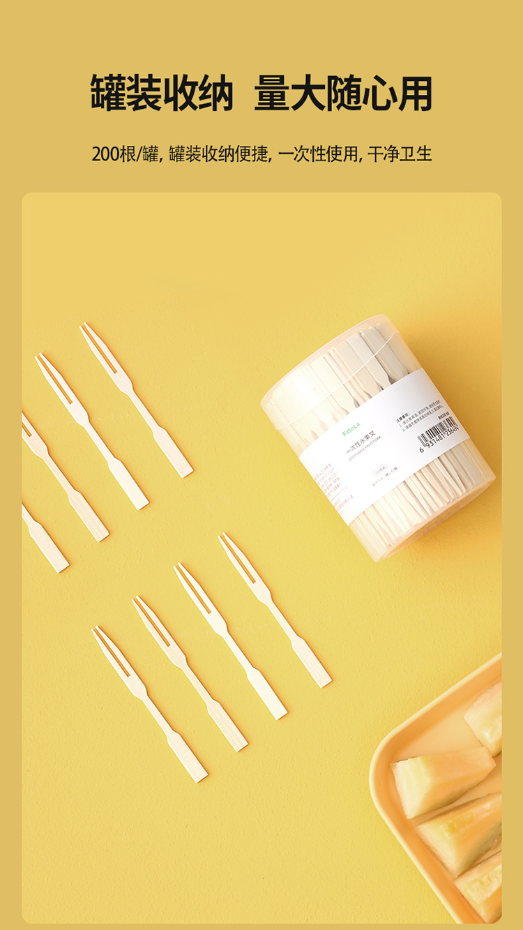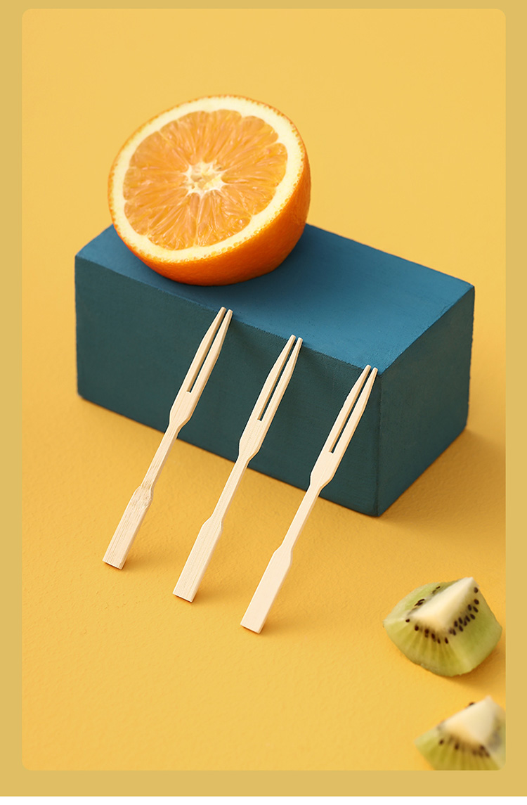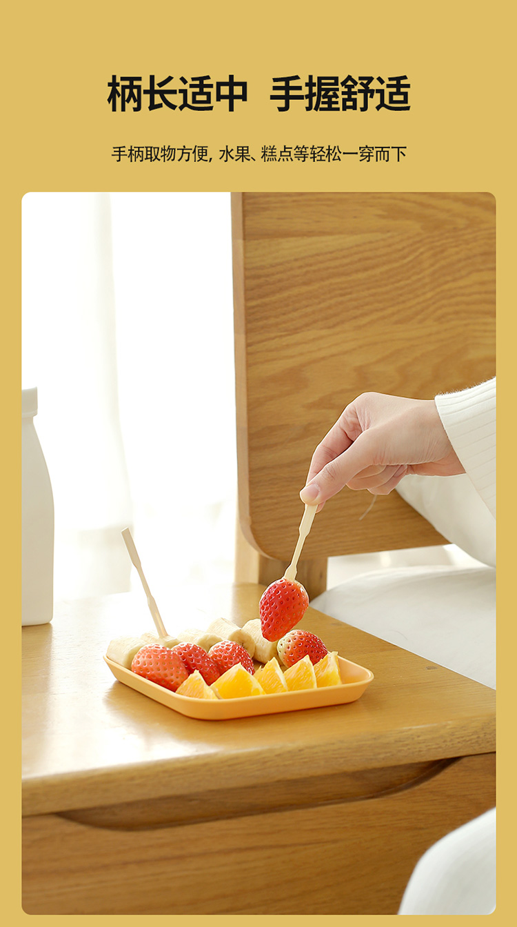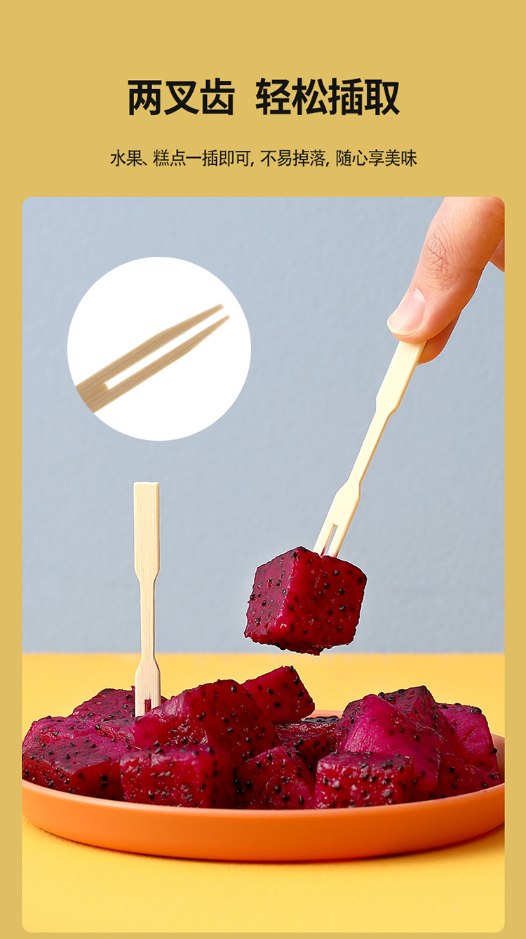 FaSoLa水果叉子一次性家用两齿水果签果插竹签汉堡甜品蛋糕小叉子