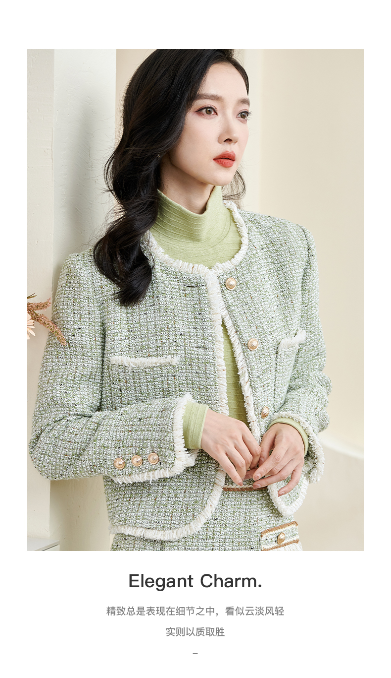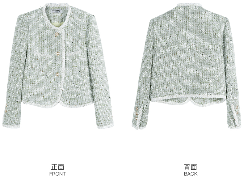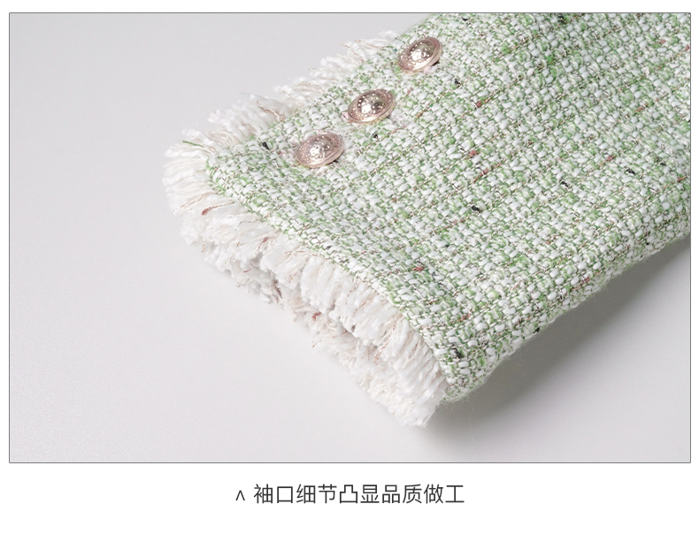 剩XXL 米思阳2026秋季新款优雅淑女小香风短外套减龄绿色单排扣上衣3223