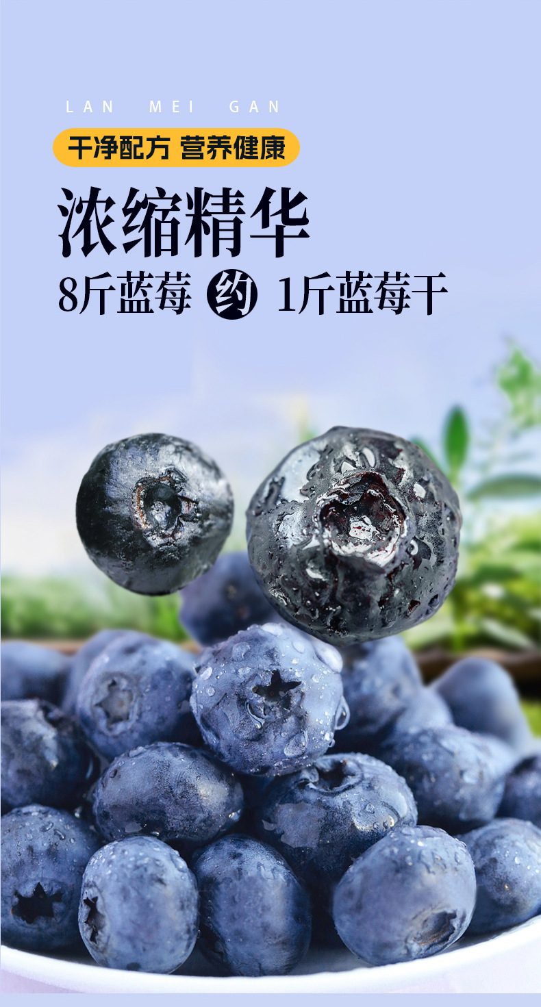 【颗颗饱满!蓝莓干蜜饯】甄选优质原料,整颗轻烘,保留鲜果风味营养,8斤蓝莓约等于1斤蓝莓干,下午茶休闲零食小吃L