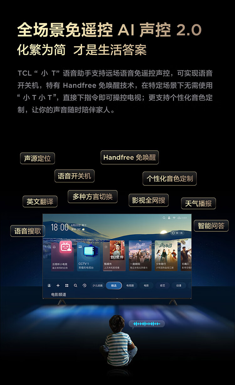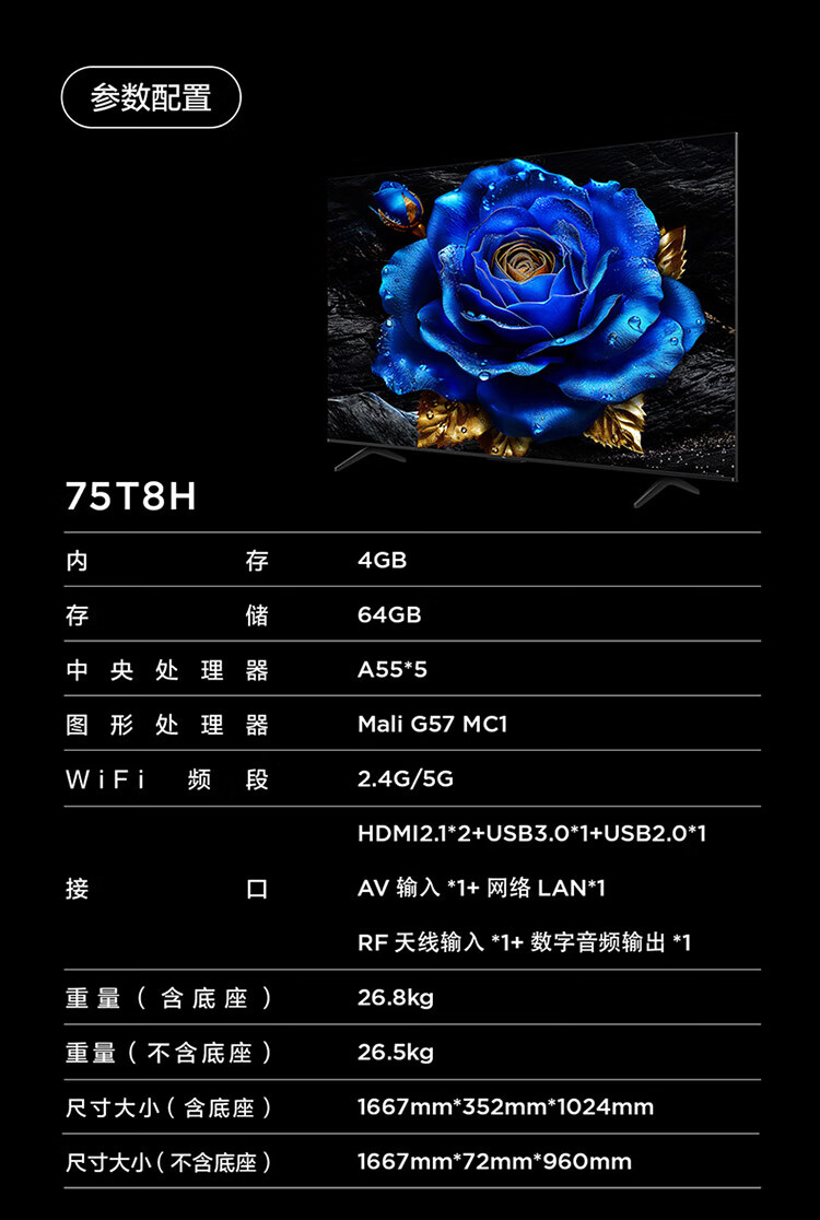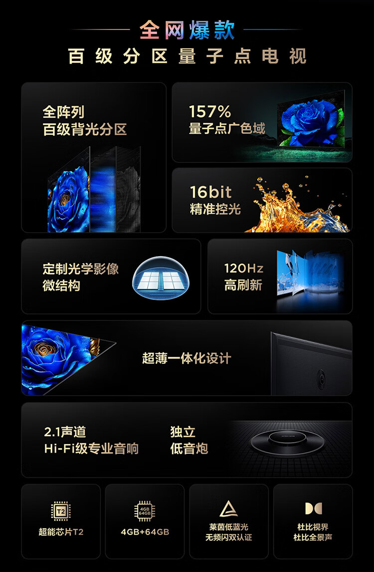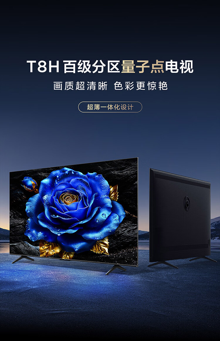 【下单前请与客服联系】TCL电视 75T8H 75英寸 百级分区 QLED量子点 超薄 2.1声道音响 120Hz 客厅液晶智能平板游戏电视机